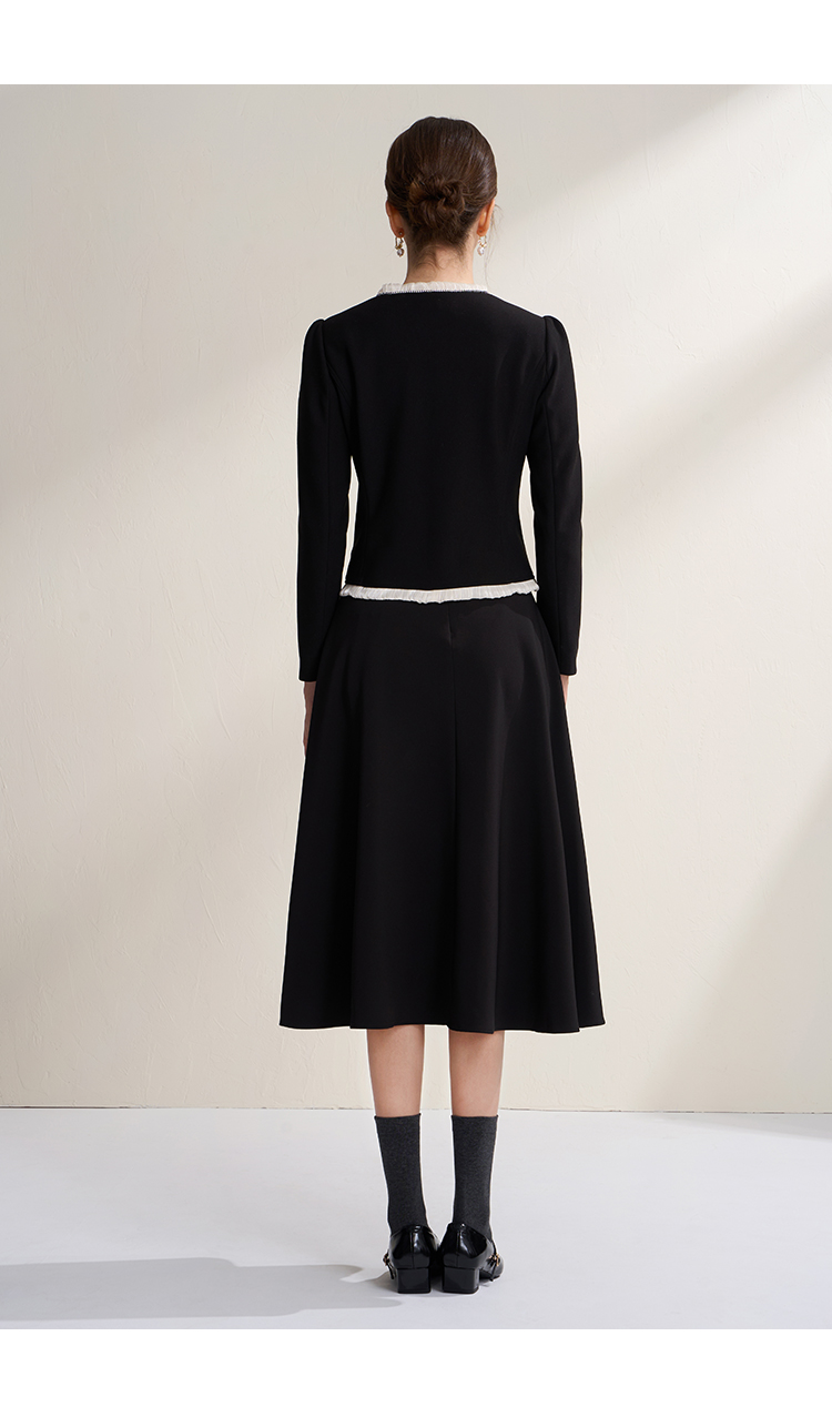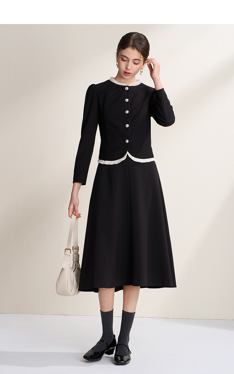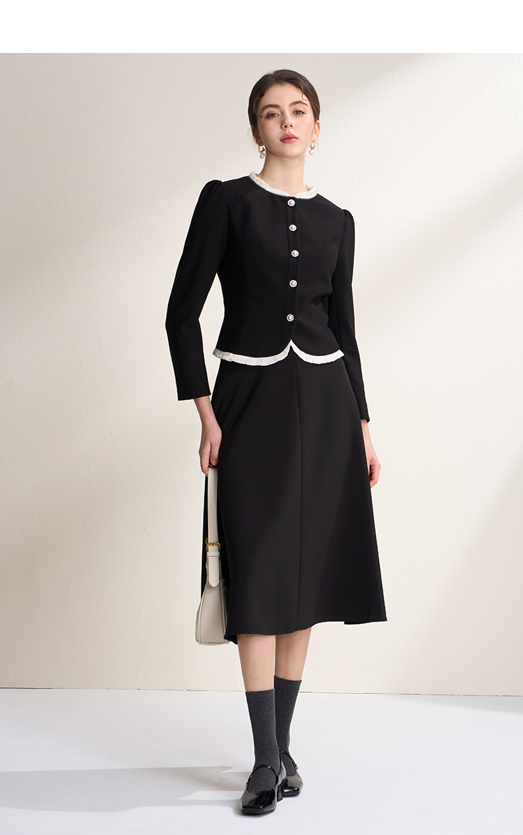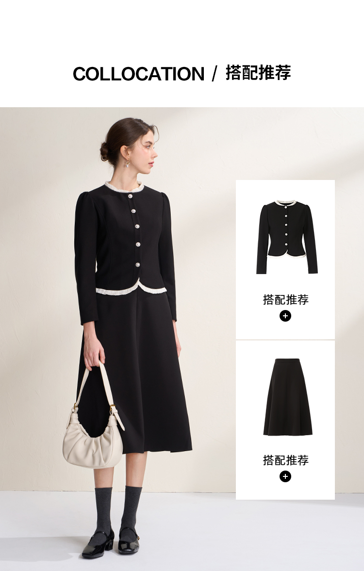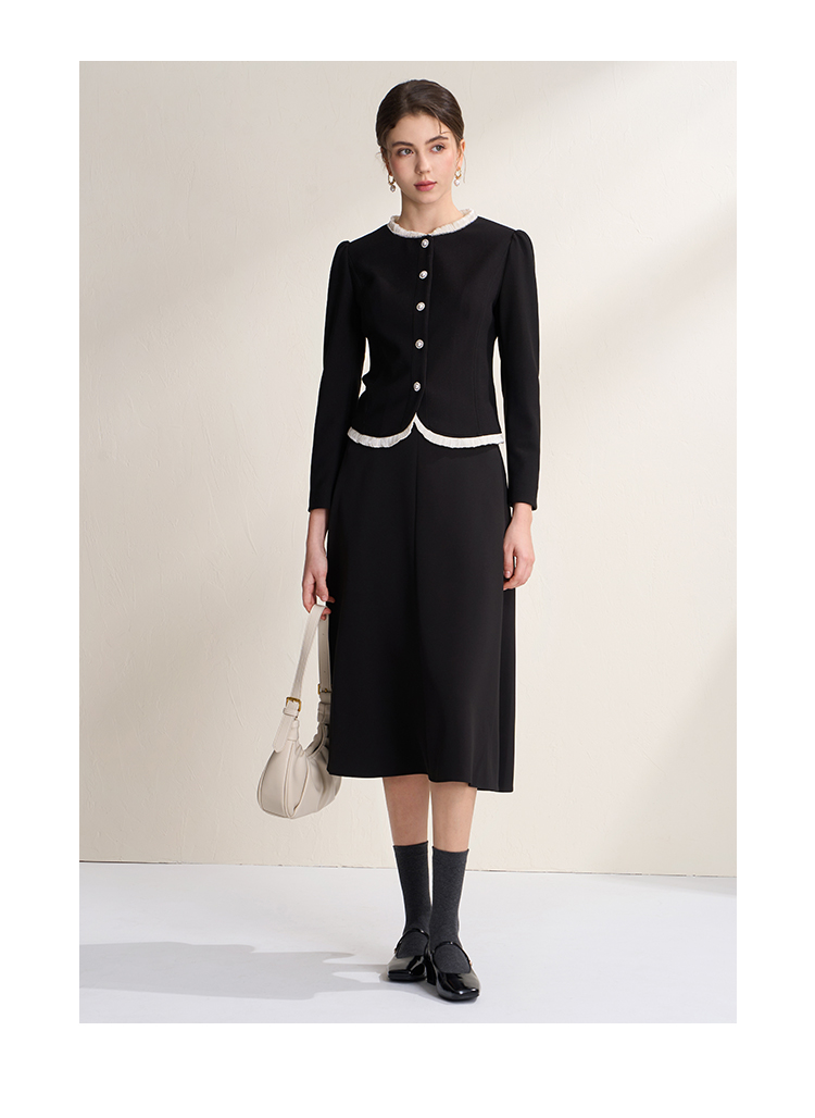 EITIE爱特爱撞色花边领短款修身珍珠扣优雅小香风外套A2603111