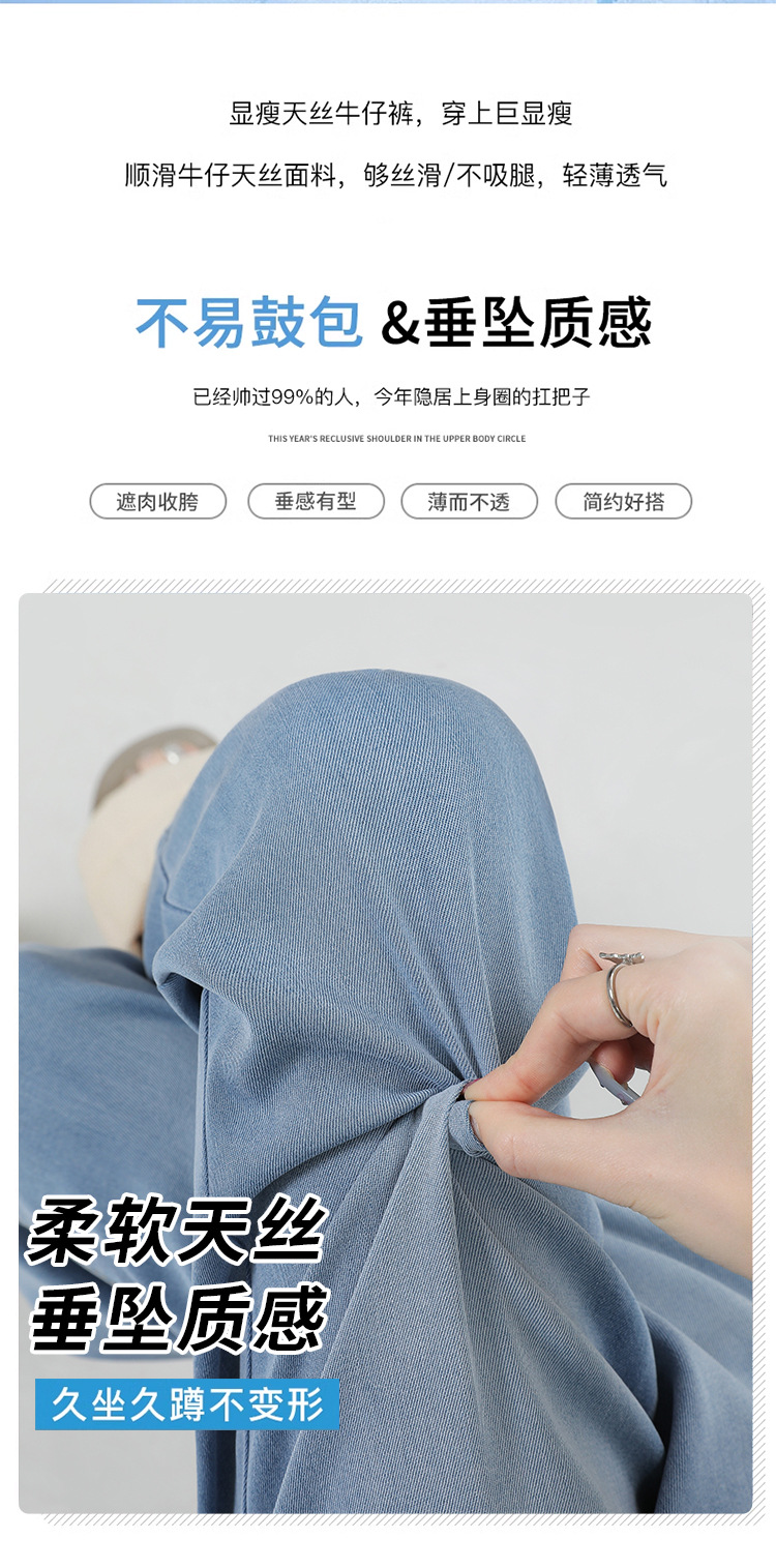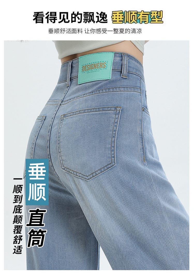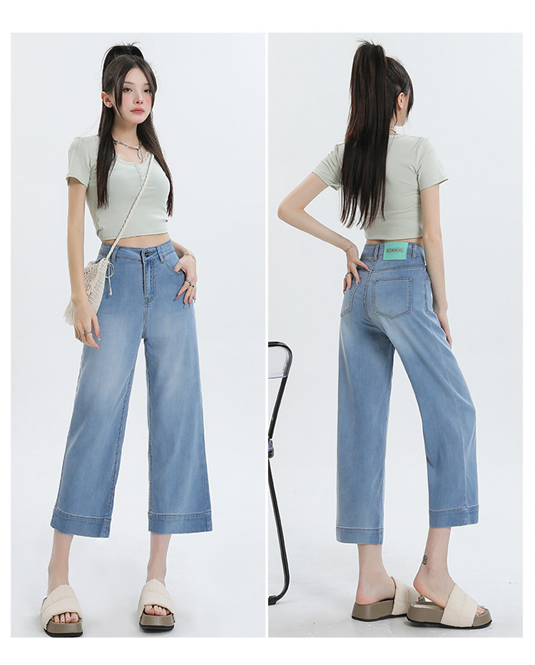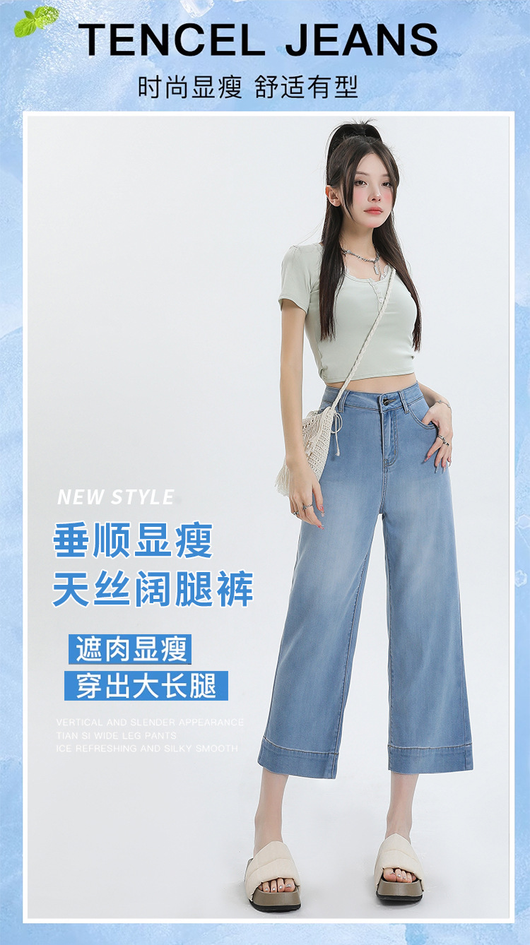 百媚生 天丝莱赛尔超薄八分直筒裤九分阔腿裤5308