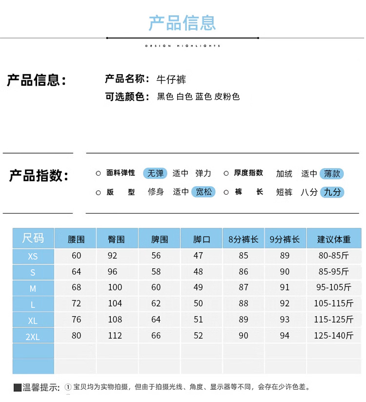 百媚生 松紧腰系带牛仔裤女直筒裤休闲长裤325083