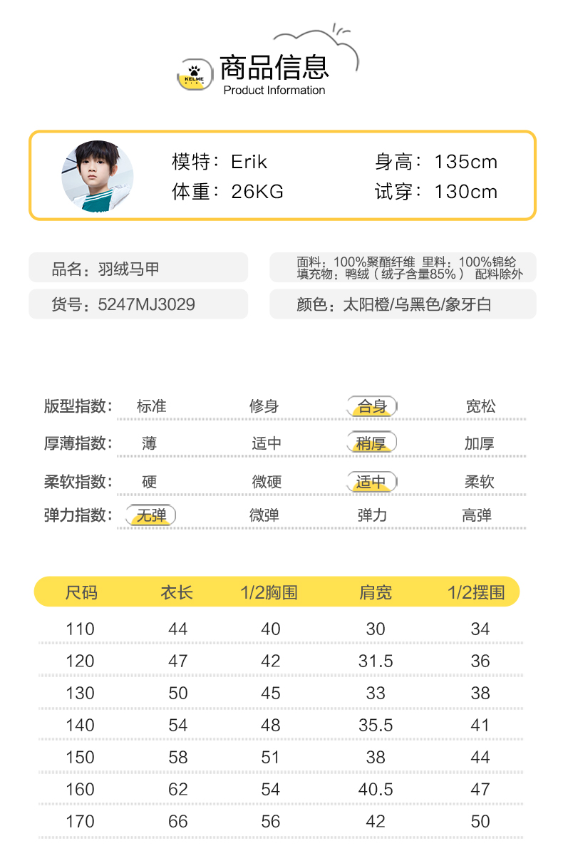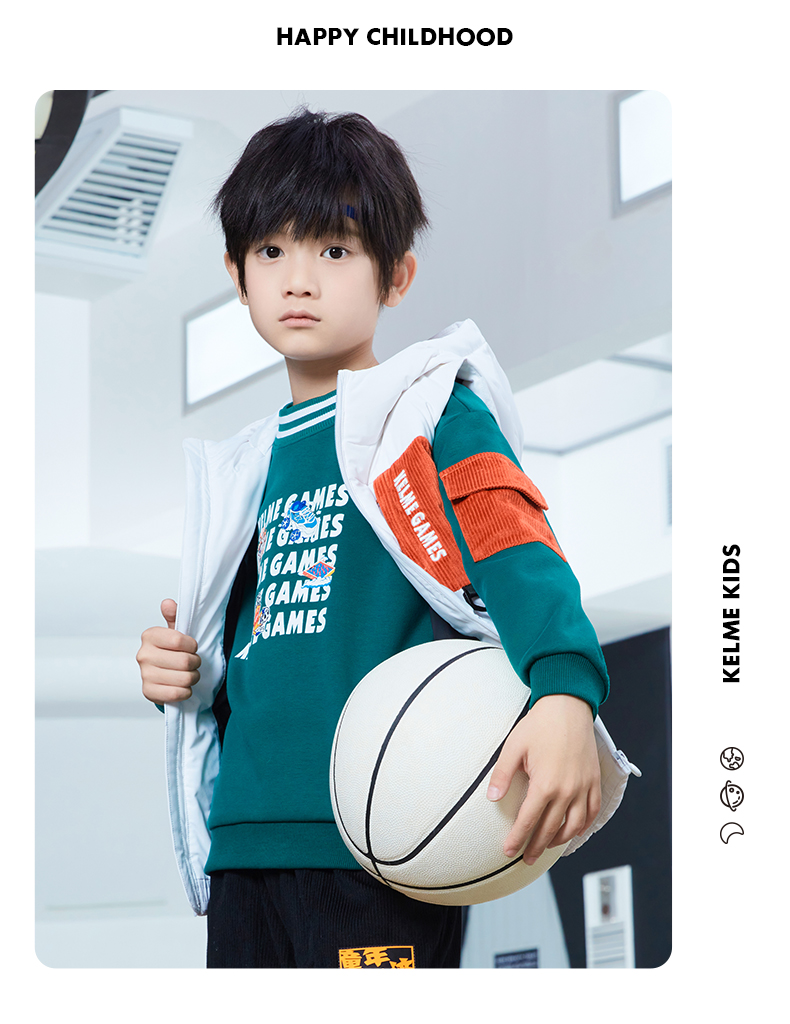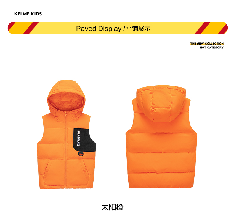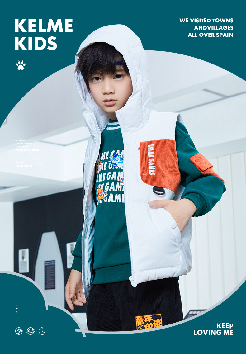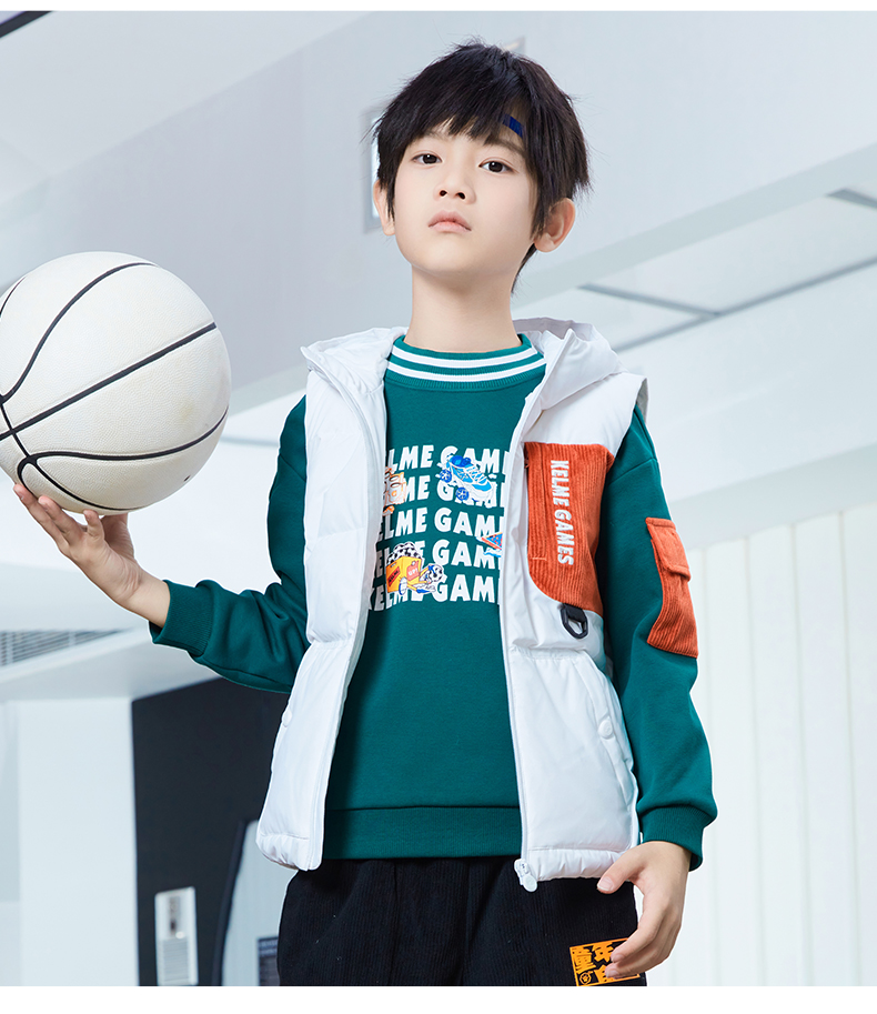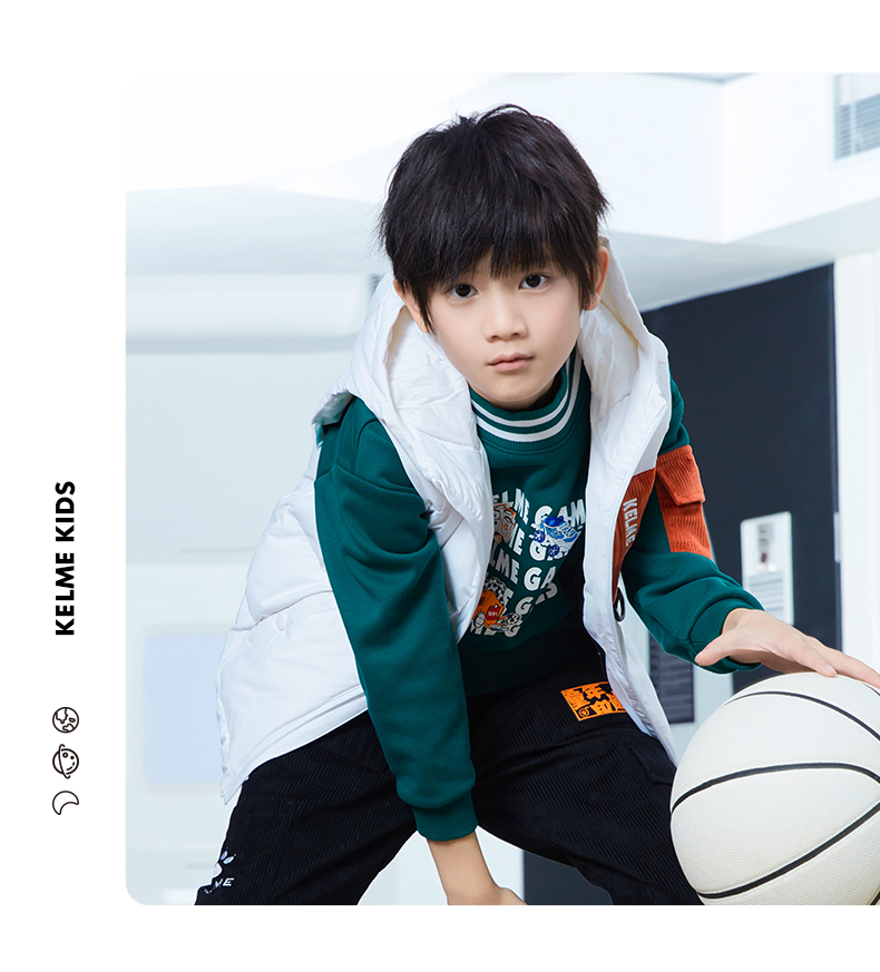 卡尔美儿童羽绒马甲外穿棉服足球厚款秋冬马夹外套5247MJ3029