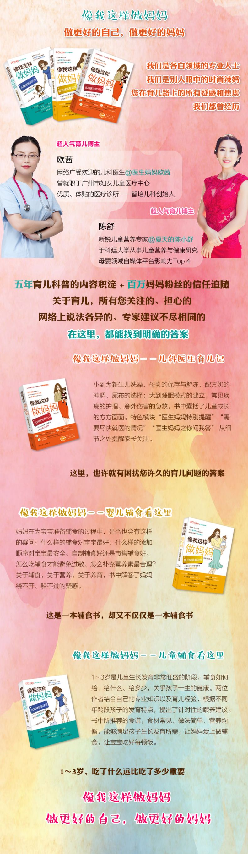 本书优选的特点是营养师和儿科医生携手,全书以图为主,图文并茂。按照月龄,从6个月开始针对宝宝的生理和发育特点设计辅食食谱。所有辅食的制作都有过程图,能够让新手妈妈毫无压力的掌握制作辅食的技能。除了针对月龄涉及的食谱,书中还会在相应月龄介绍宝宝的营养需求、进食特点,所选食材的营养价值。文中还会以小贴士的形式出现诸如食材的正确处理方法、不同制作方式营养素的保留情况、辅食制作的原则及技巧等内容。