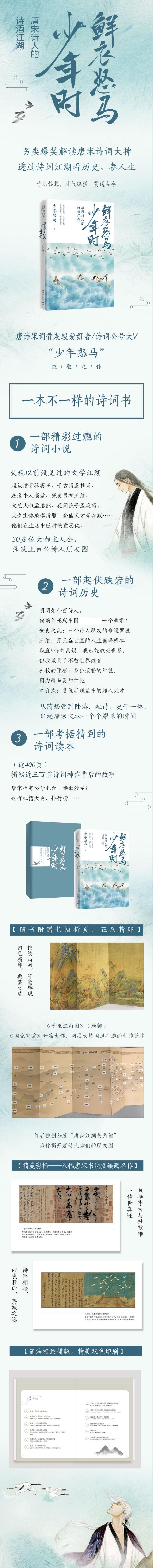 ▲唐诗宋词骨灰级爱好者、诗词公号大V“少年怒马”另类解读三十位诗词,这本读起来非常过瘾的“诗词小说”,展现了一个以前没见过的文学江湖。