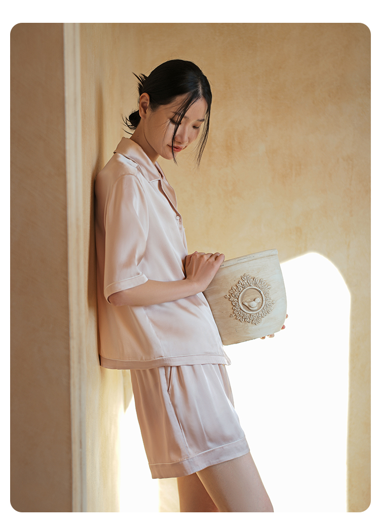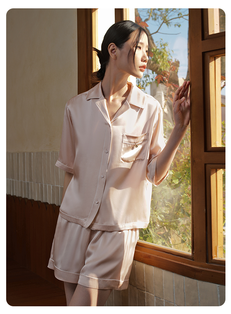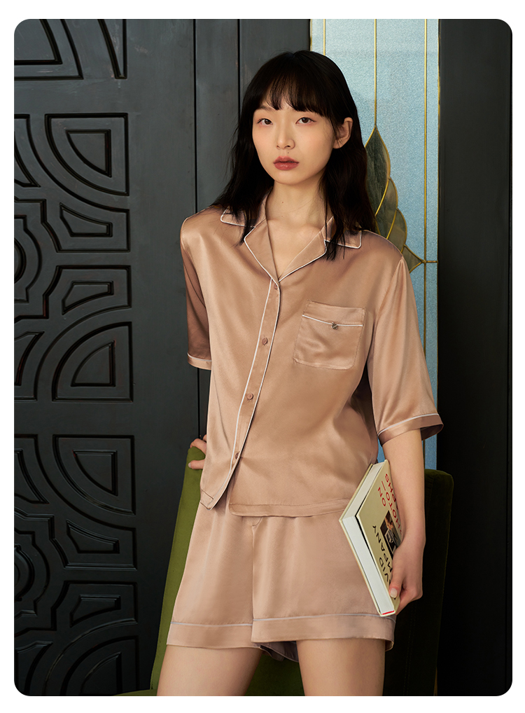 【石榴婆专属】桑罗23姆米重磅睡衣女套装新款撞色桑蚕丝居家服可外穿