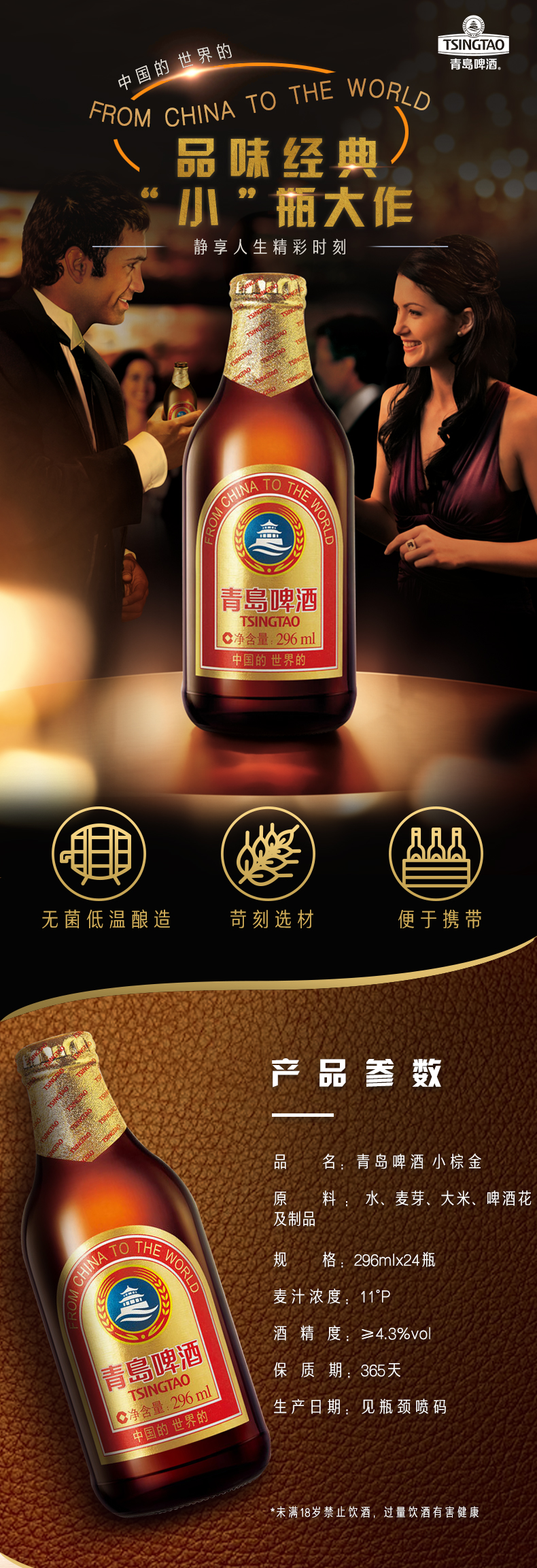 【青岛啤酒】小棕金 296mlx24瓶