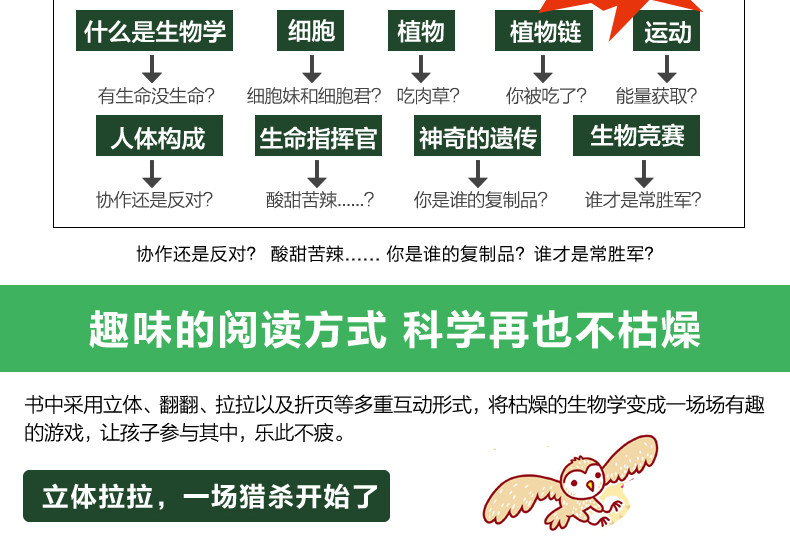 立体、翻翻、转盘等多种互动形式,让生物不再枯燥!