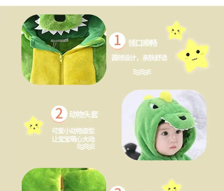 【甄选法兰绒面料!亲肤舒适透气】婴儿连体衣春秋加厚宝宝外出保暖衣服可爱超萌儿童恐龙居家爬服。ha