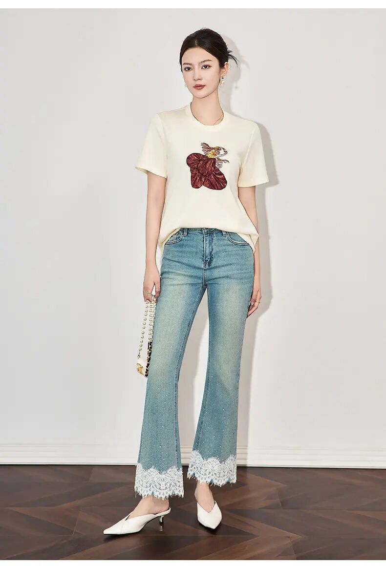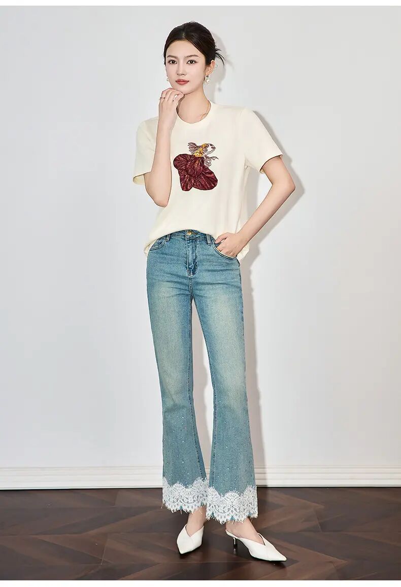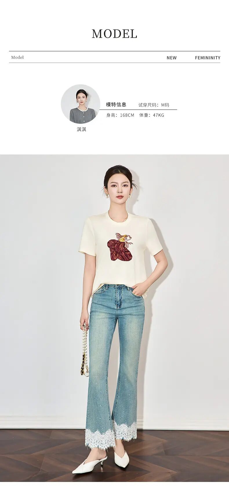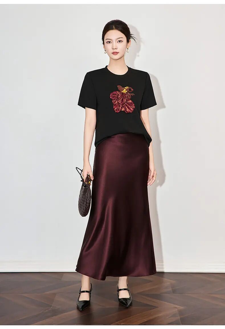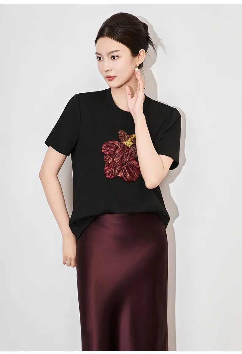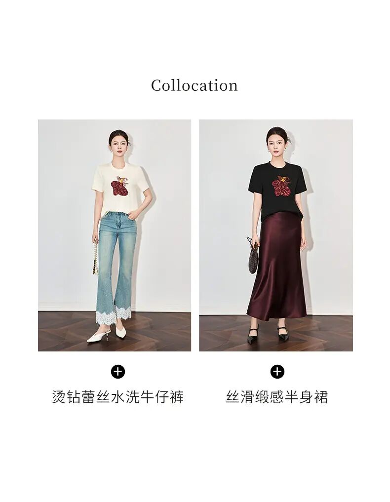 【高货wl】全新升级【铂金会员192/天猫259/差价67】(04449) 洛诗琳重工独特立体金鱼亮片刺绣高弹上衣时尚休闲洋气T恤