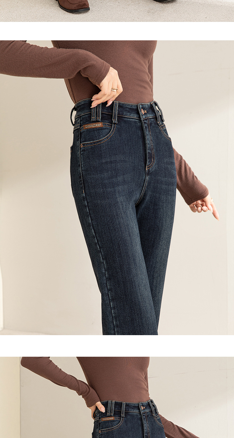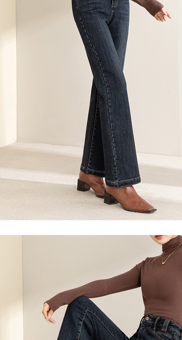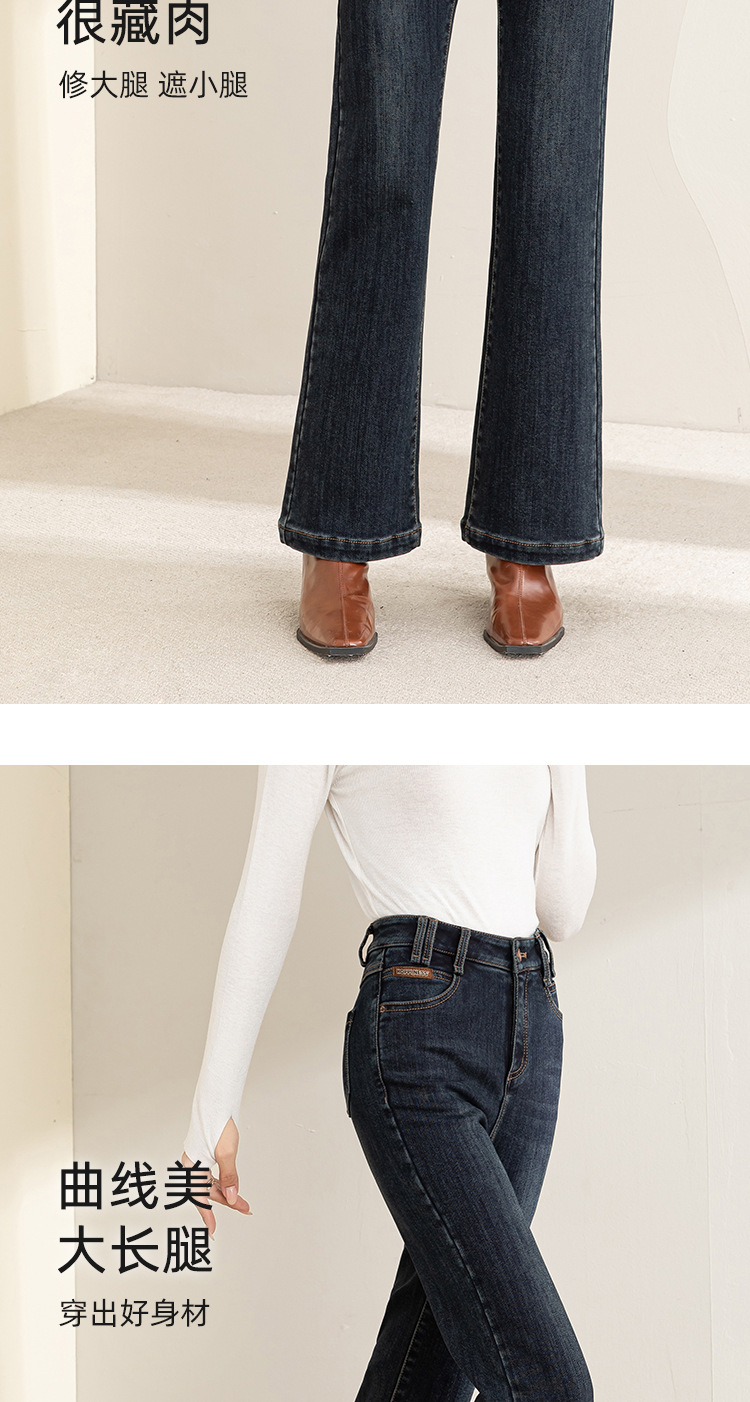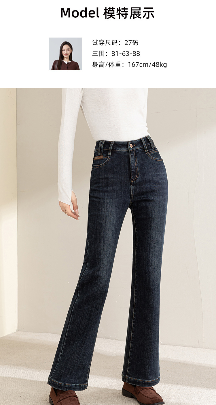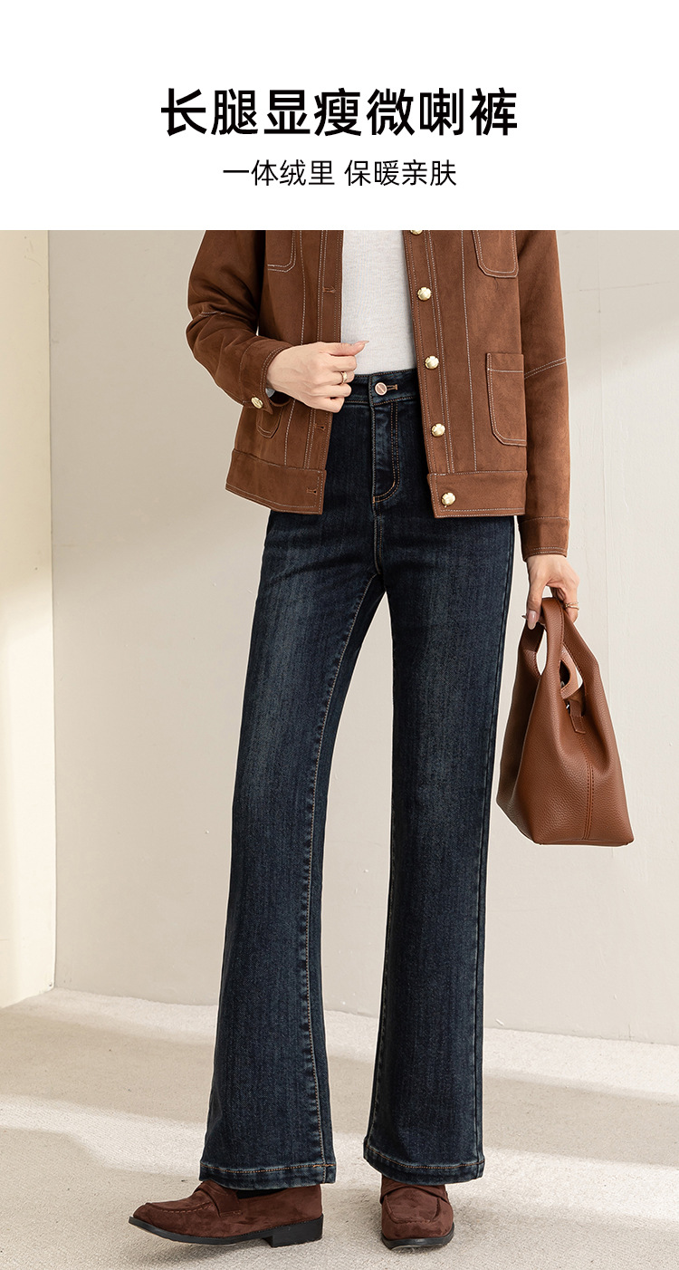 「自」全新升级【铂金会员183/天猫249/差价66】(05502)洛诗琳气质加绒微喇牛仔裤2025冬季高腰通勤微喇直筒裤女