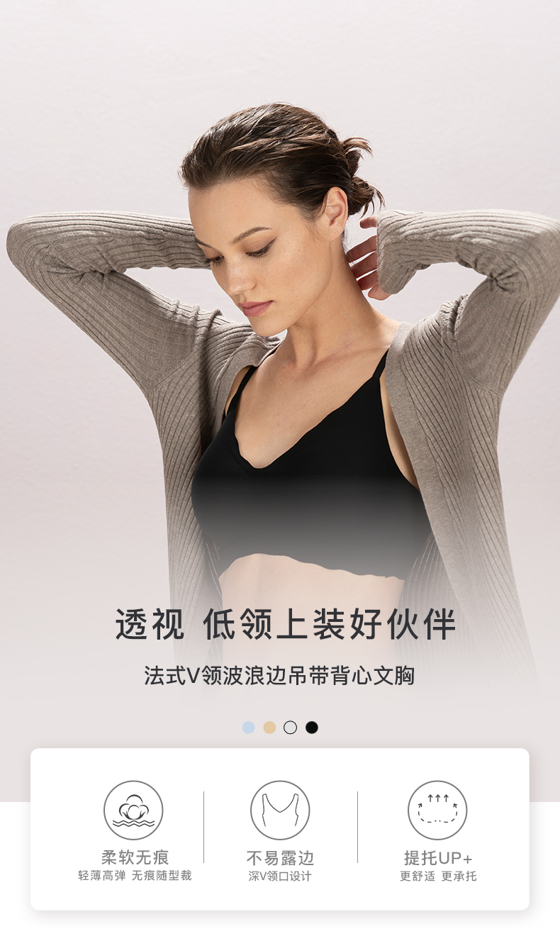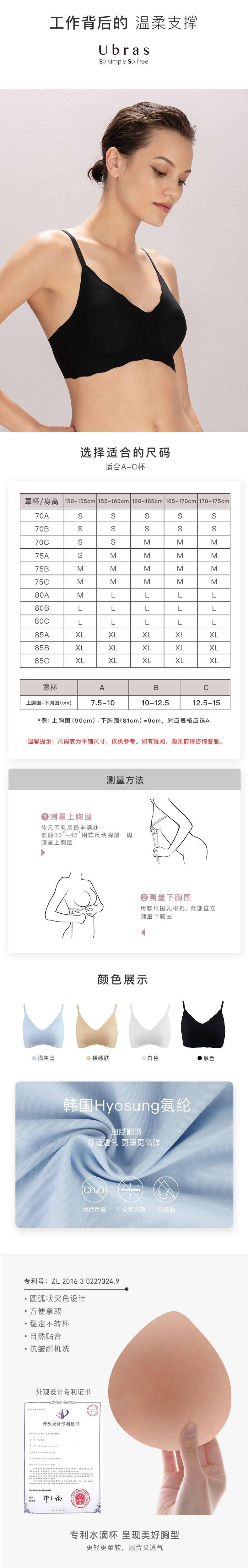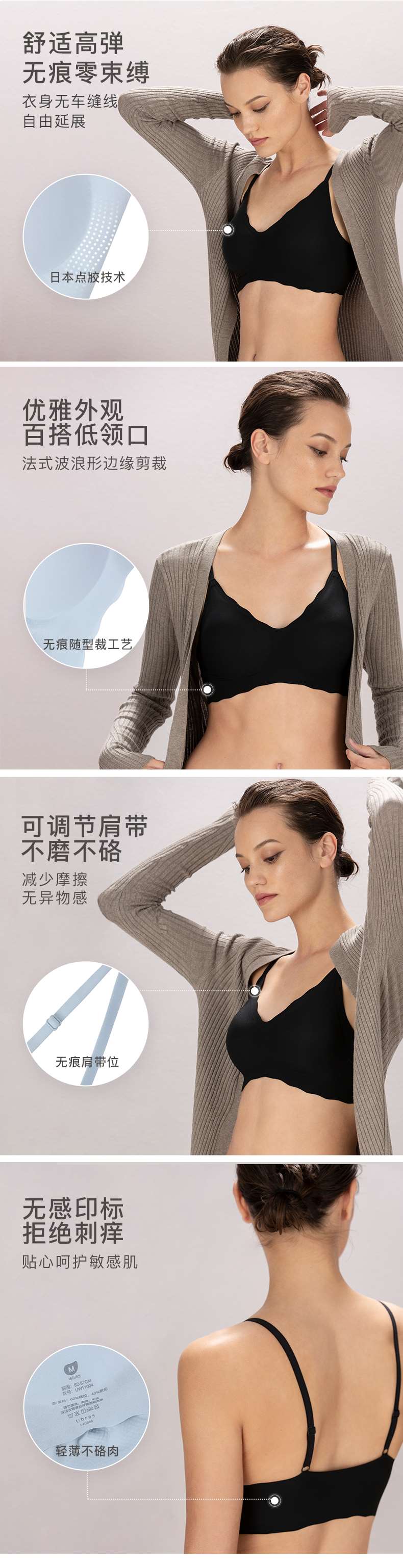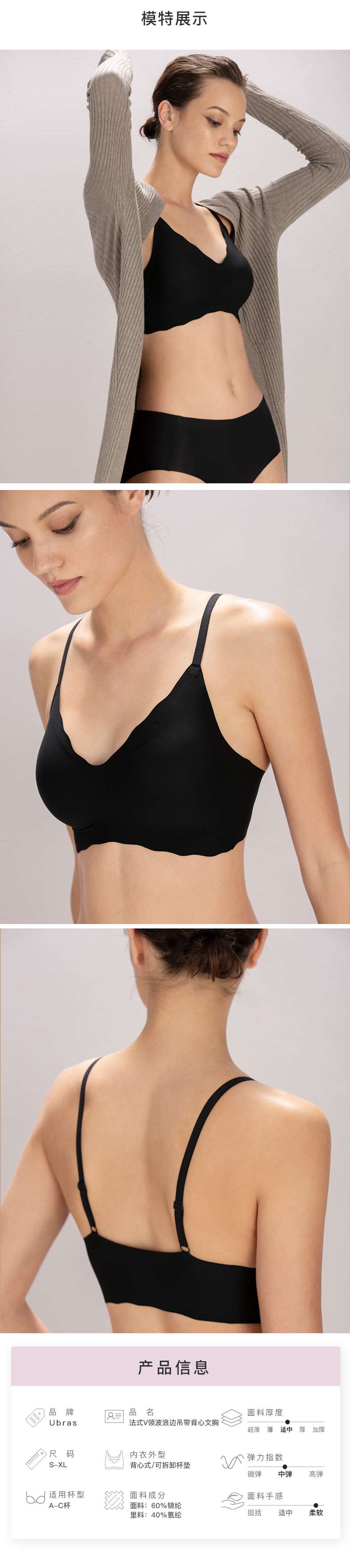 Ubras法式V领波浪边吊带背心文胸轻薄高弹承托内衣女无钢圈文胸