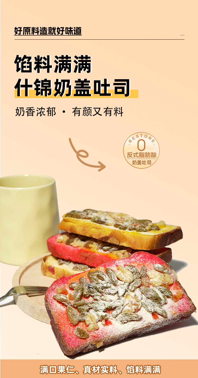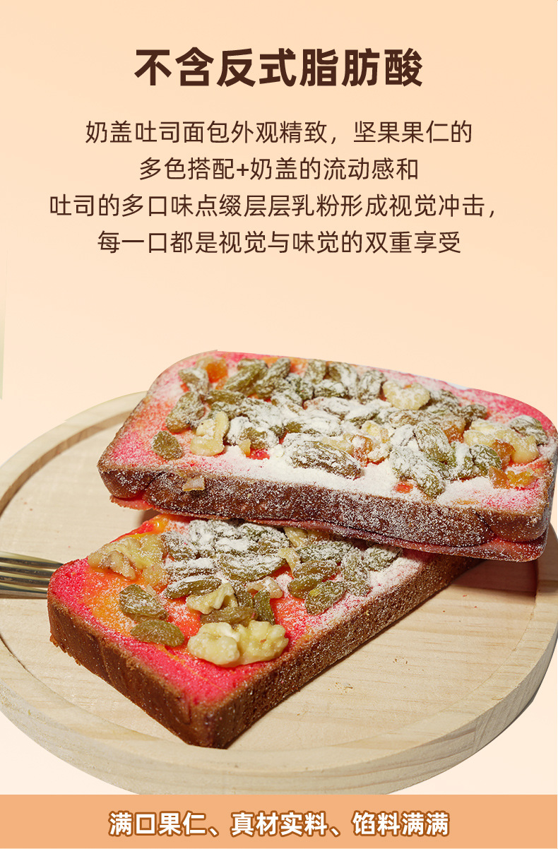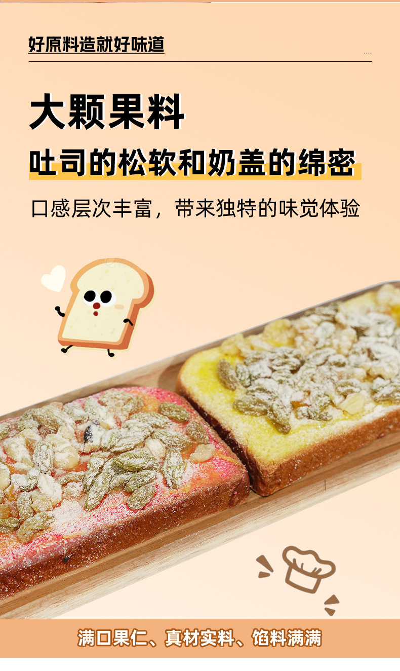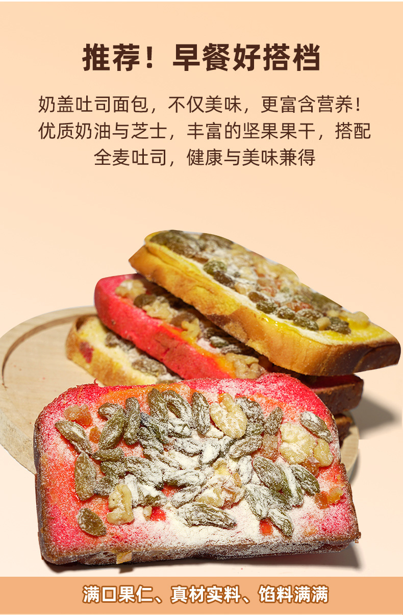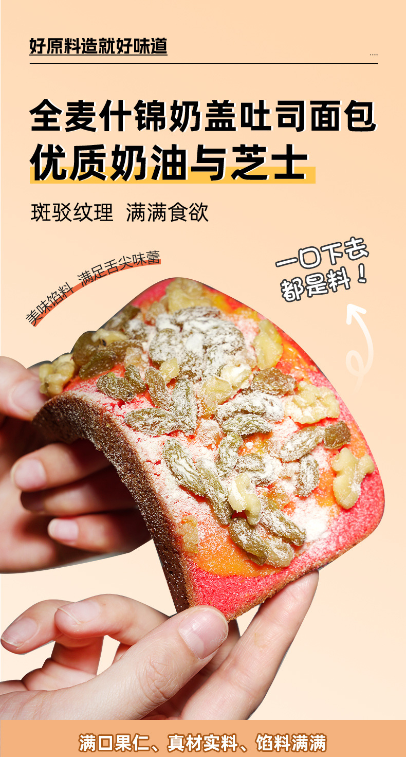 【满口果仁,真材实料,馅料满满!】什锦奶盖吐司 原味火龙果味面包 早餐整箱手撕 营养学生休闲小吃零食-QA