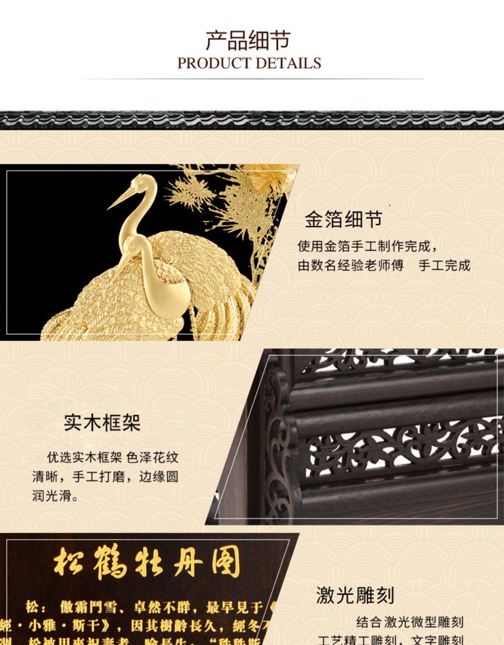 【彼达思】24K金箔画 松鹤牡丹图