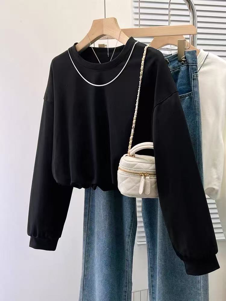 12.12错过没有!清货不退退货勿拍!!1805花苞短款长袖内里网纱不扎T恤-喜出