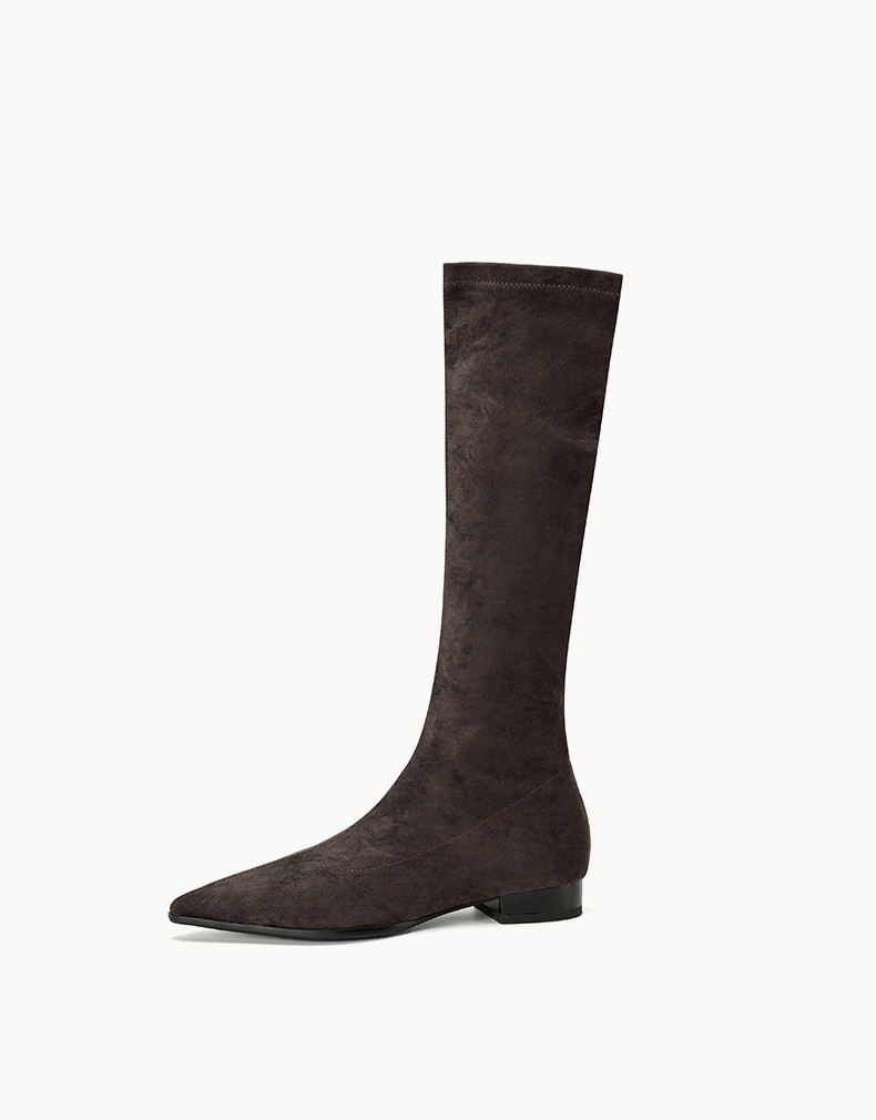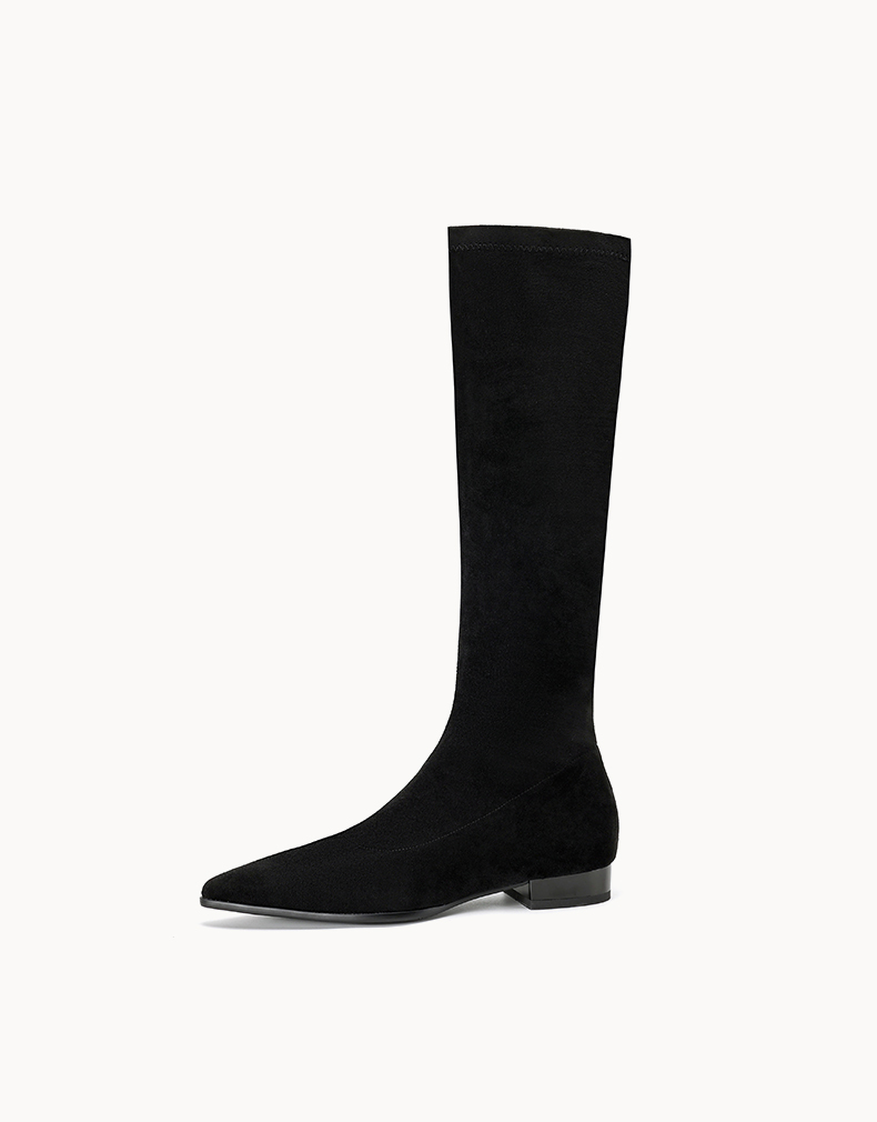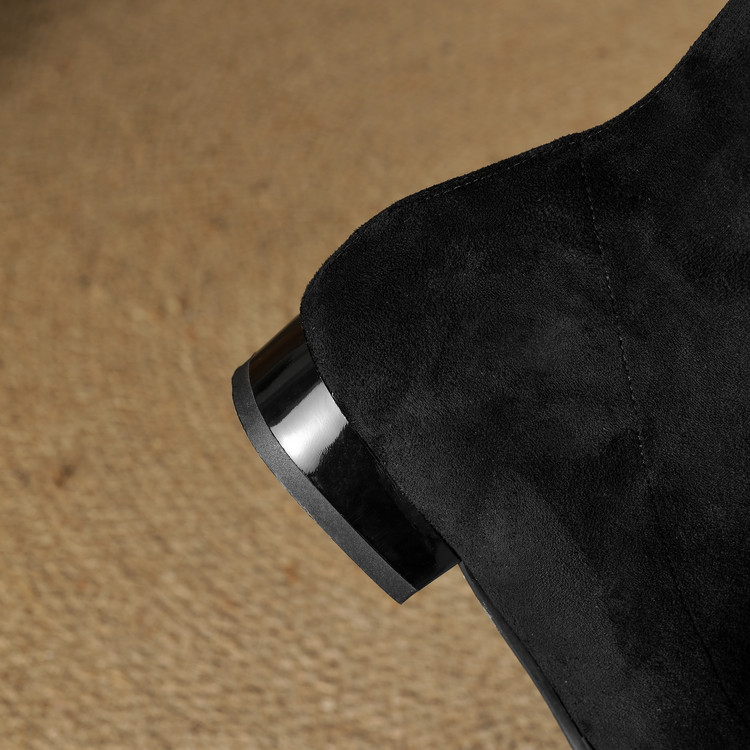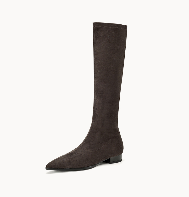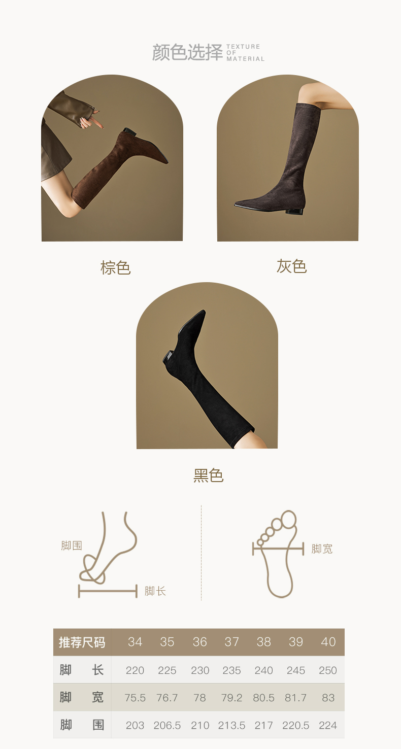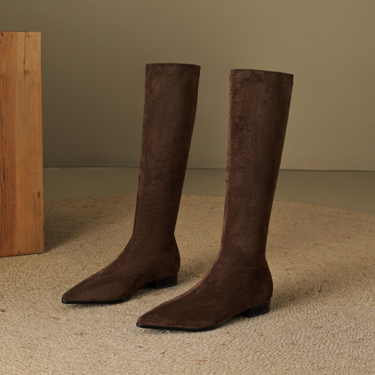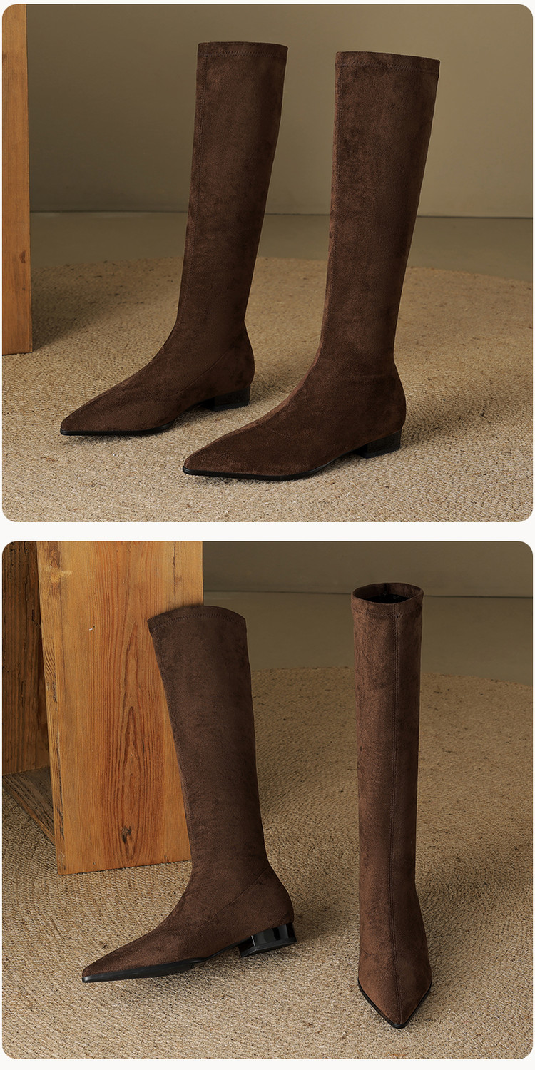 【预售7天】时尚气质尖头粗跟长筒靴女弹力瘦瘦靴绒面显瘦高筒长靴子HB&8889-1