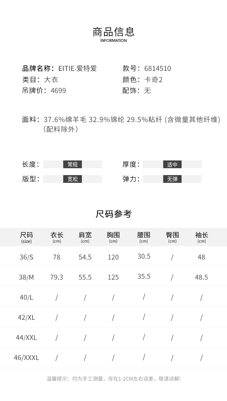 EITIE爱特爱冬季新款时尚复古毛呢大衣6814510