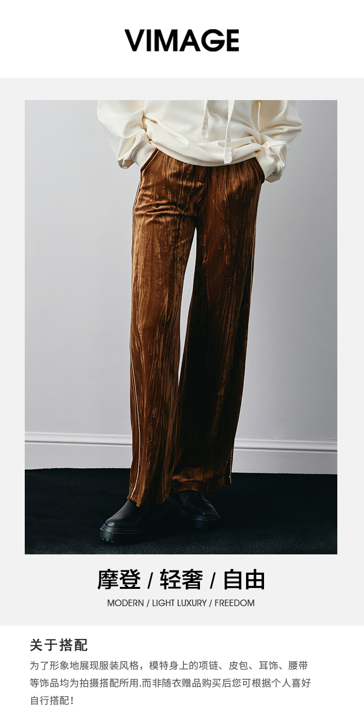VIMAGE纬漫纪秋季新款高腰休闲简约显瘦直筒时尚百搭裤子V2005617