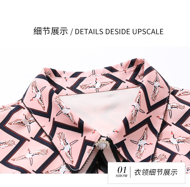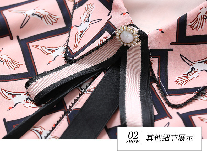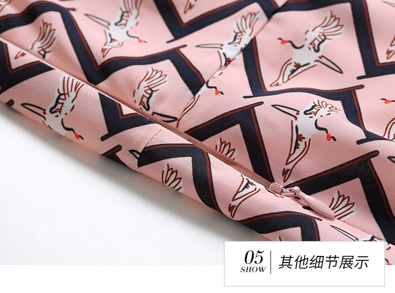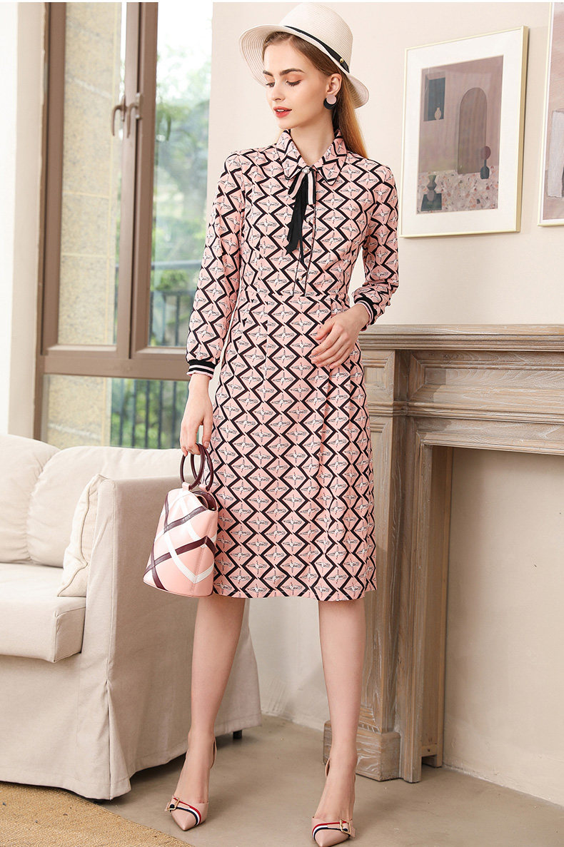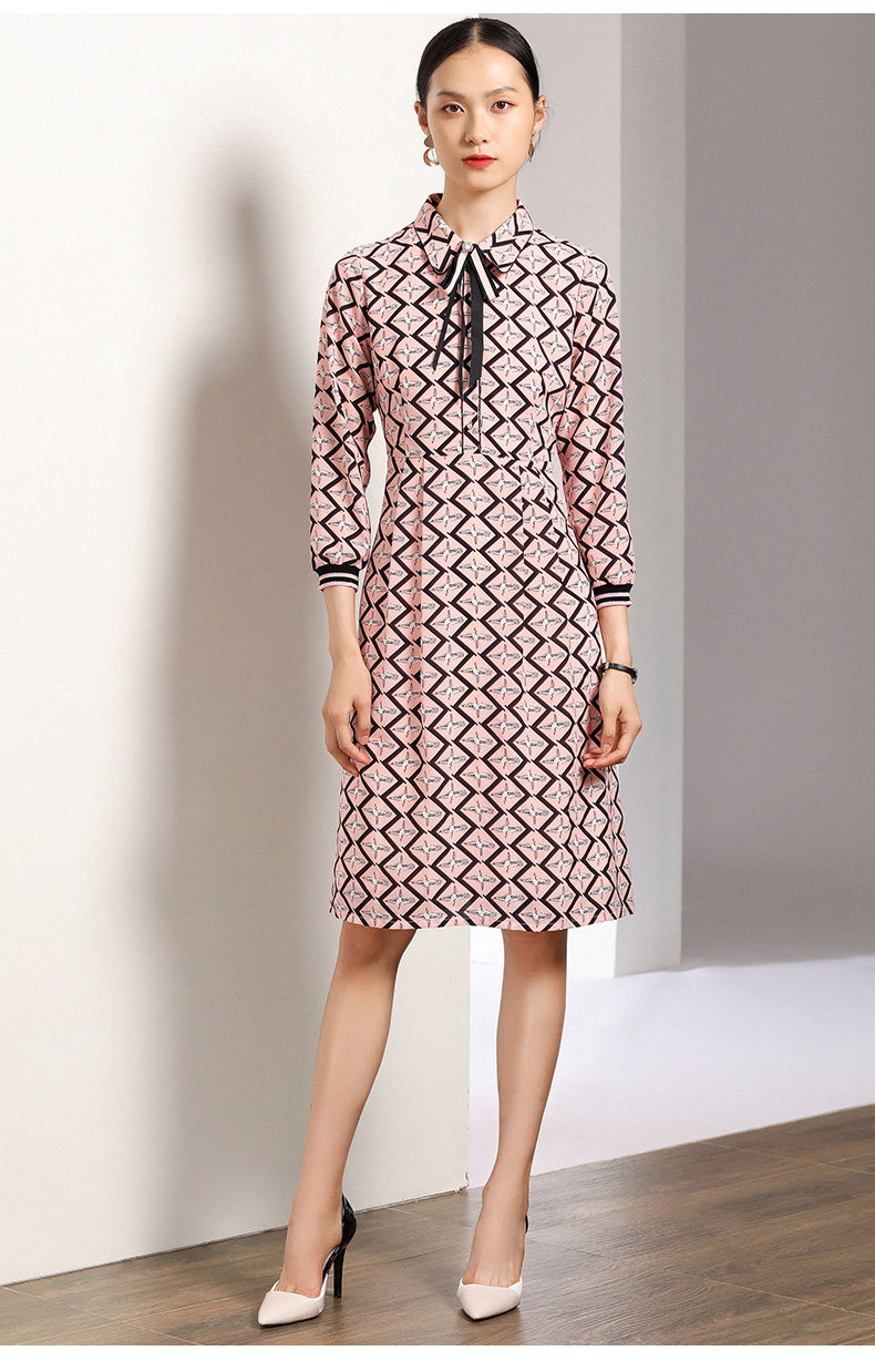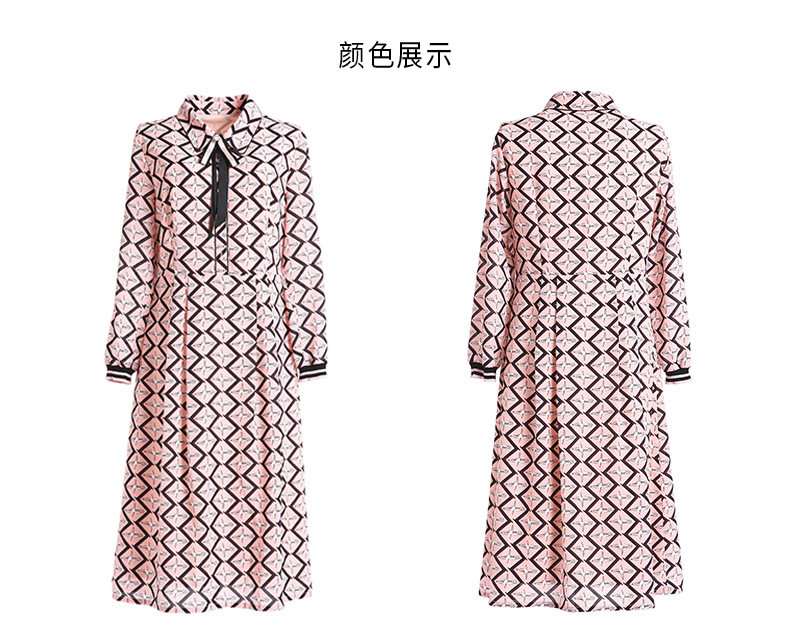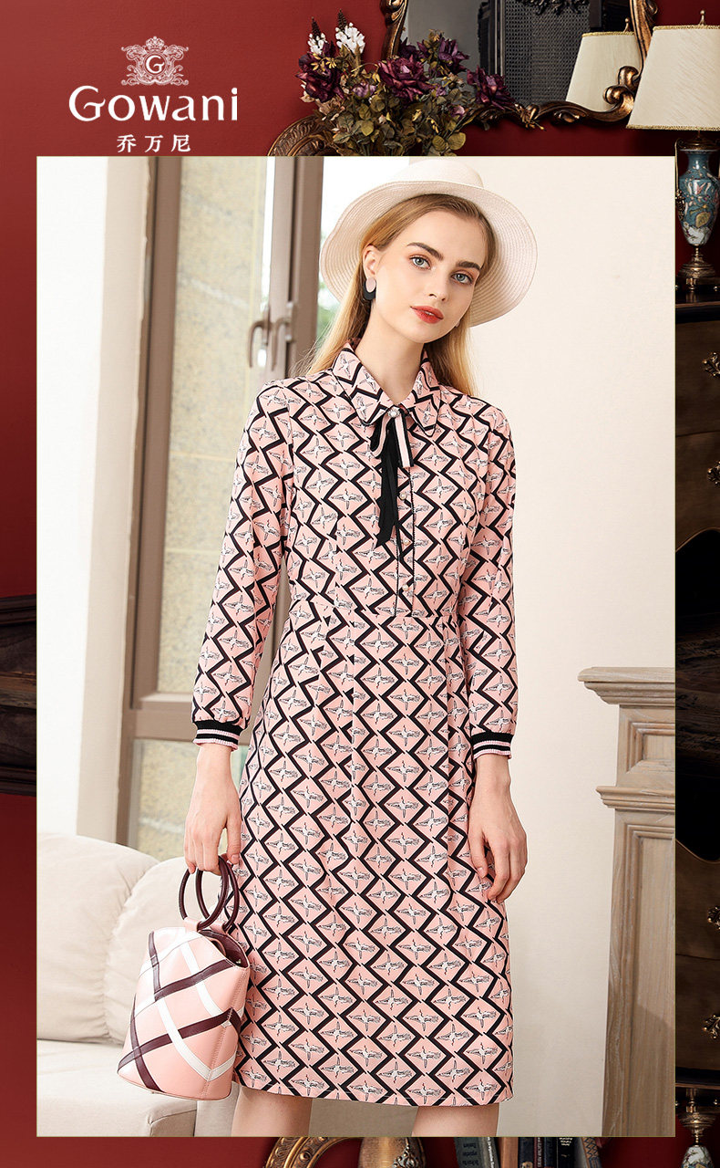 乔万尼秋装收腰显瘦气质粉色减龄印花长袖连衣裙中长款EN3E315