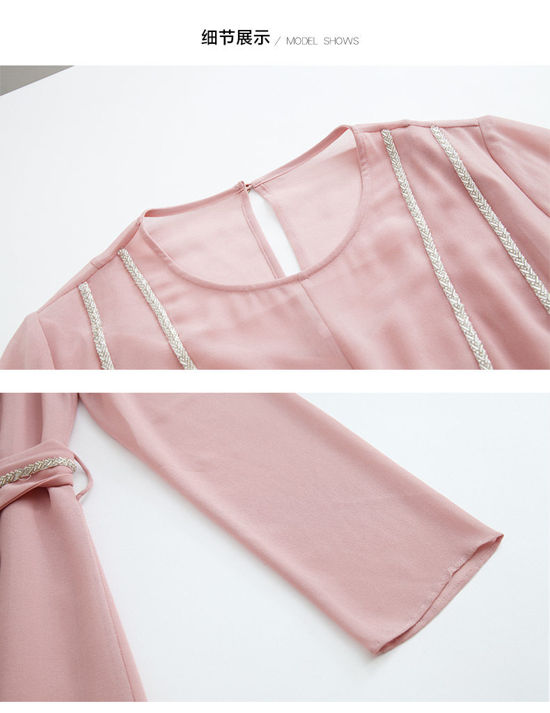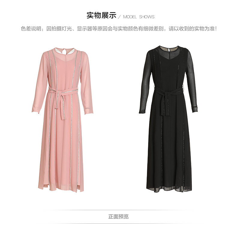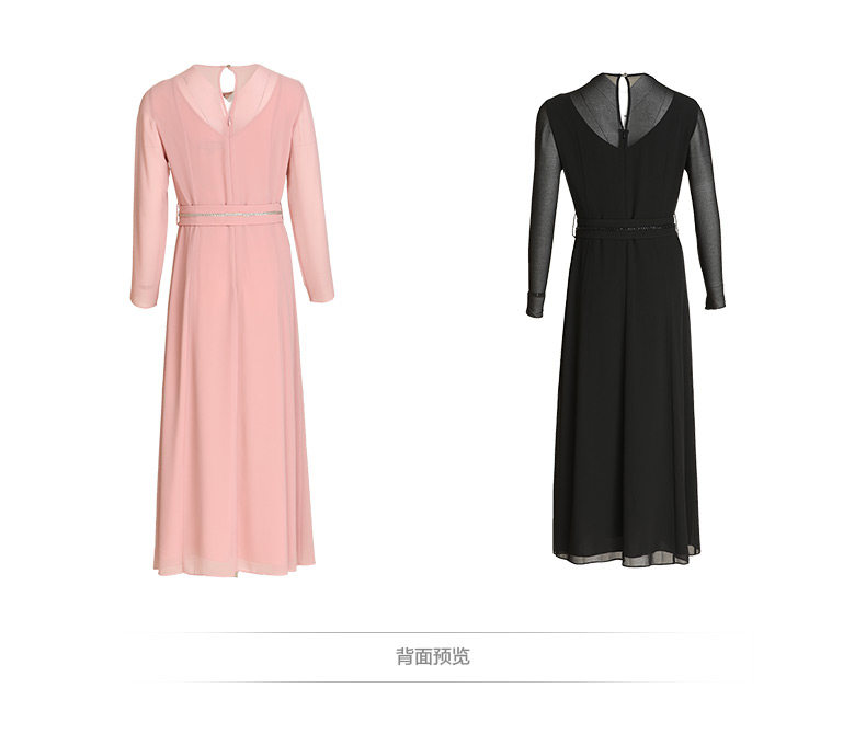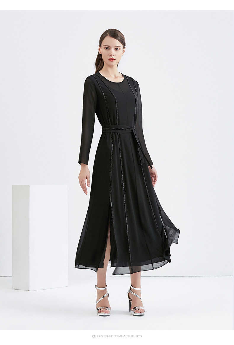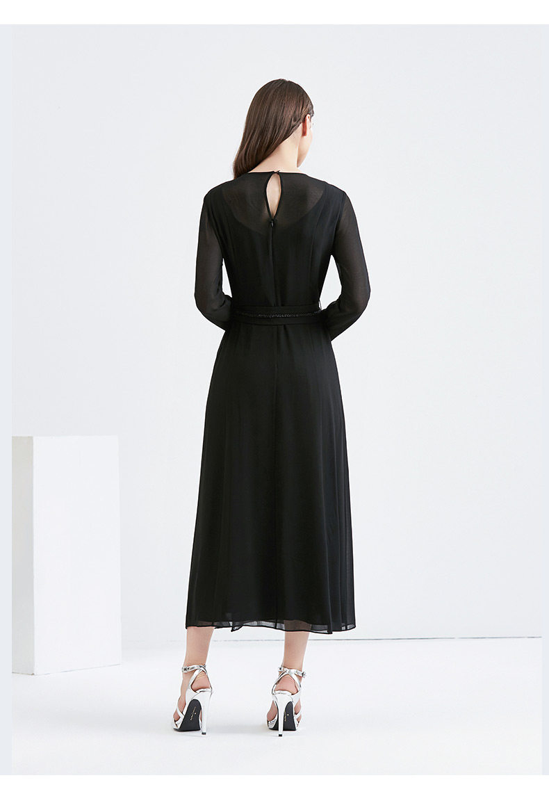 EITIE爱特爱女装早秋新款优雅气质系带收腰钉珠礼服裙长裙5677302