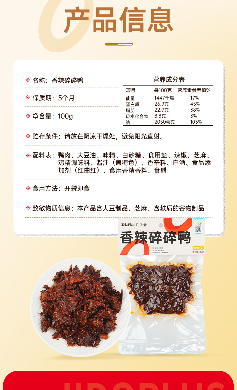 【鲜食】几多全-香辣碎碎鸭,100g