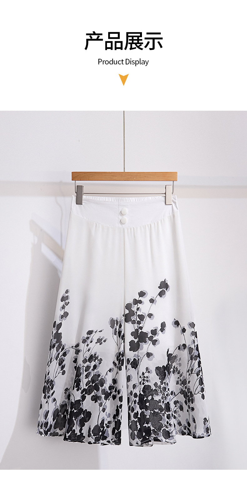 夏款通勤优雅宽松时尚印花雪纺裙裤后腰松紧气质阔腿七分裤MYX-9414