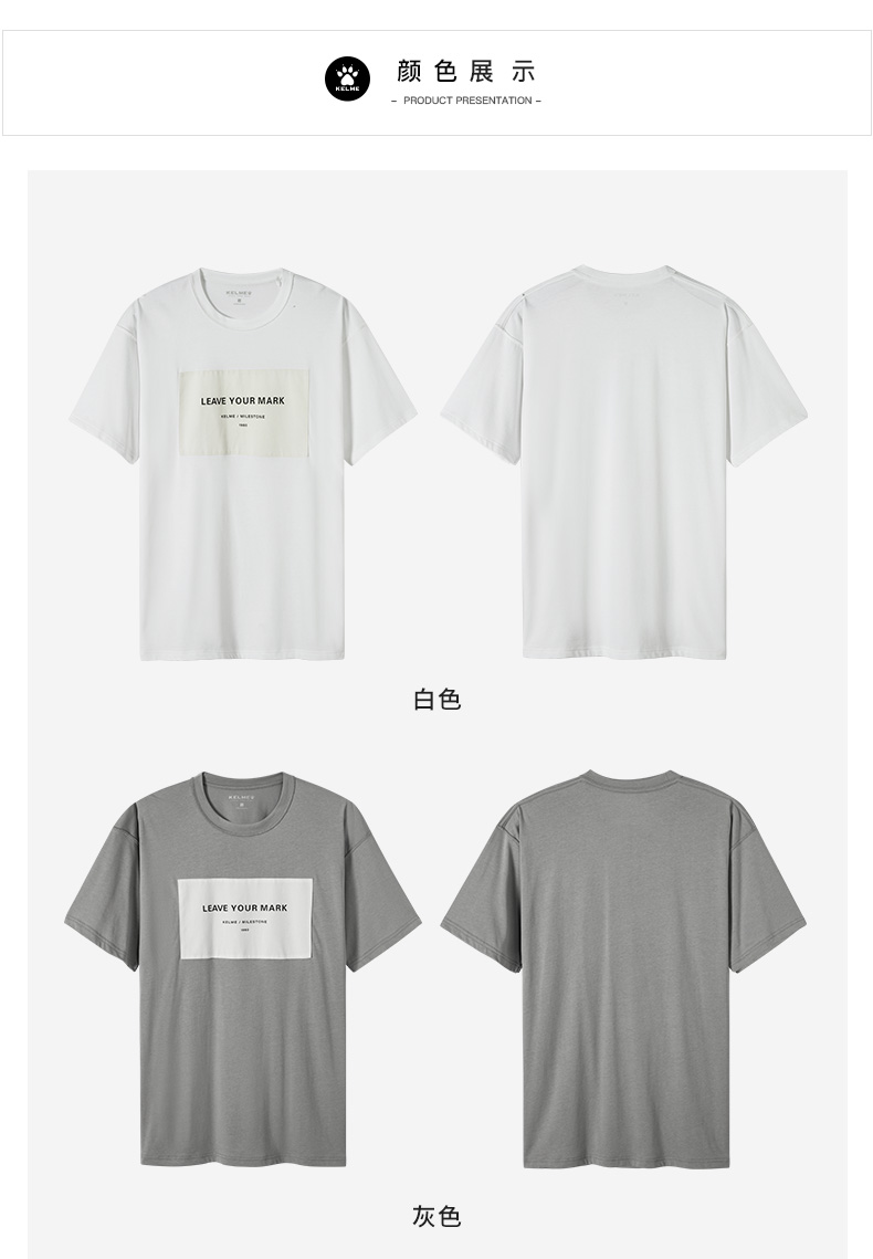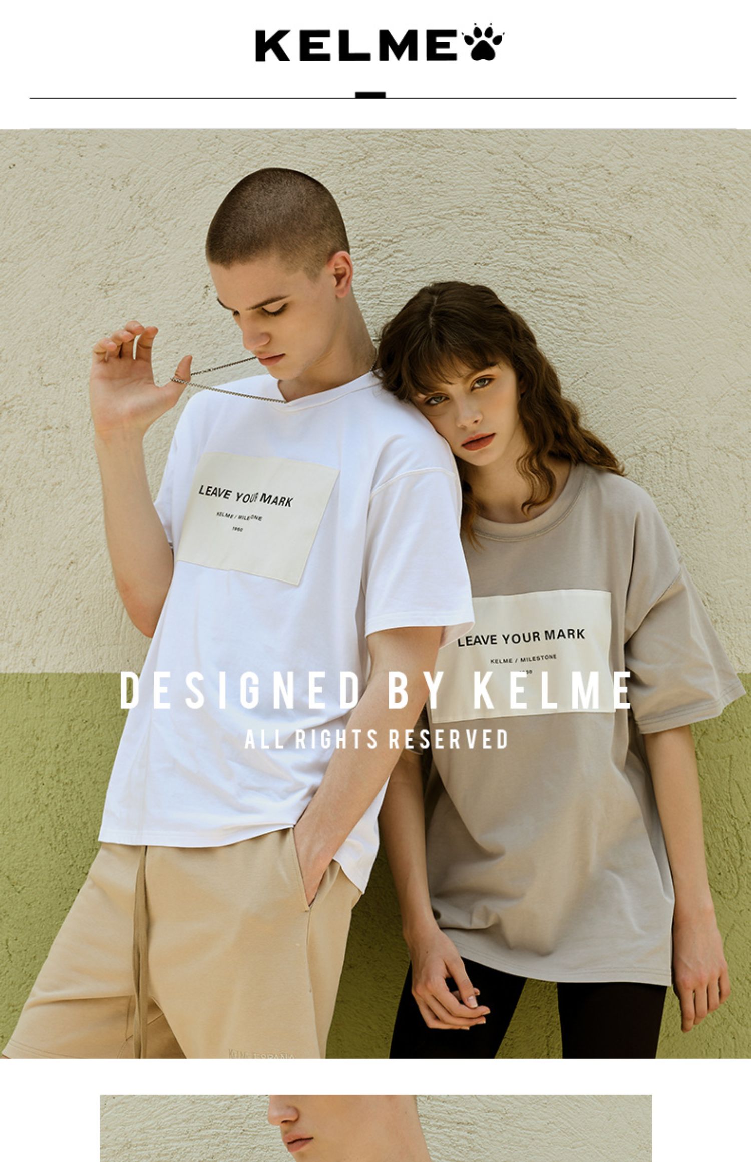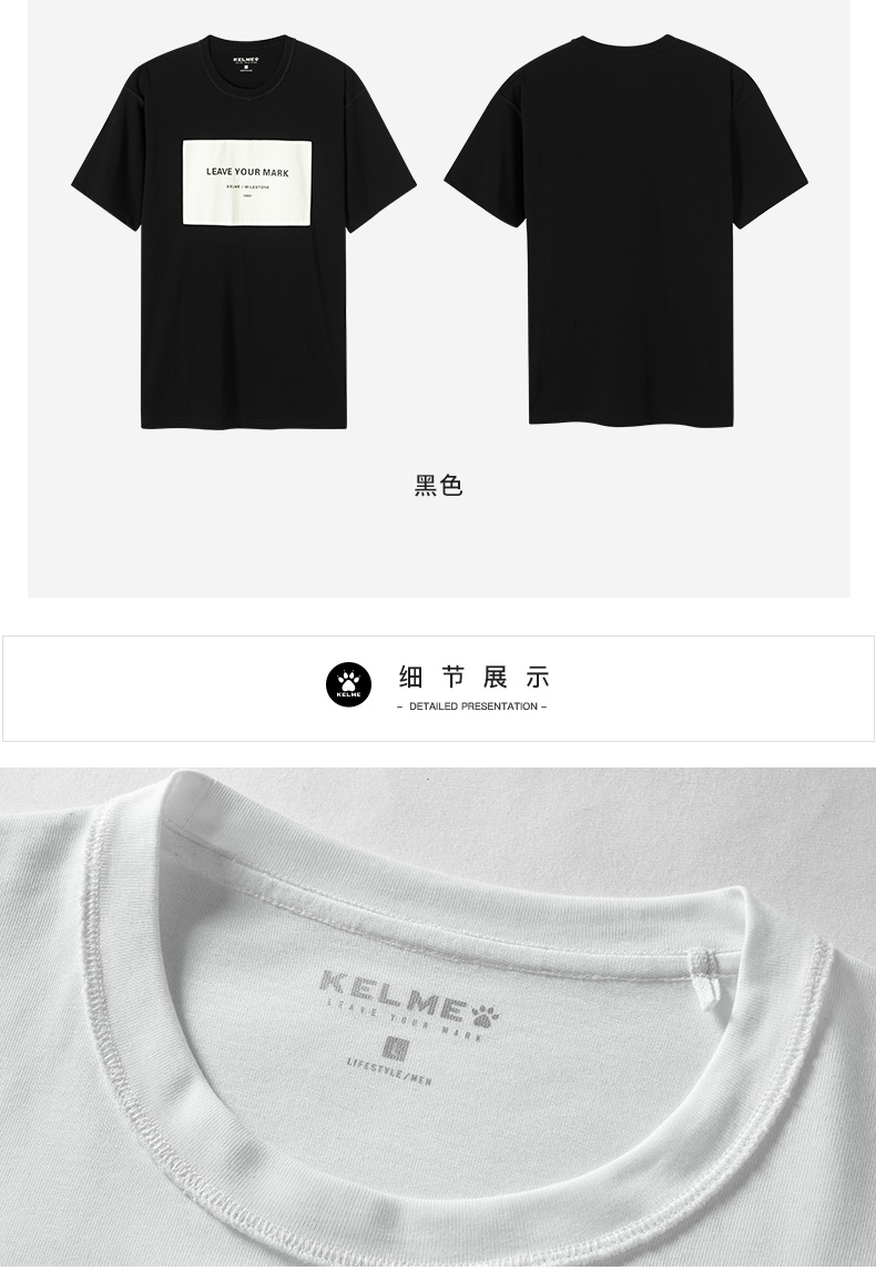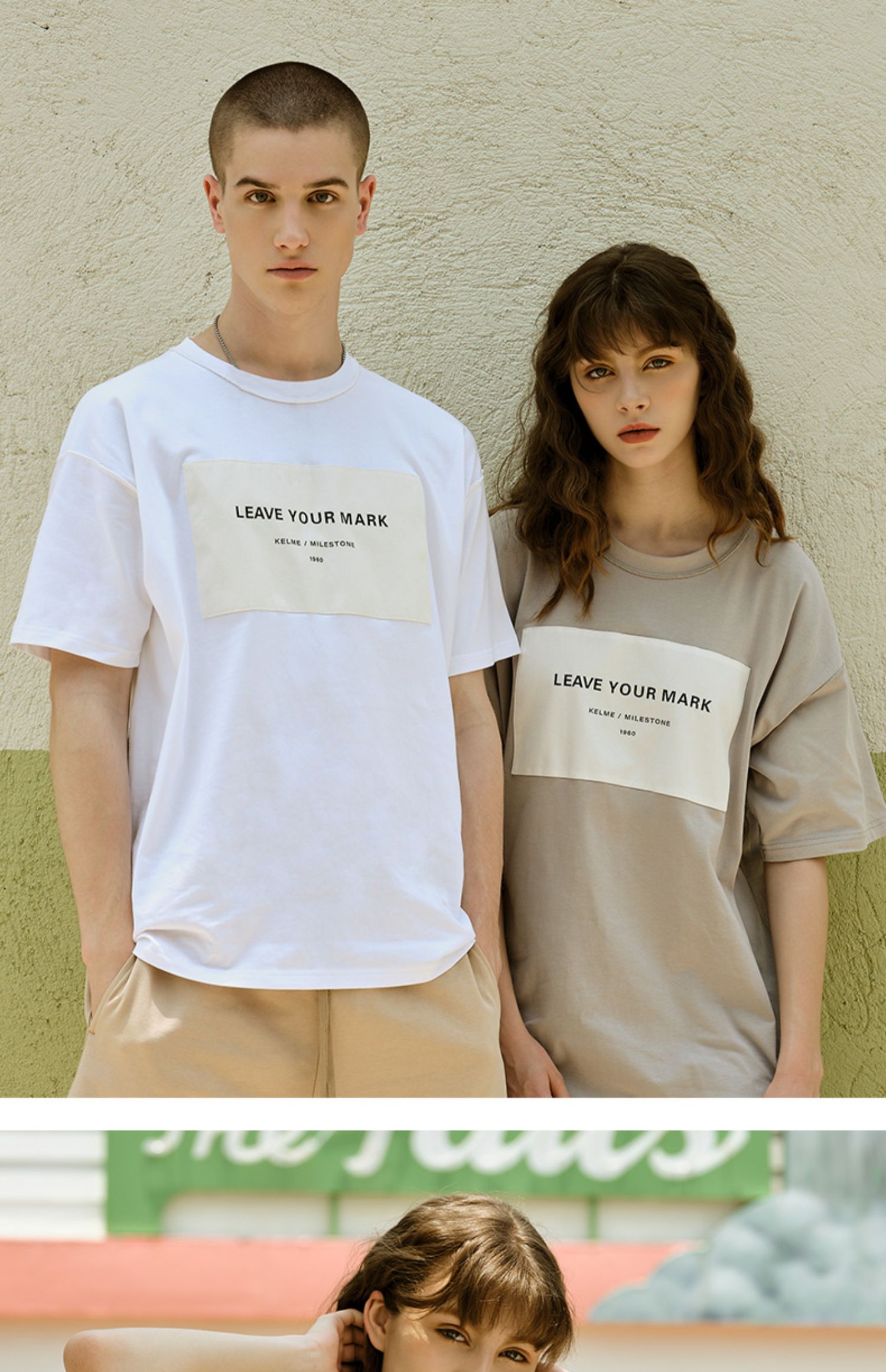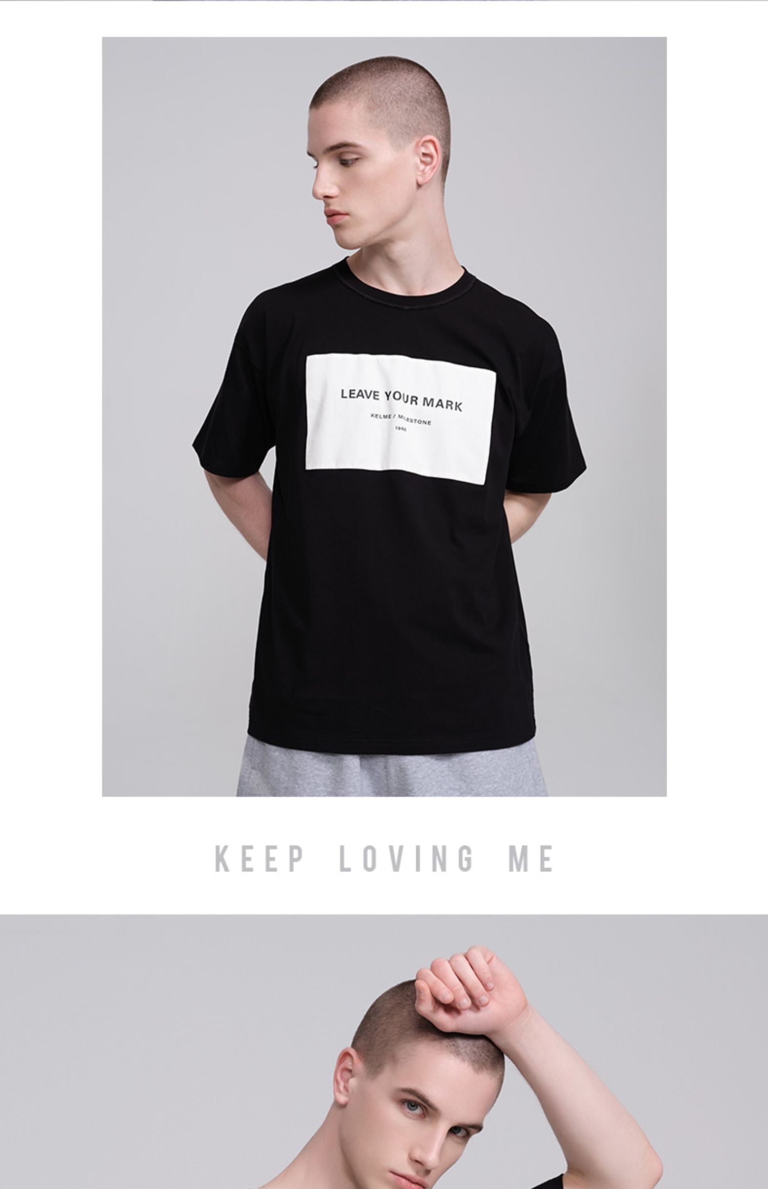卡尔美夏季新款运动休闲短袖男女中性款情侣纯棉字母T恤