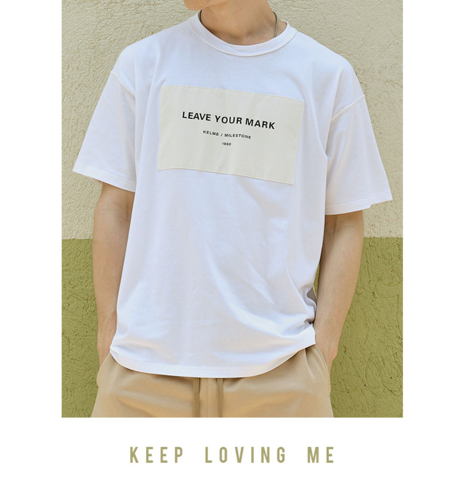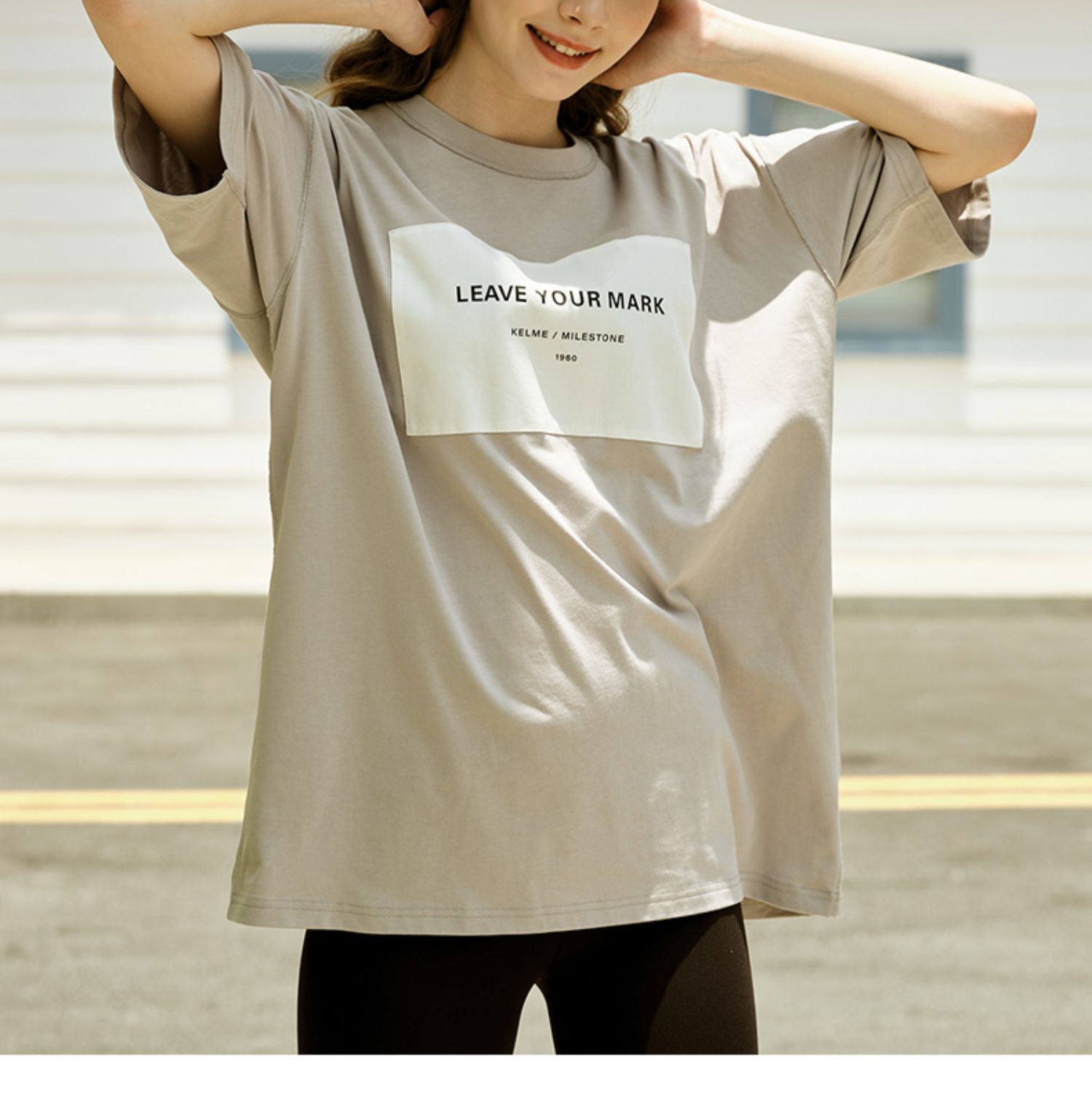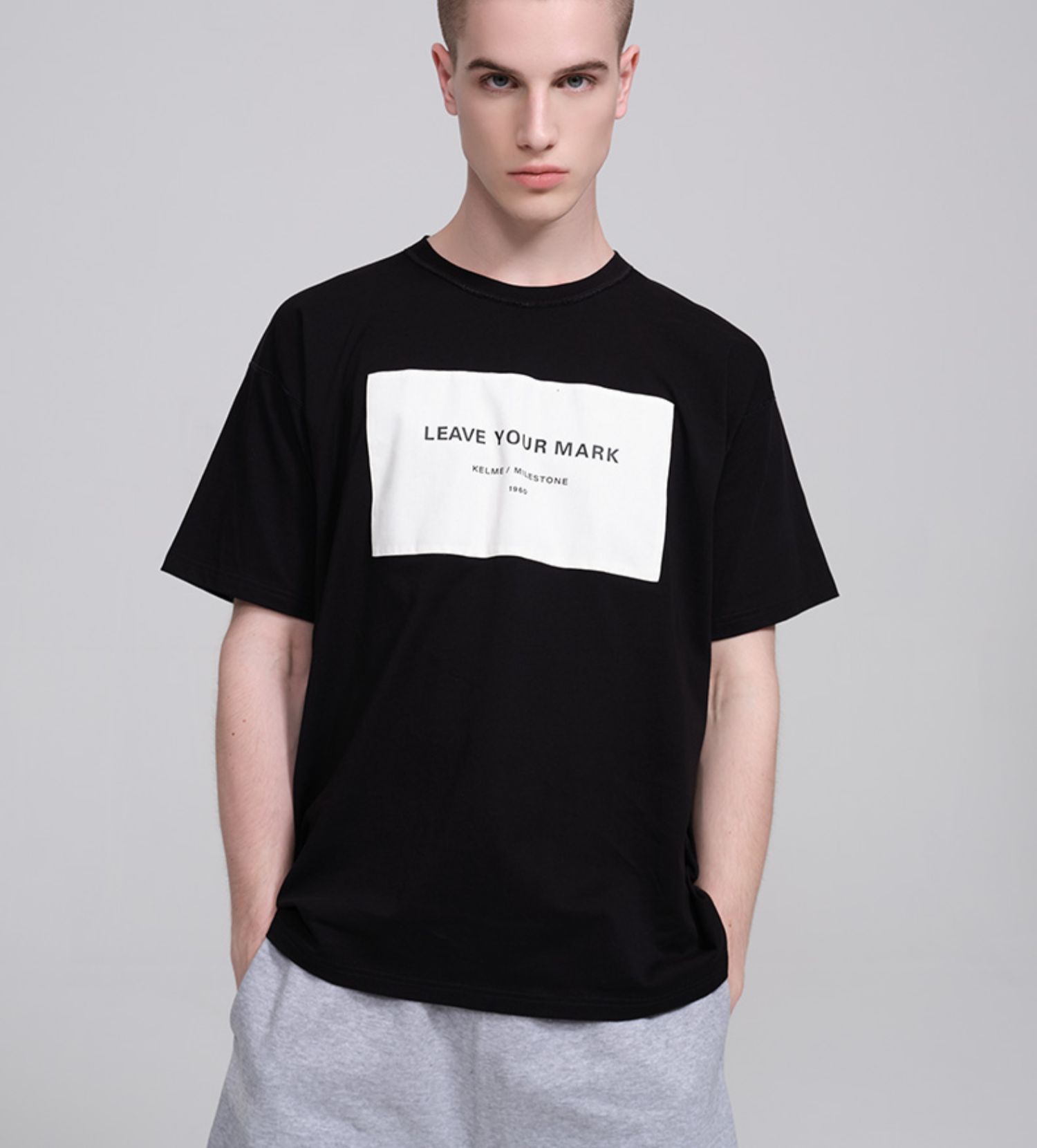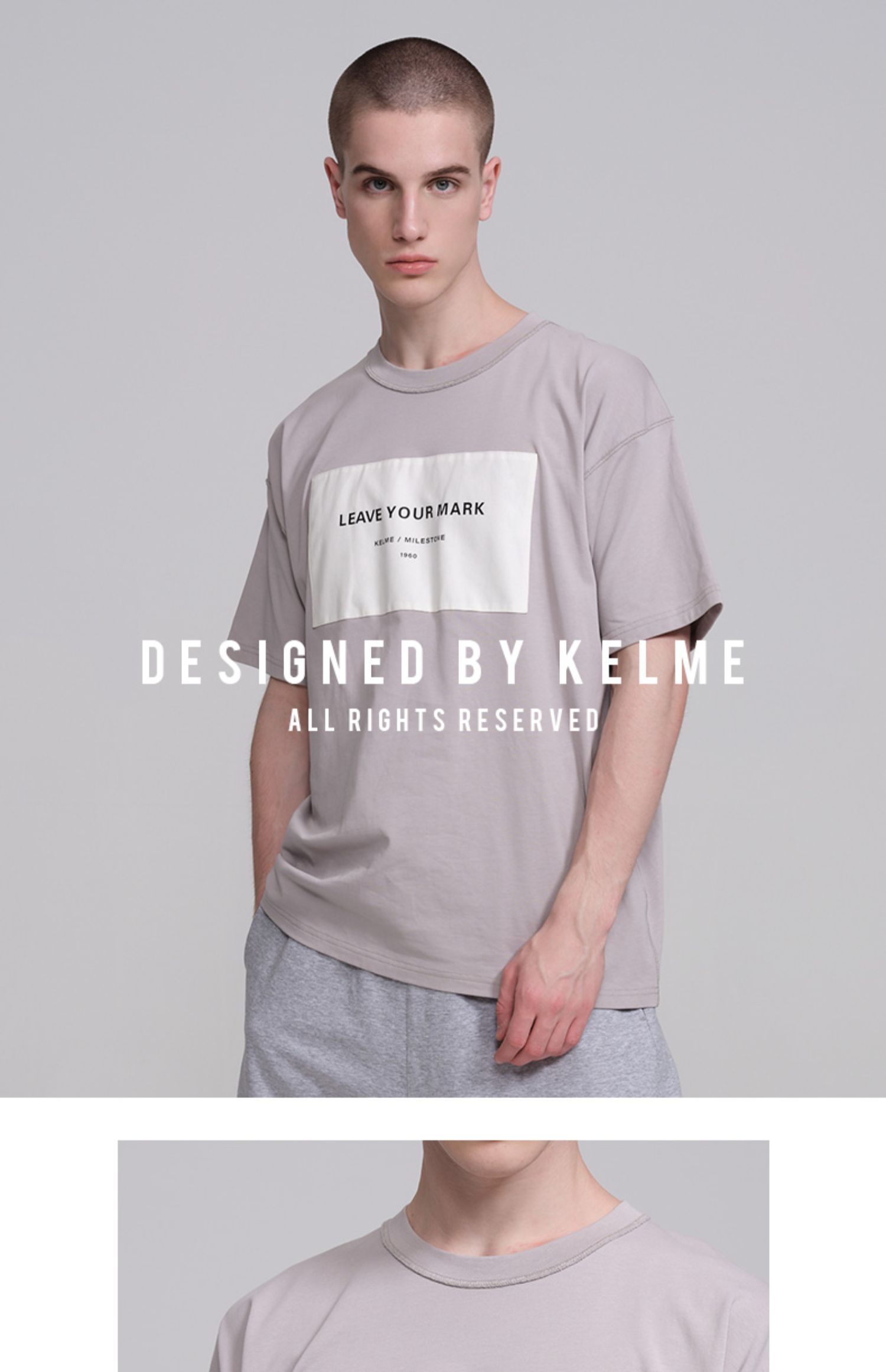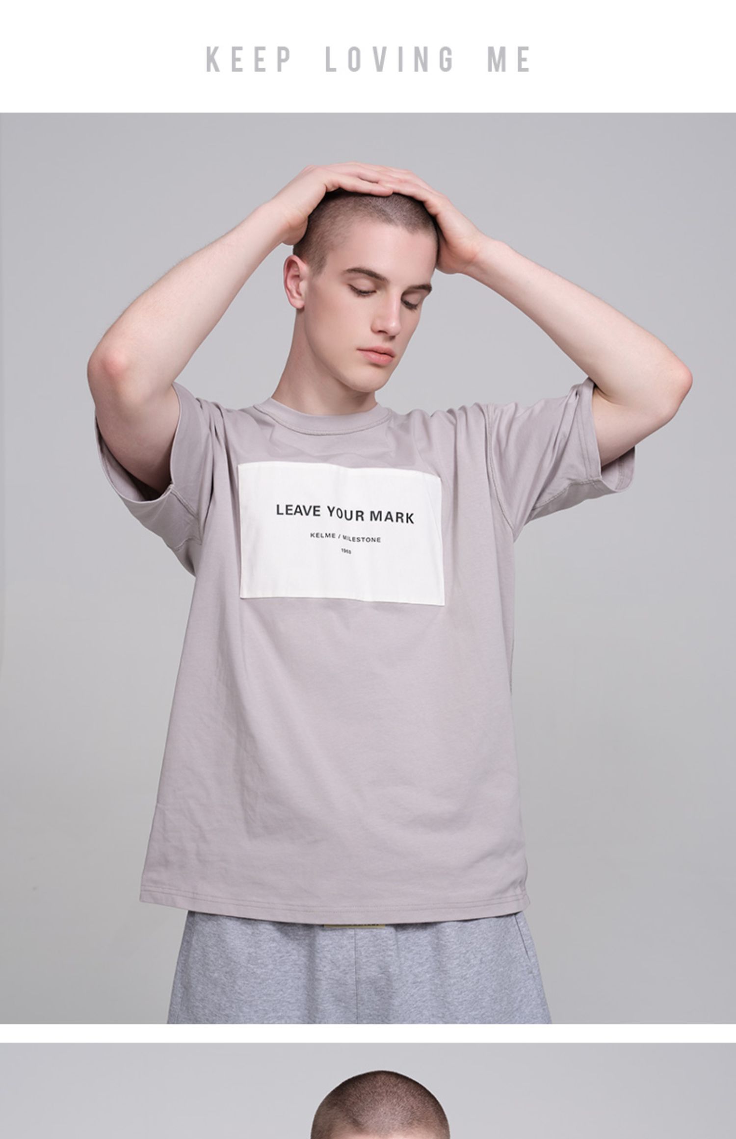 卡尔美夏季新款运动休闲短袖男女中性款情侣纯棉字母T恤