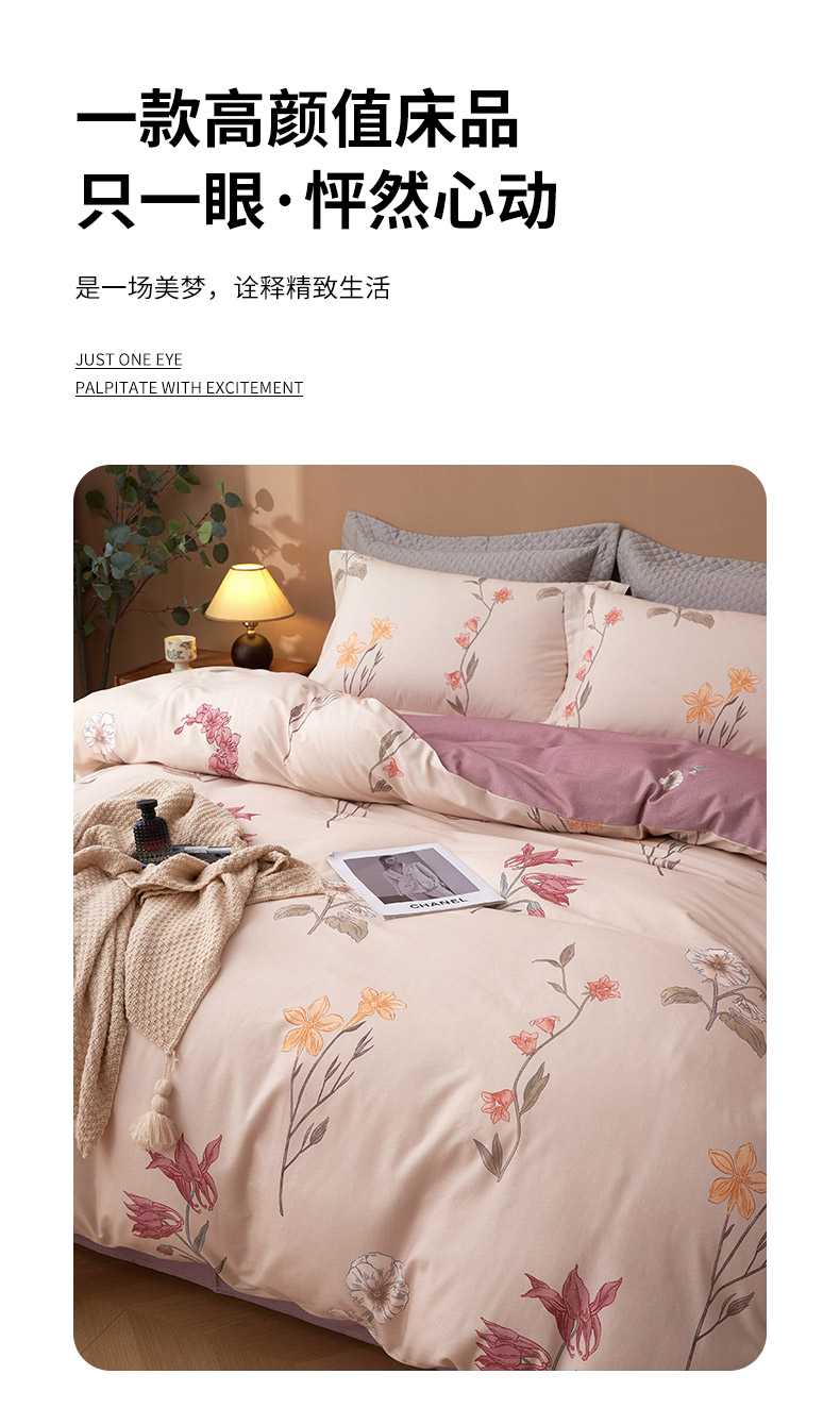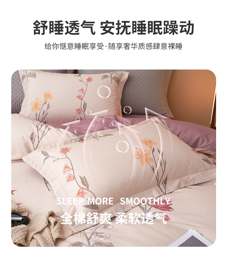 【维科家纺】新款秋冬加厚磨毛四件套简约全棉纯棉被套床单四件套床上用品