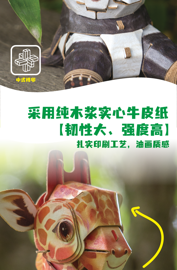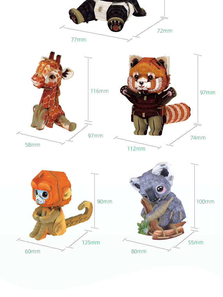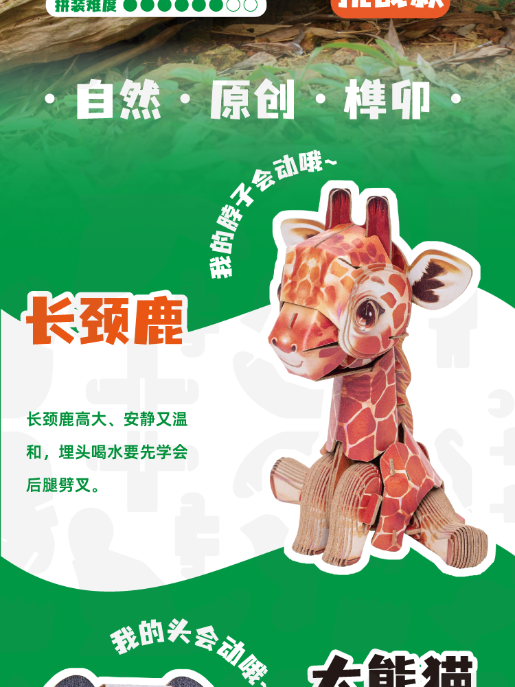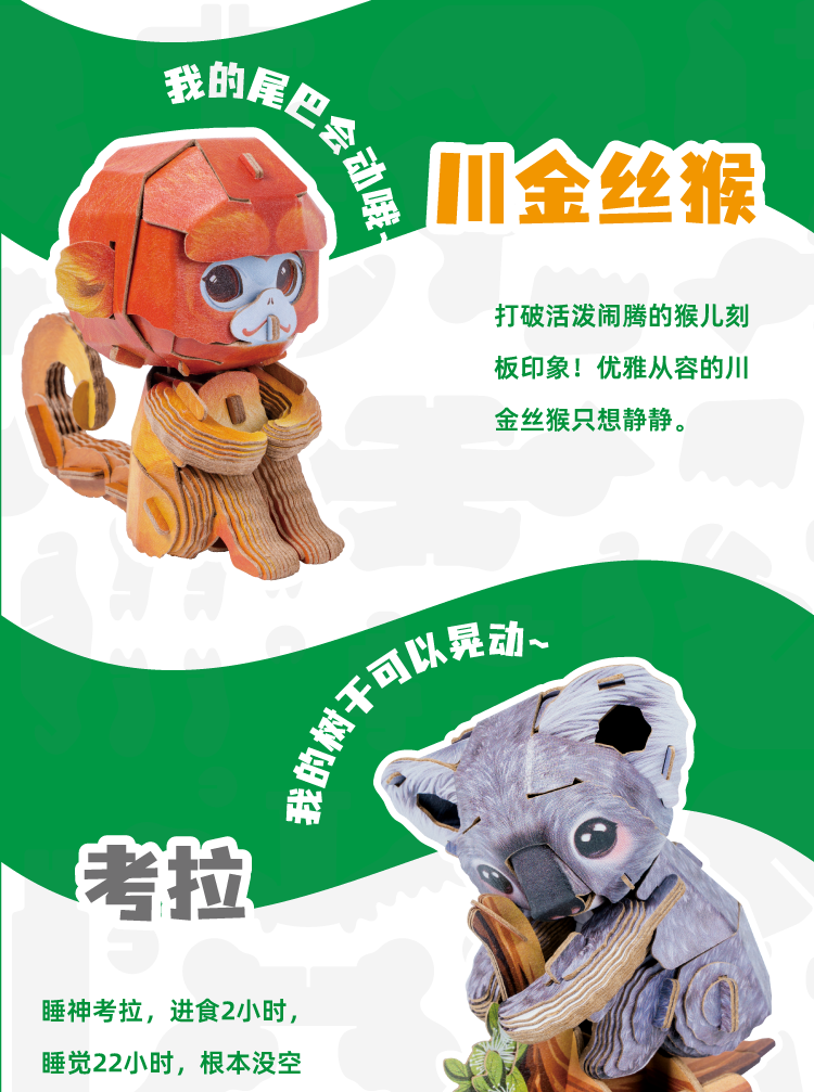 博物文创 萌仔茶话会系列 立体拼插纸模 小熊猫 长颈鹿 大熊猫 川金丝猴 考拉
