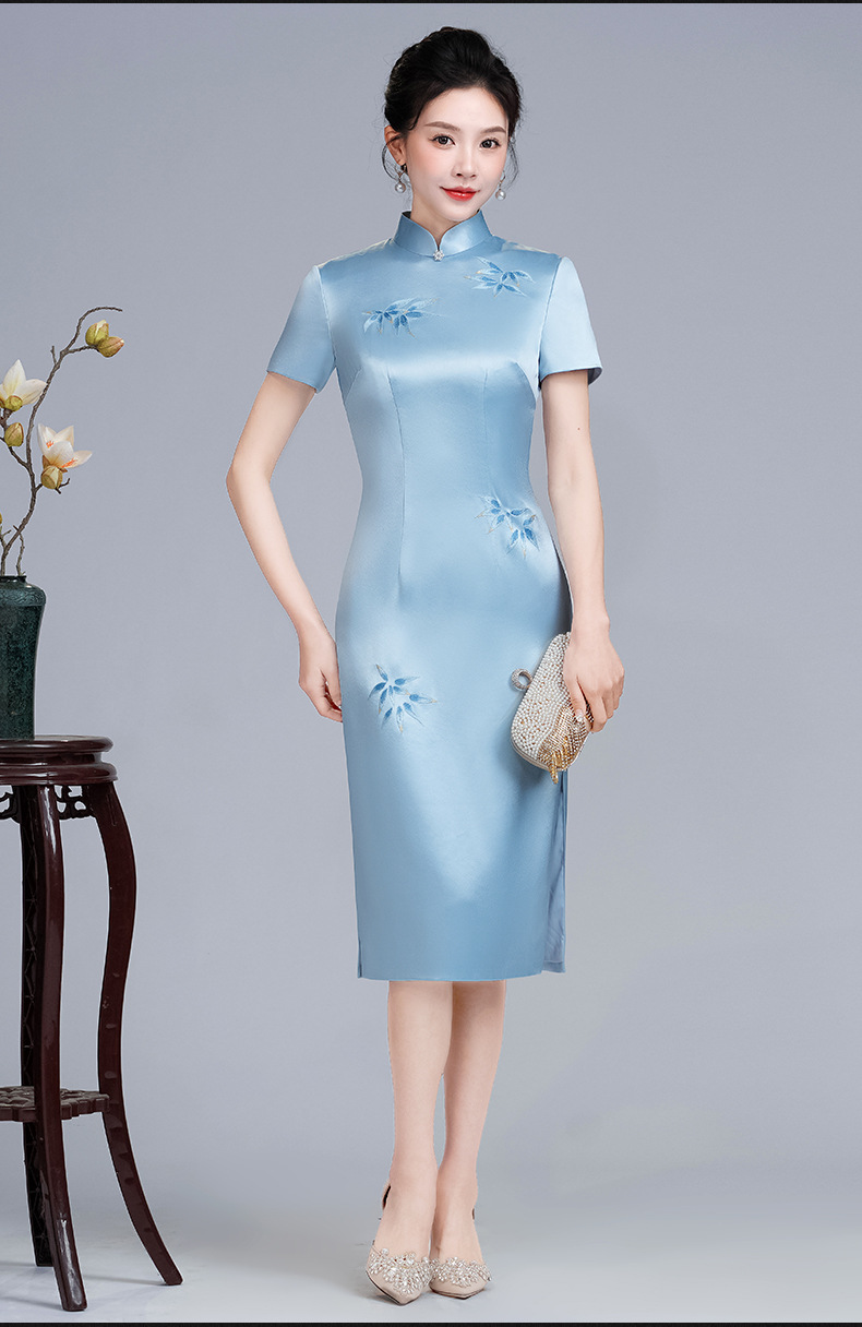 婚庆喜婆婆婚宴装平时可穿旗袍连衣裙夏2023新款刺绣喜妈妈礼服LHS-A19