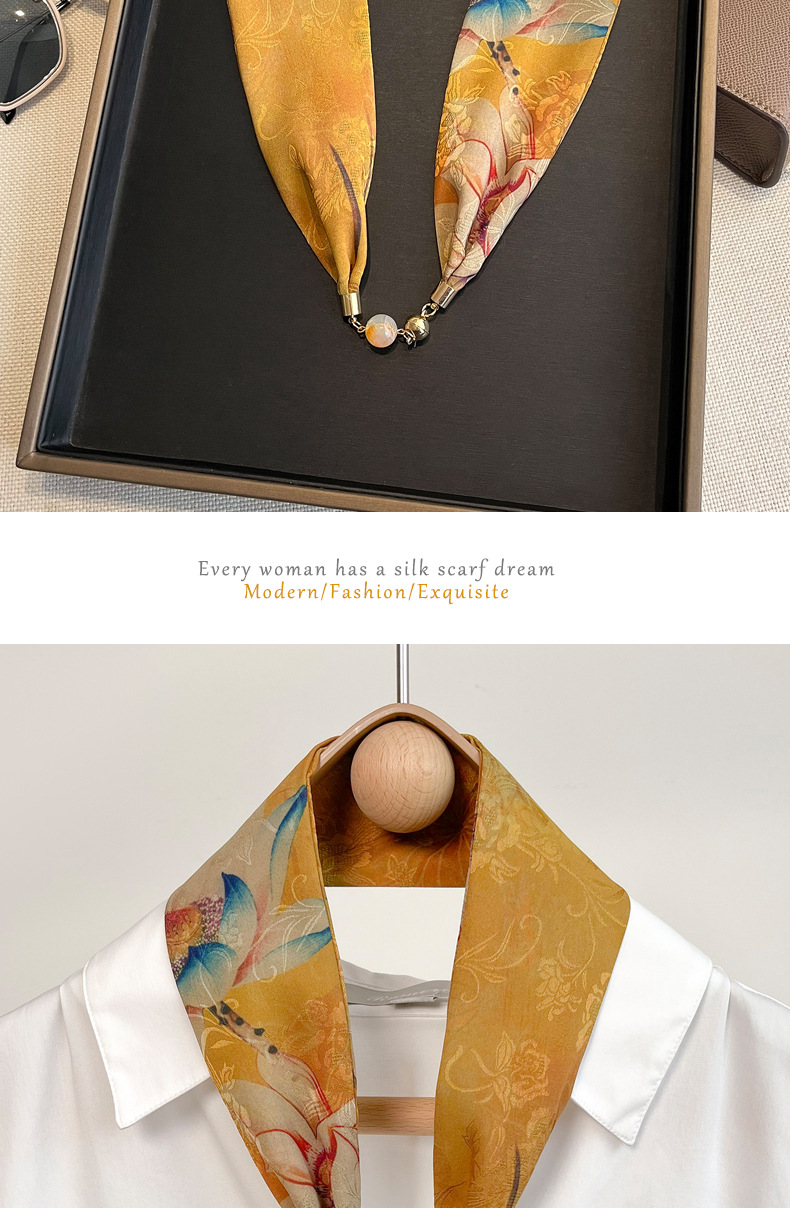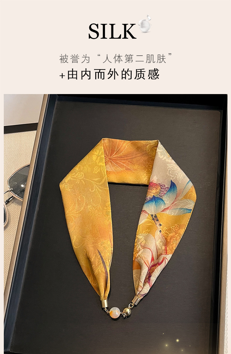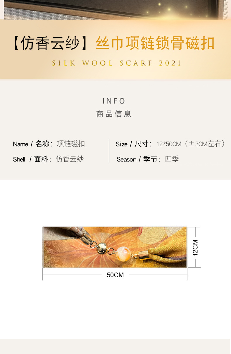 雀说 丝巾项链磁扣仿香云纱女小围巾锁骨链懒人磁吸扣高端围脖4ZF-31104