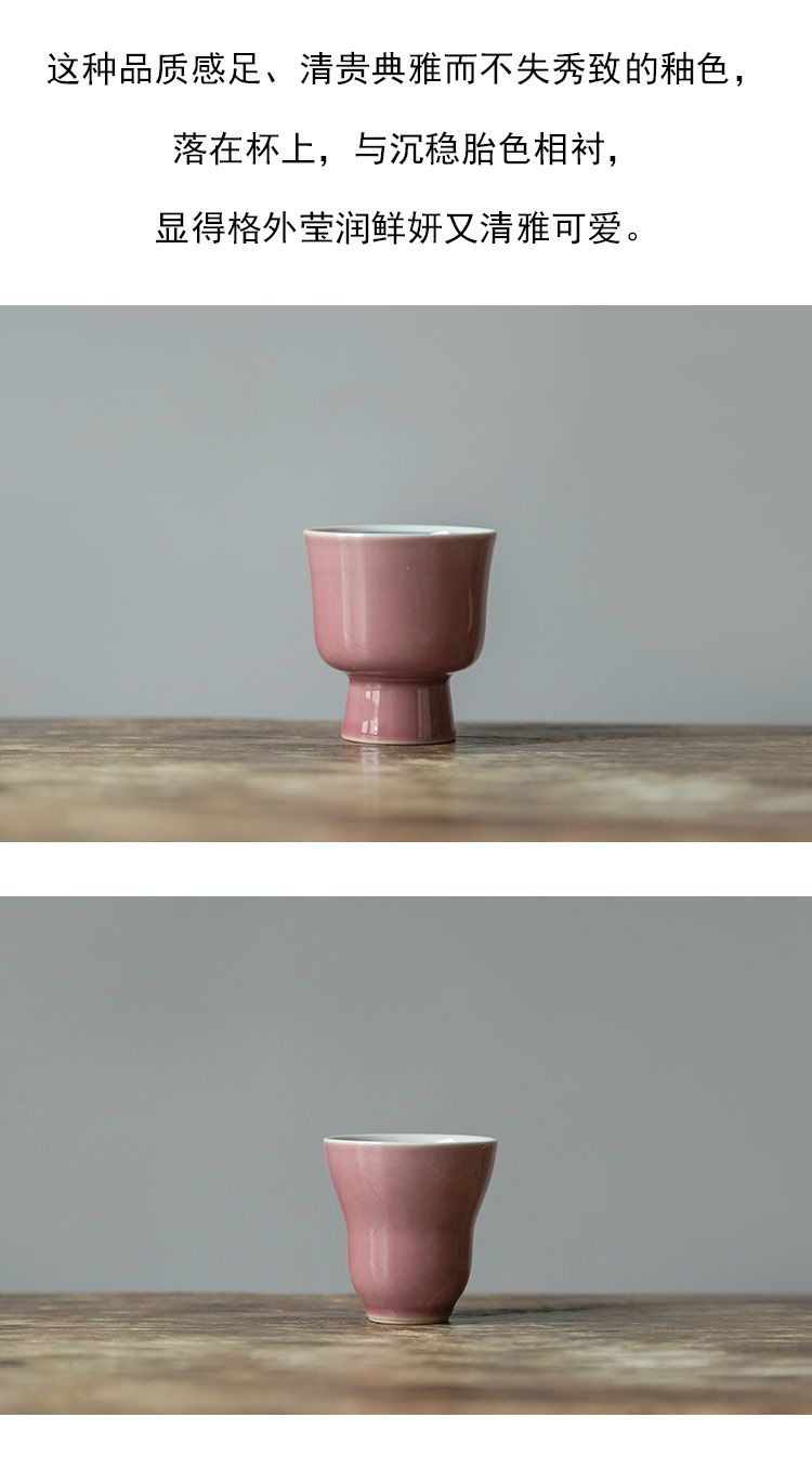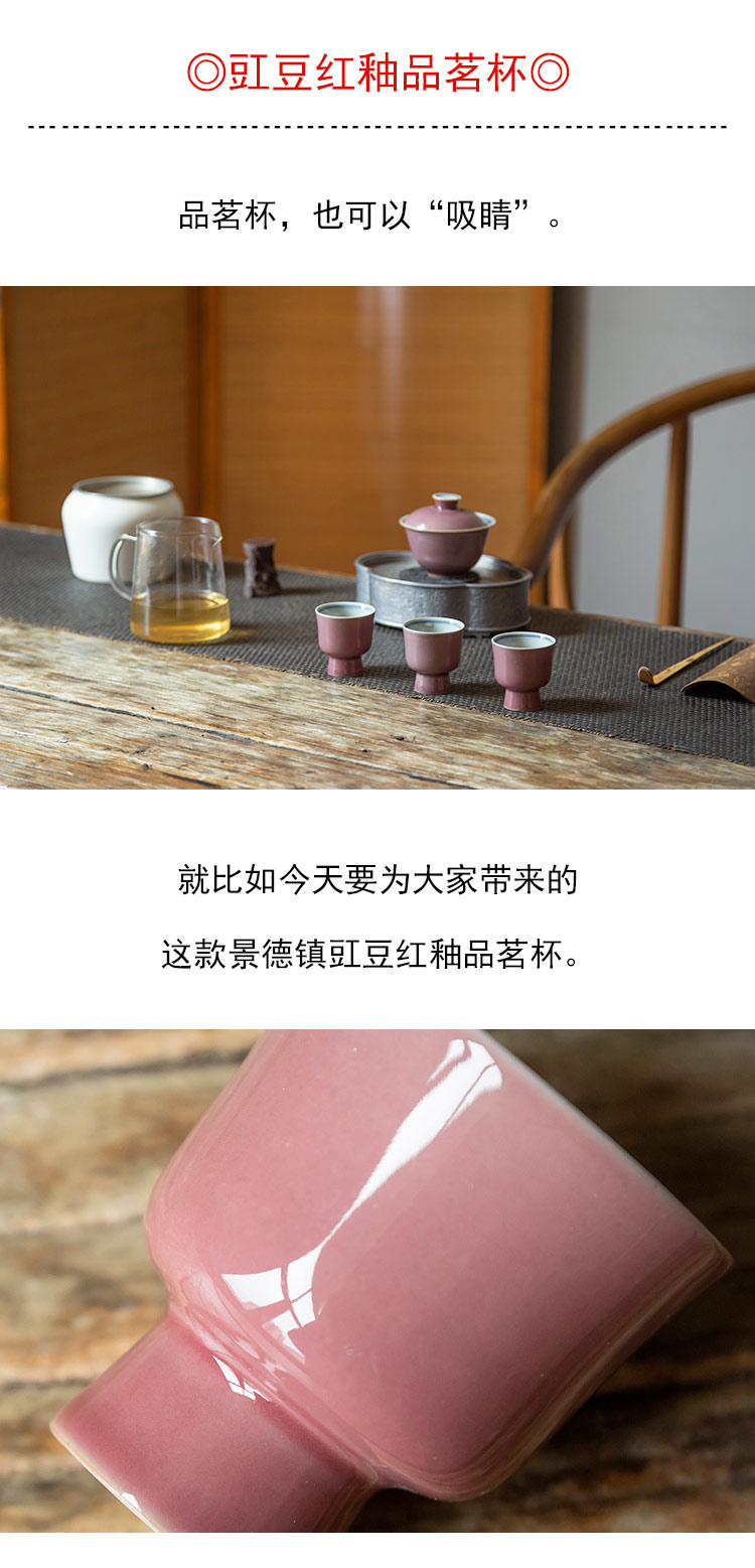 茶香记 景德镇豇豆红釉品茗杯清雅小高足茶杯30ml品饮高香型茶品