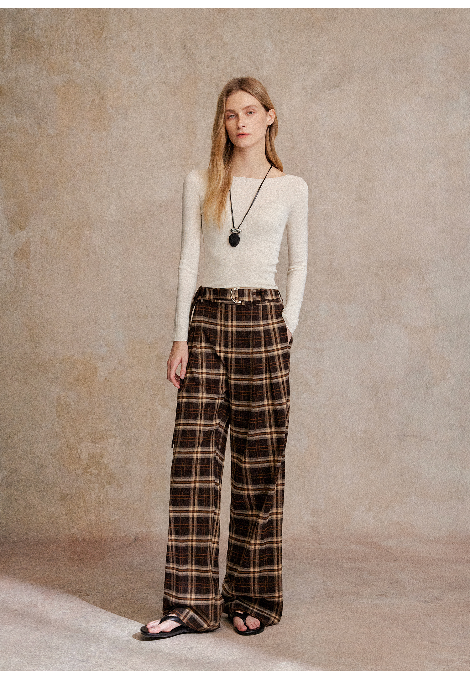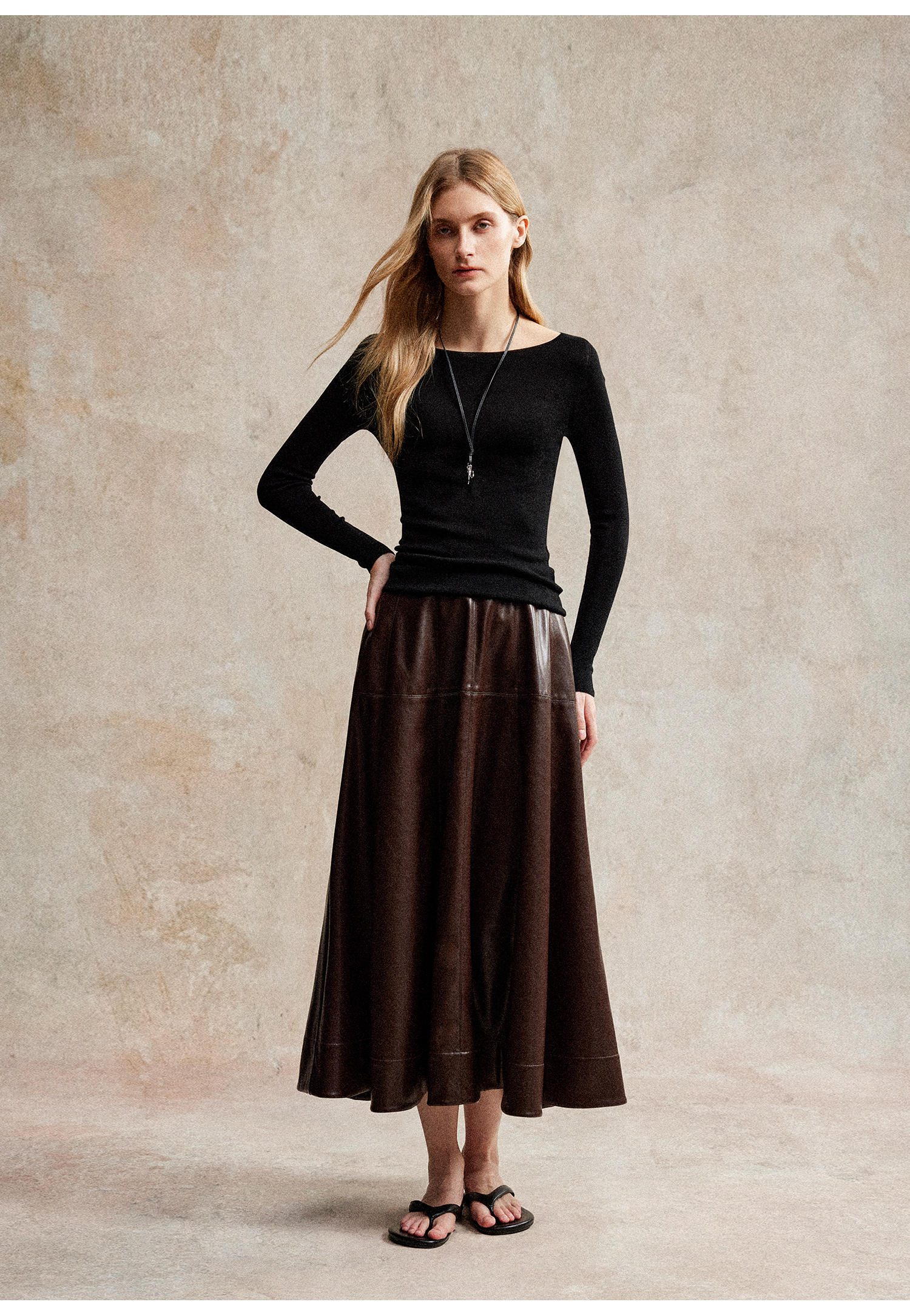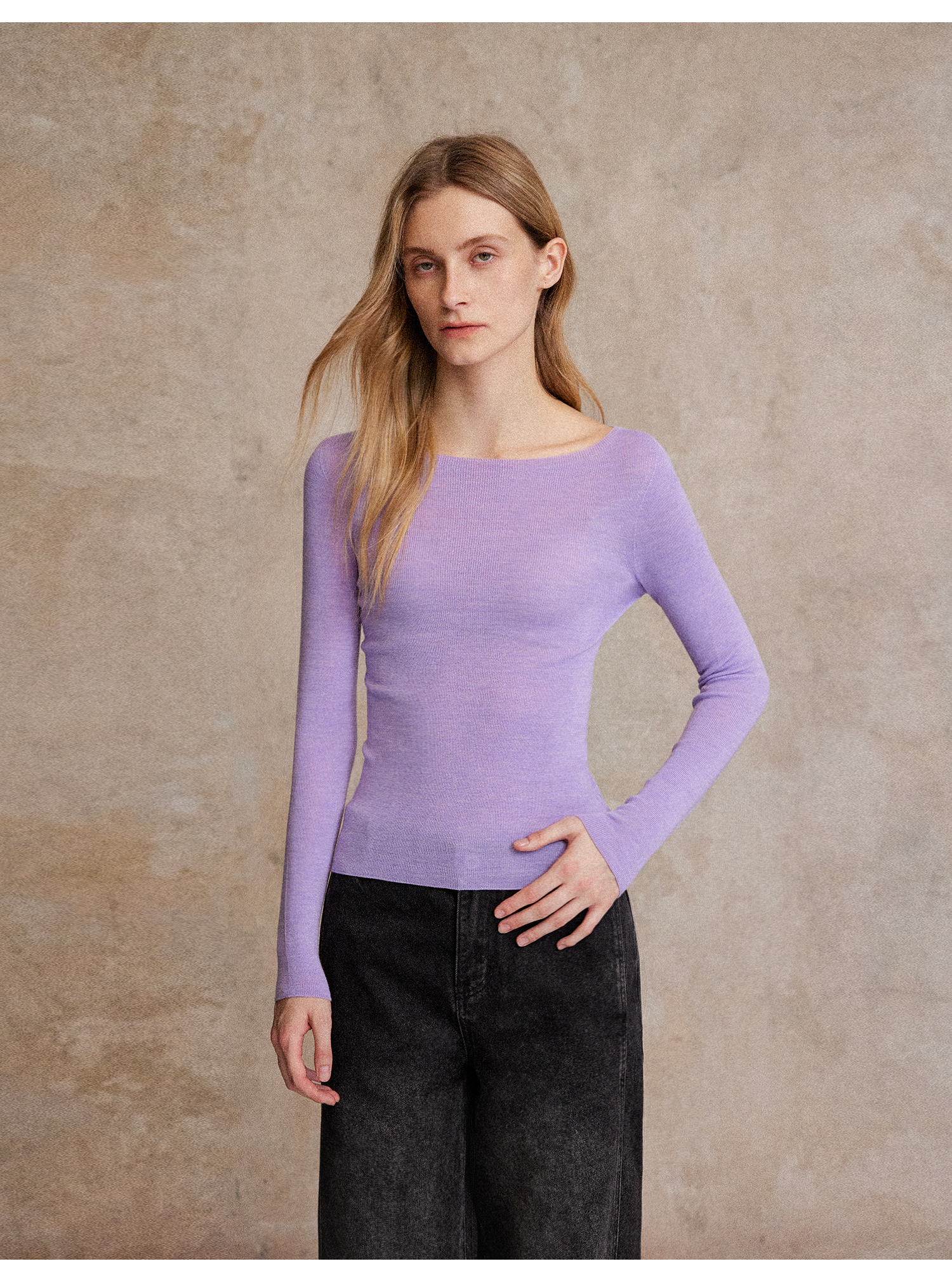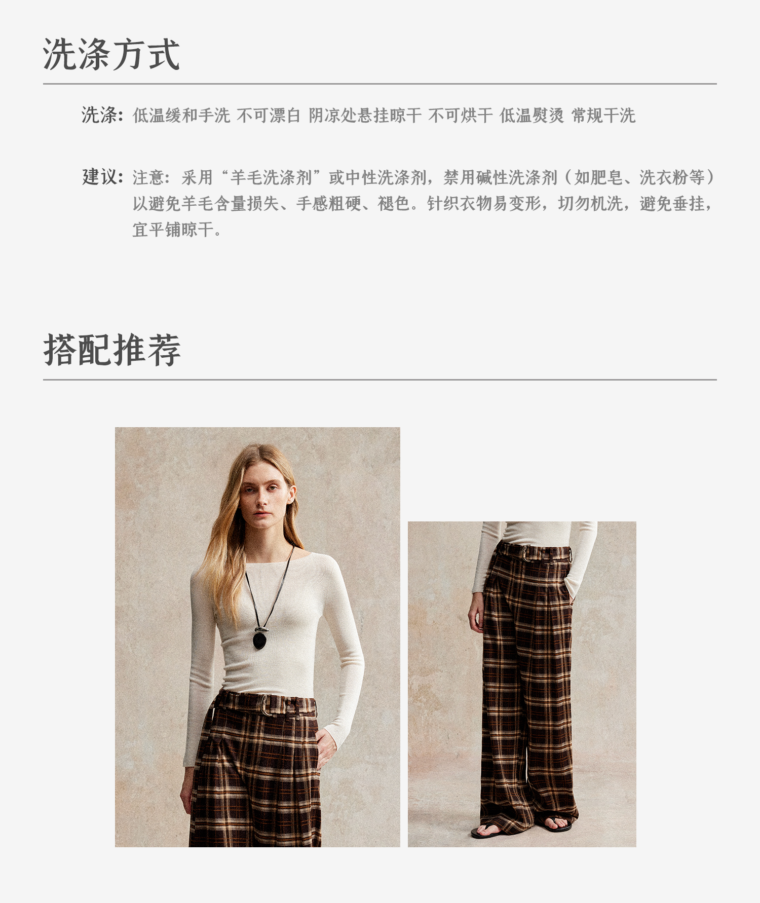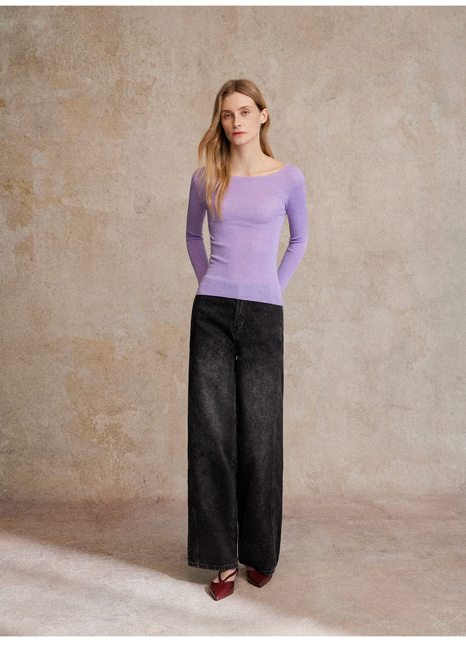 C+IMPRESS/西嘉精纺羊毛可机洗18针一体成型简约一字肩针织衫女秋