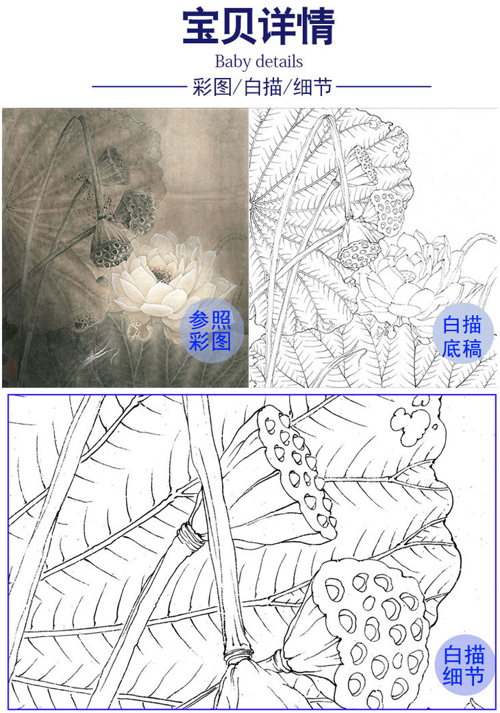 李晓明工笔花鸟白描底稿-荷香雅韵系列小品之三-荷花斗方小品册页-K097