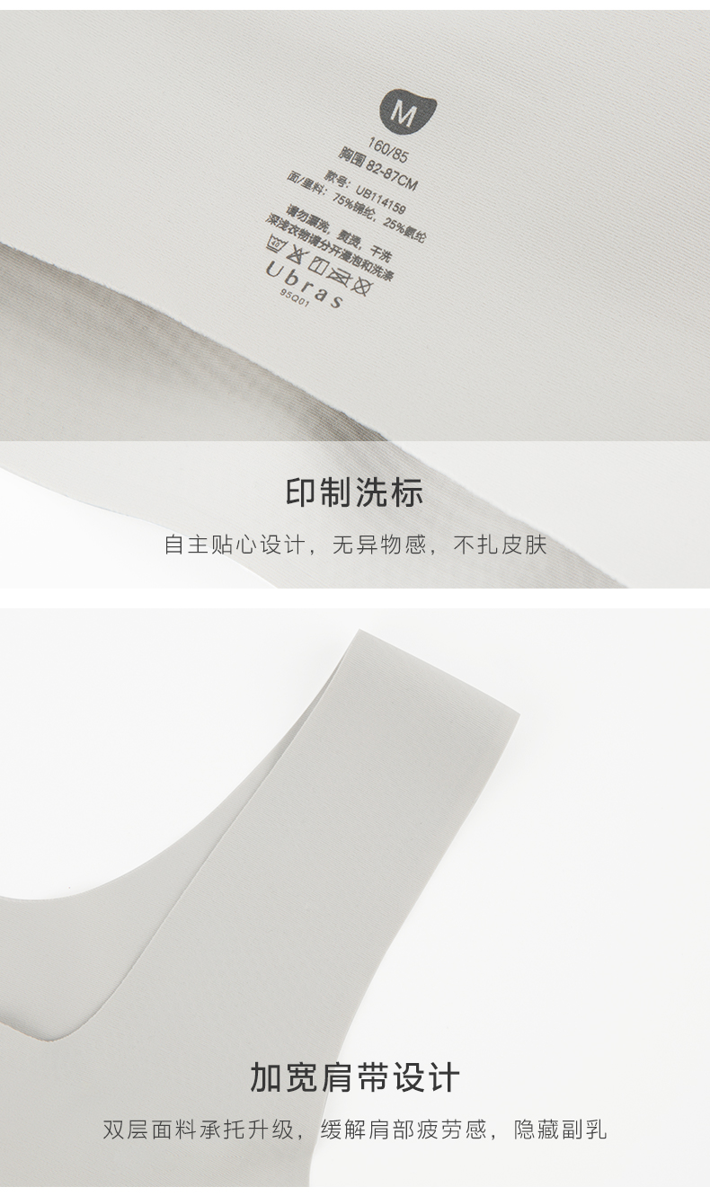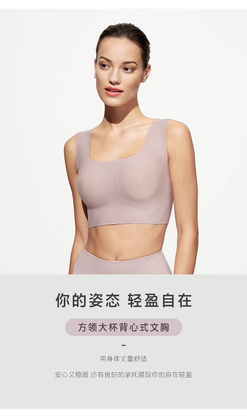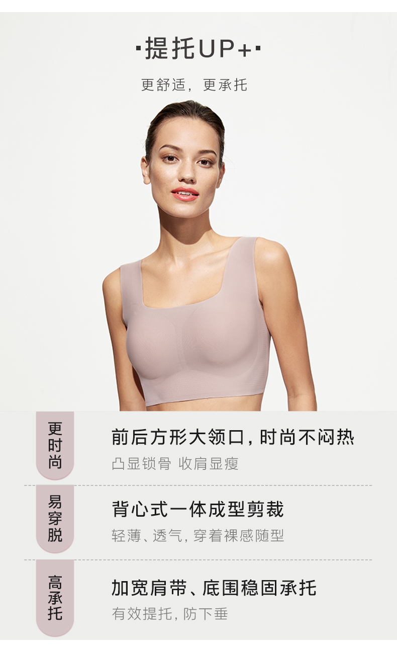 Ubras方领大杯背心式文胸内衣无钢圈聚拢上托收副乳2件装
