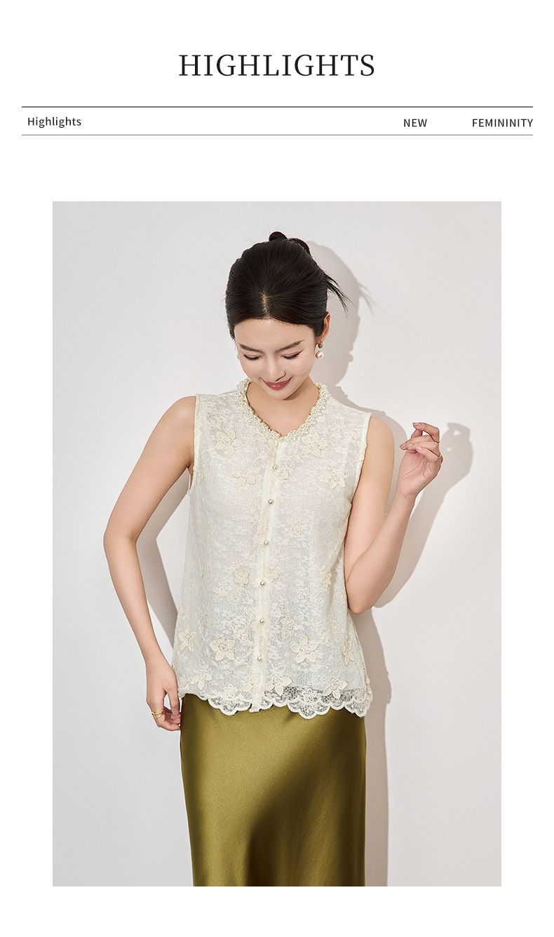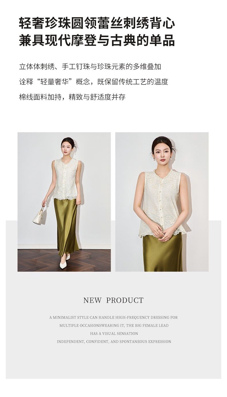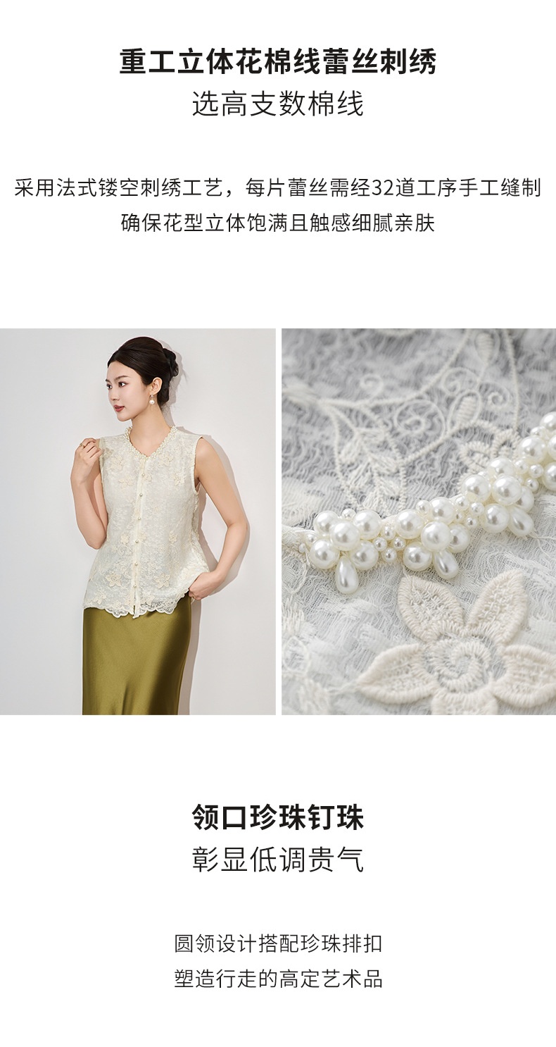「高货wl」全新升级【铂金会员192/天猫259/差价67】(65014)洛诗琳法式重工钉珠刺绣上衣2025夏季精致洋气蕾丝马甲