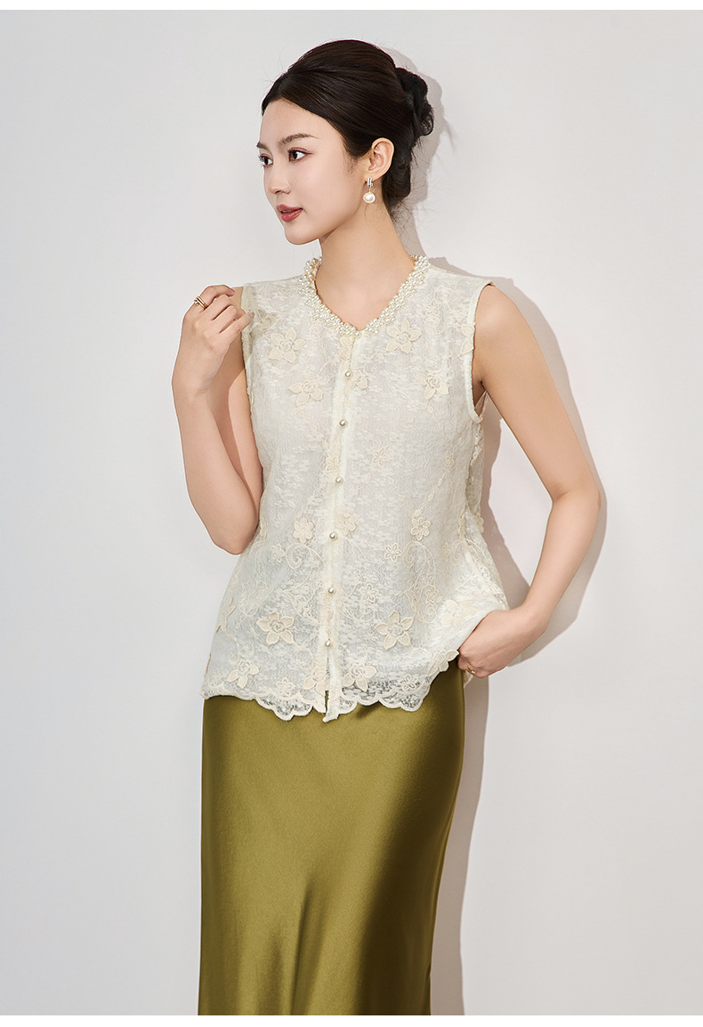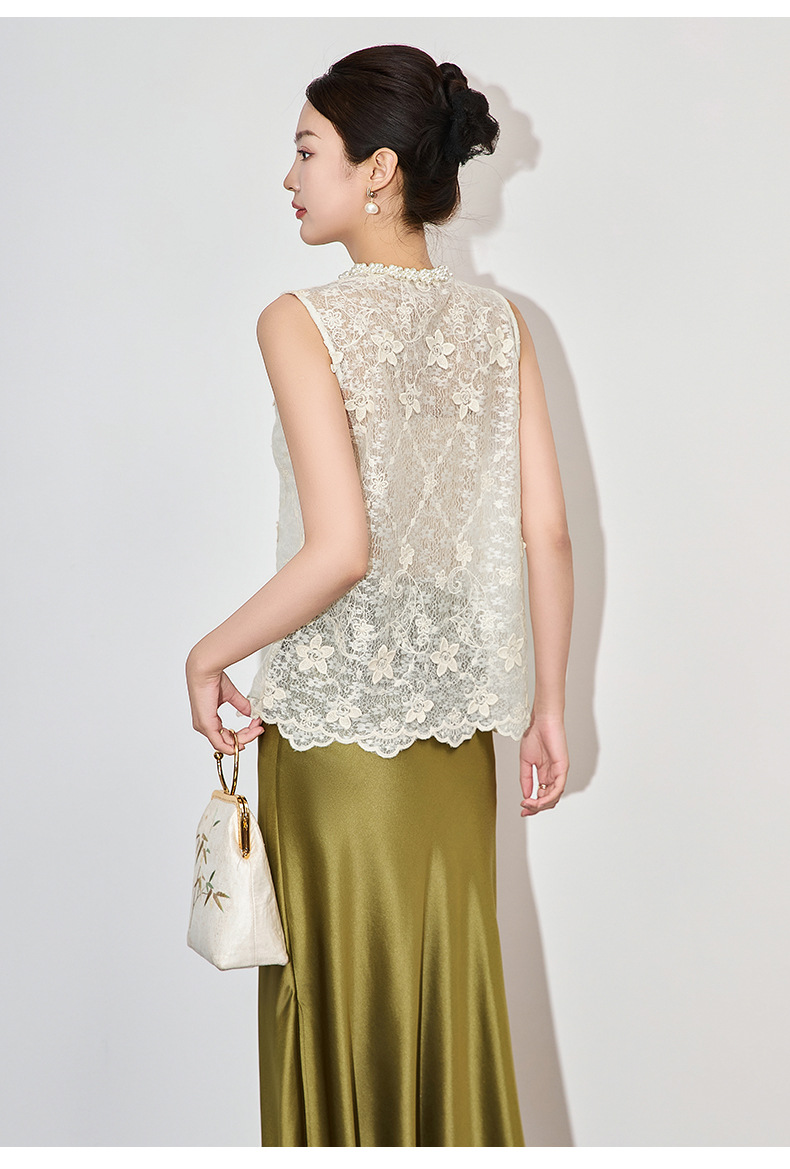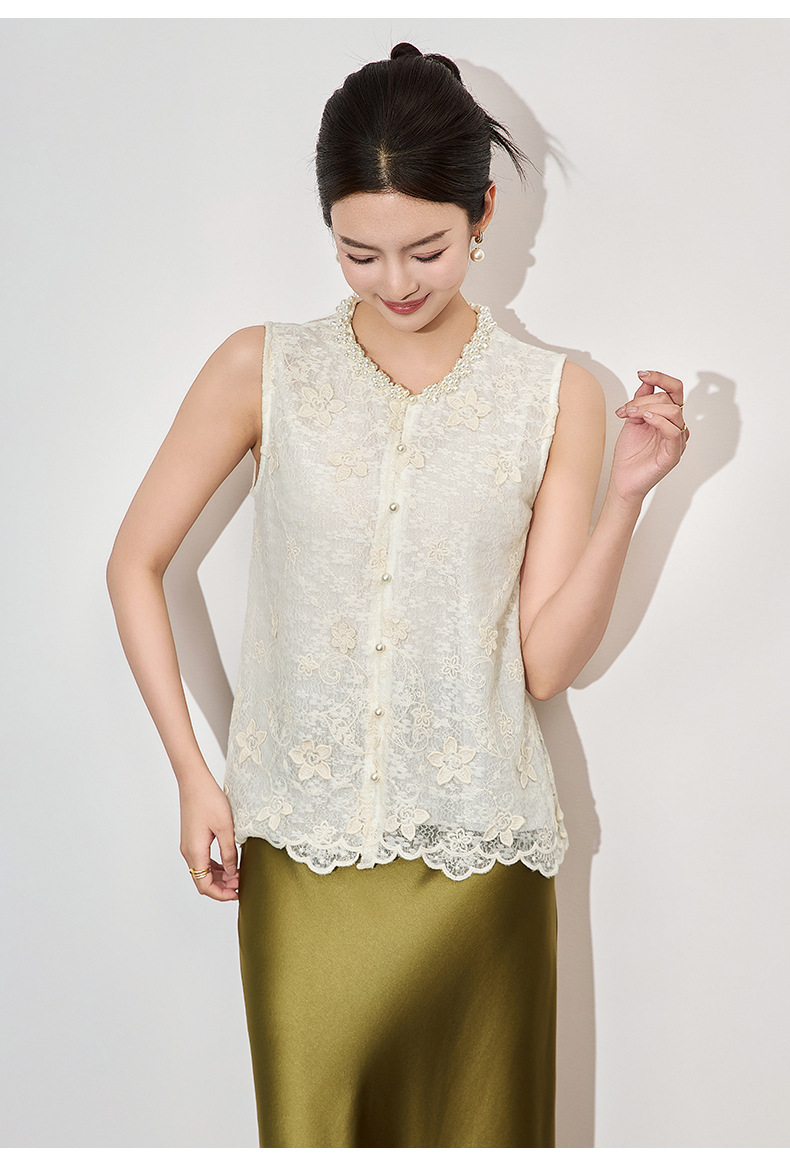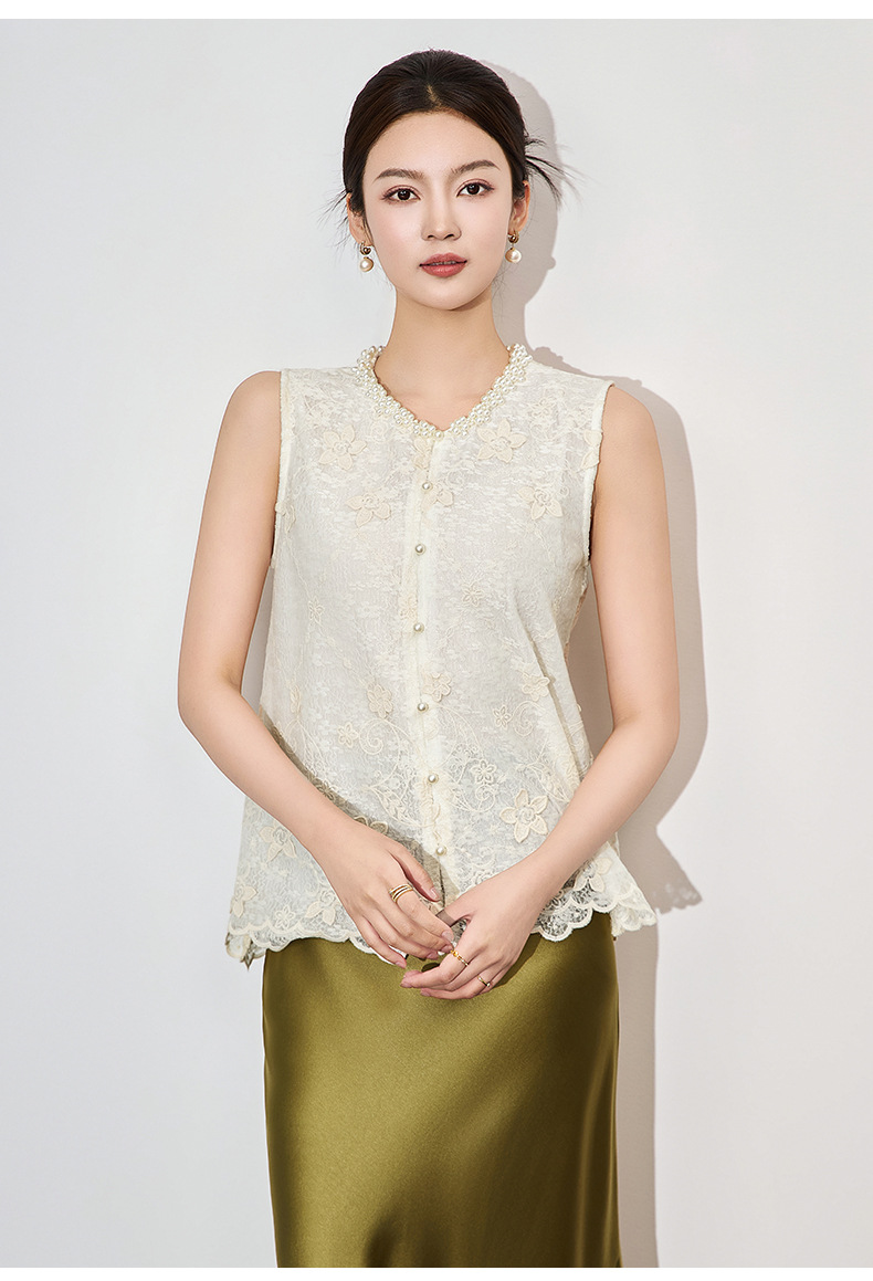 「高货wl」全新升级【铂金会员192/天猫259/差价67】(65014)洛诗琳法式重工钉珠刺绣上衣2025夏季精致洋气蕾丝马甲