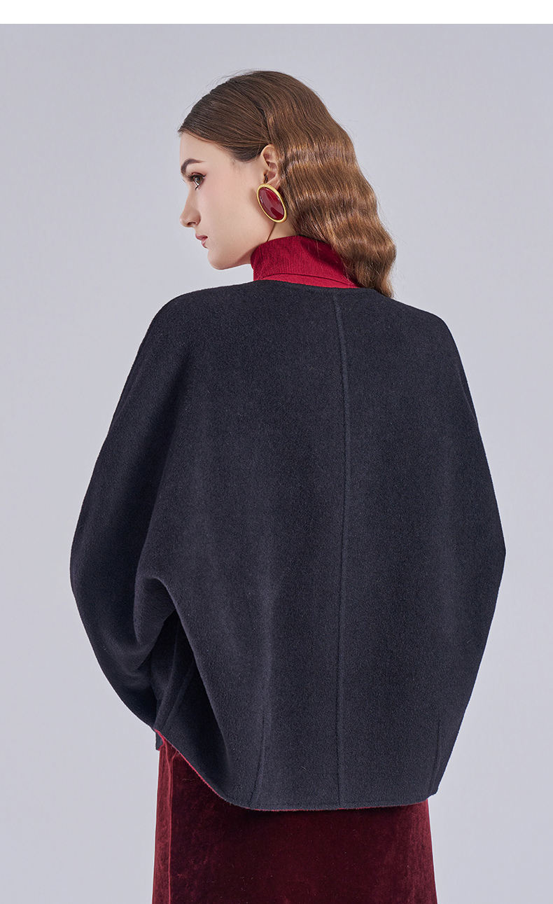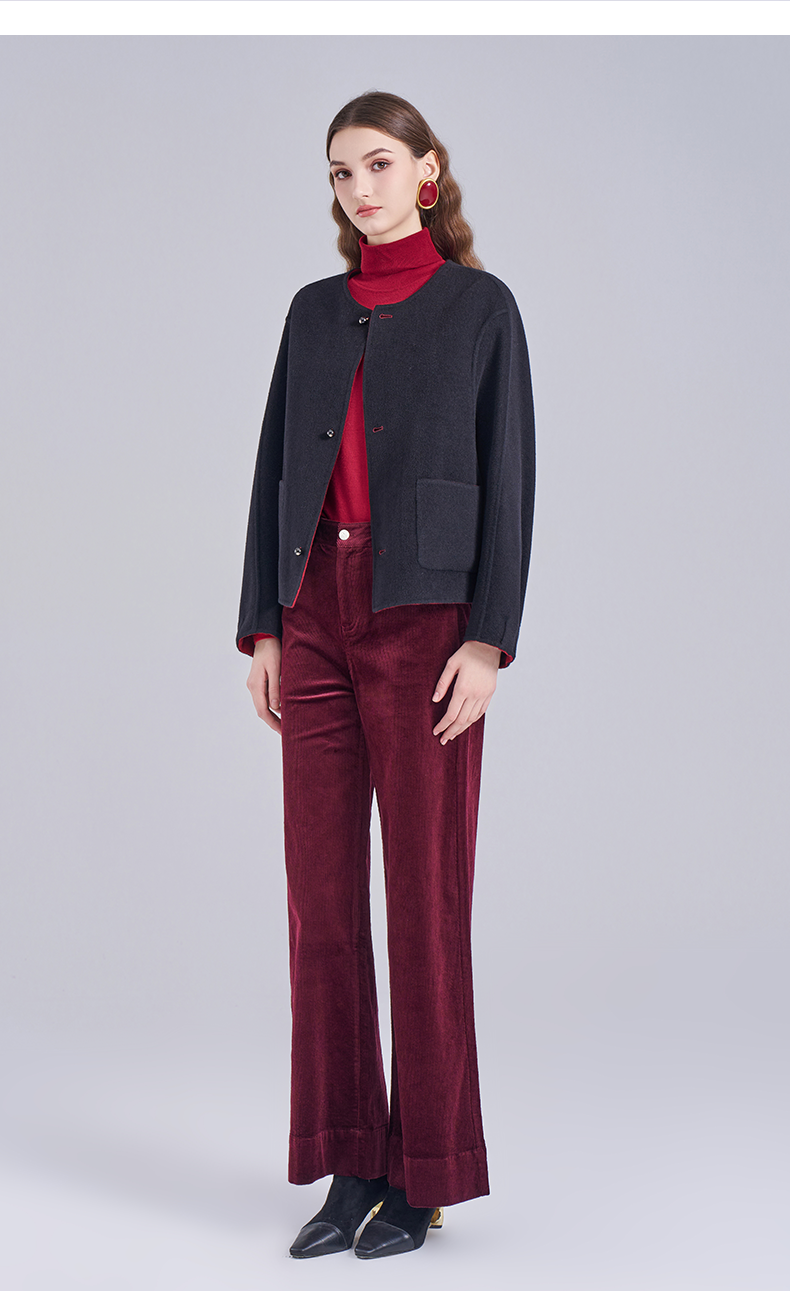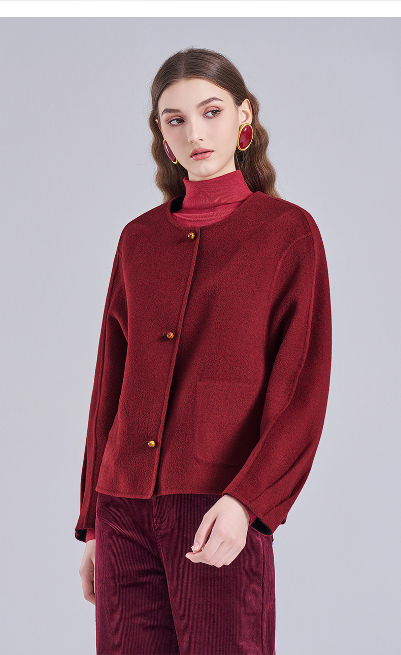 乔万尼冬2025新品气质两面穿无领羊毛兔毛混纺短款宽松大衣外套ED4B795501
