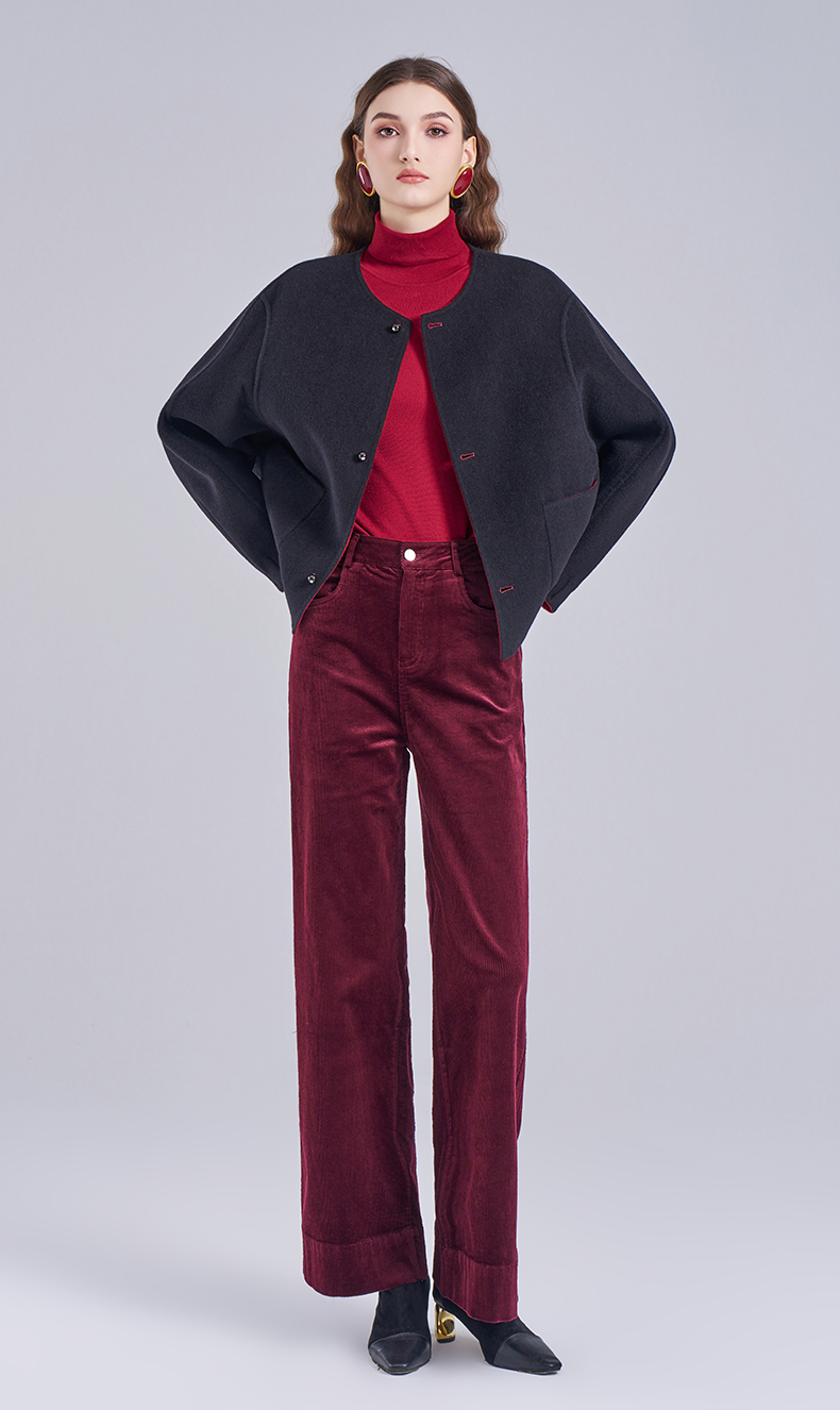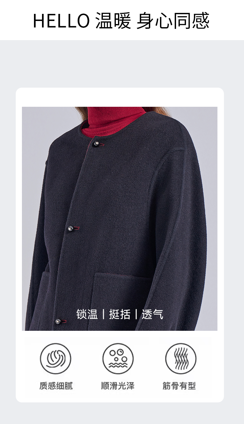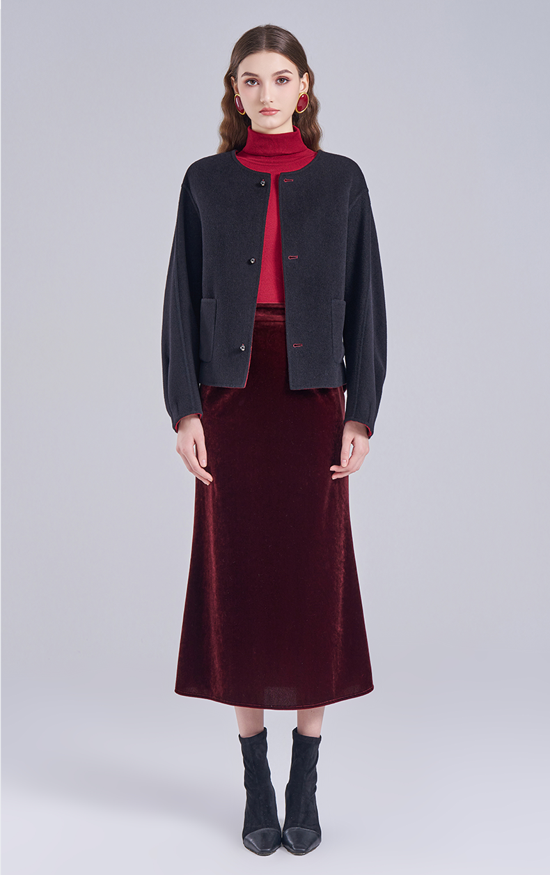 乔万尼冬2025新品气质两面穿无领羊毛兔毛混纺短款宽松大衣外套ED4B795501