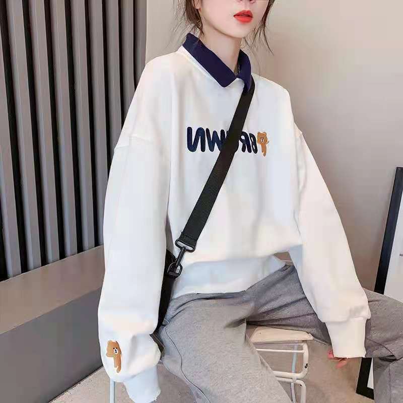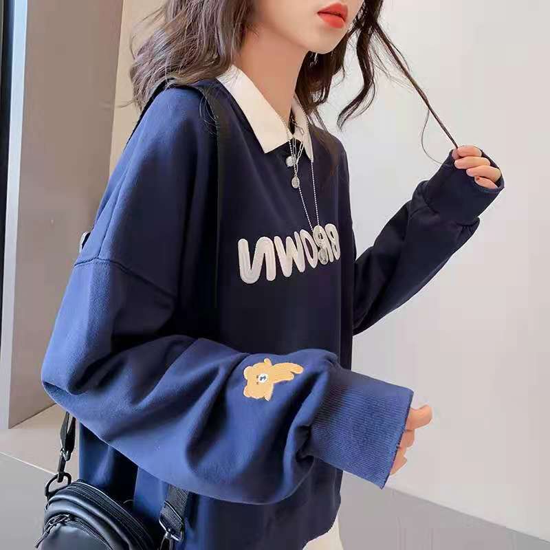 2022年新款polo领卫衣女大码女装设计感小众韩版宽松春季外套上衣