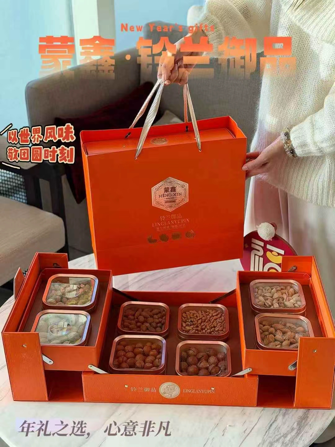 蒙鑫铃兰御品坚果礼盒 蒙鑫·铃兰御品,诠释年礼真意。 高级的包装,让心意先行一步!🎁 国花铃兰为灵感,精致镂空设计 一眼就被【蒙鑫·铃兰御品】的气质征服。 一份礼盒,吃遍全球!