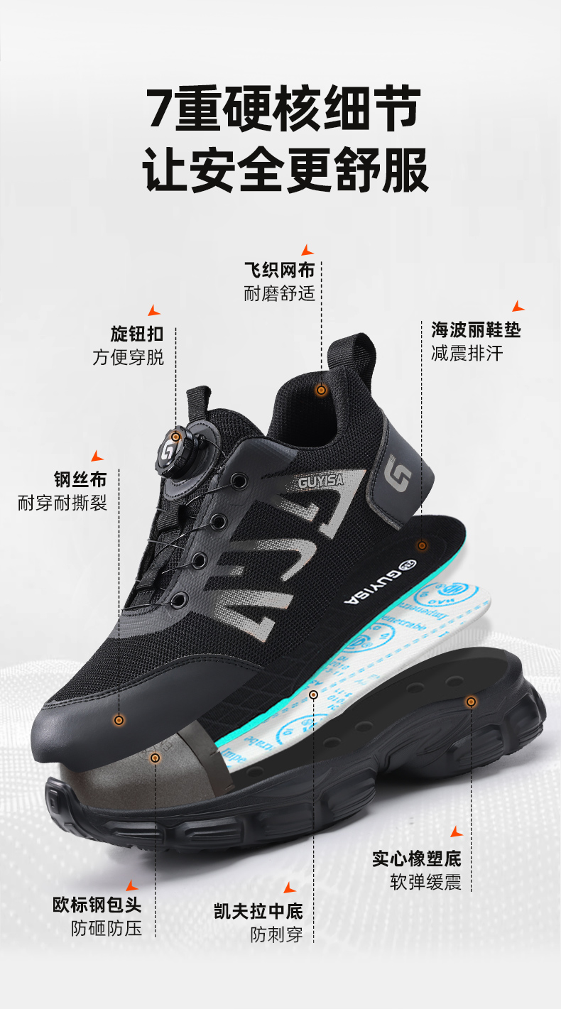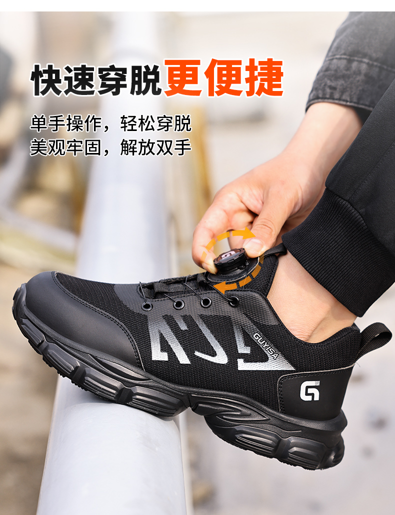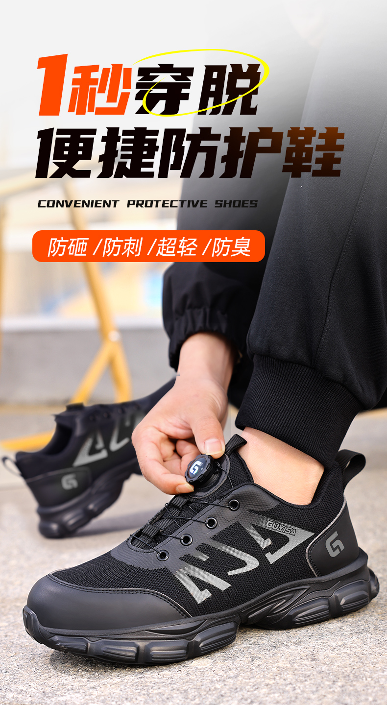 新品防砸防刺安全鞋钢包头劳保鞋工作鞋橡塑底轻便款旋转纽扣穿脱方便