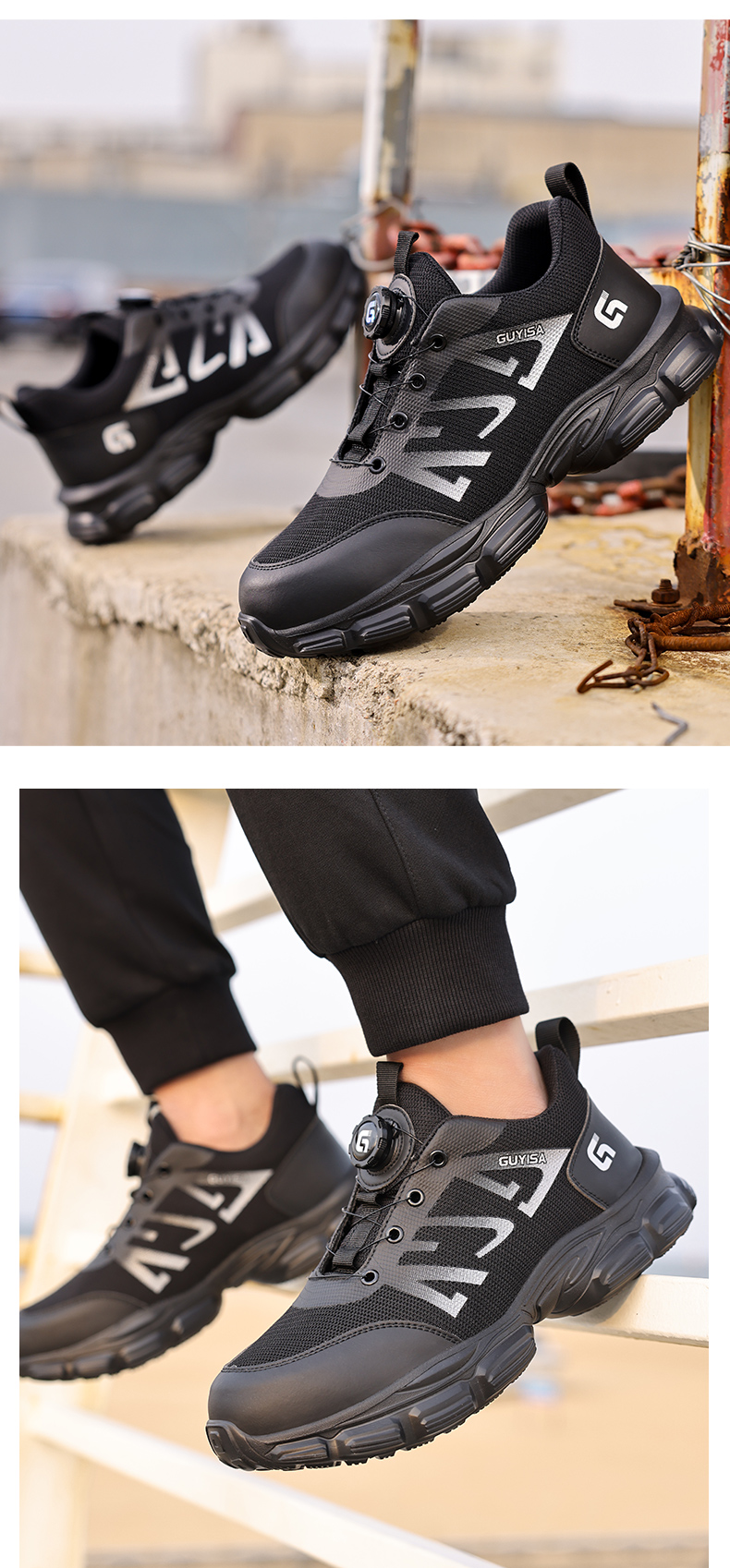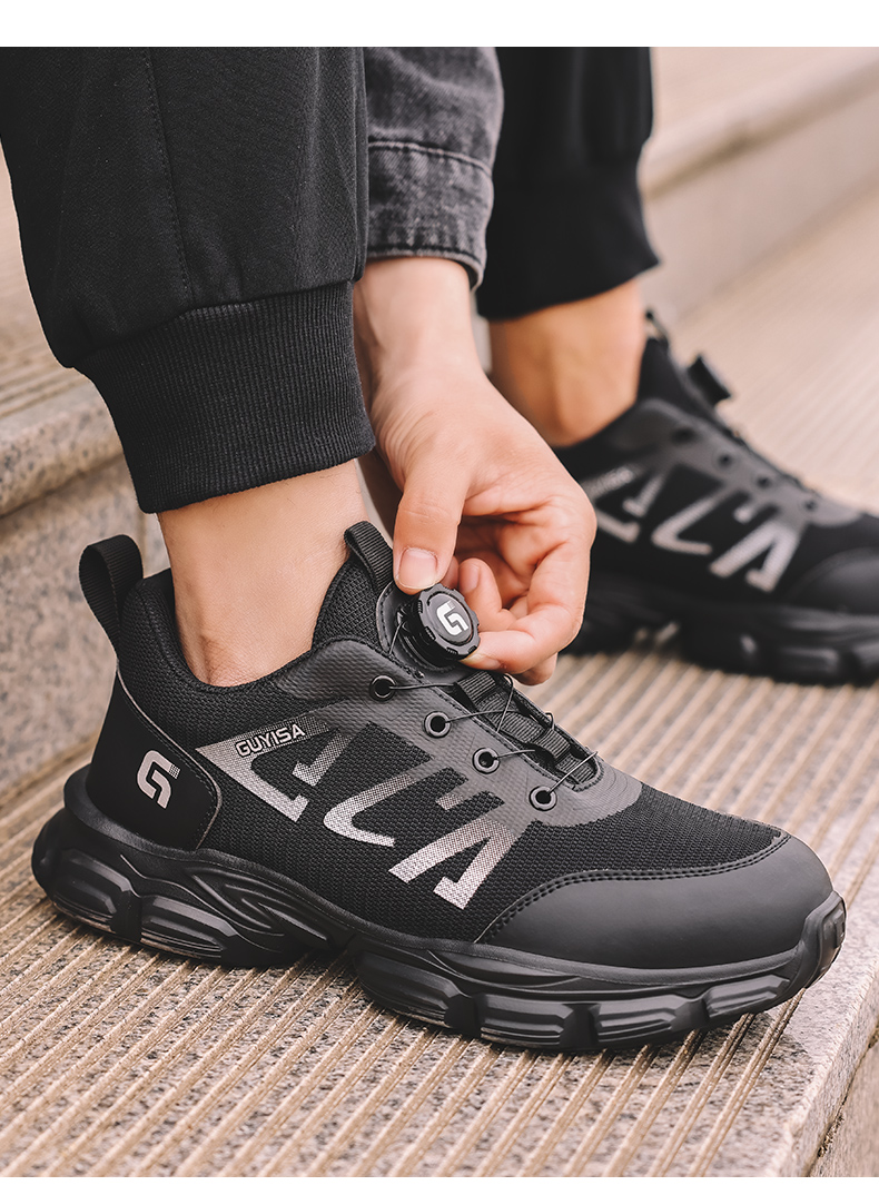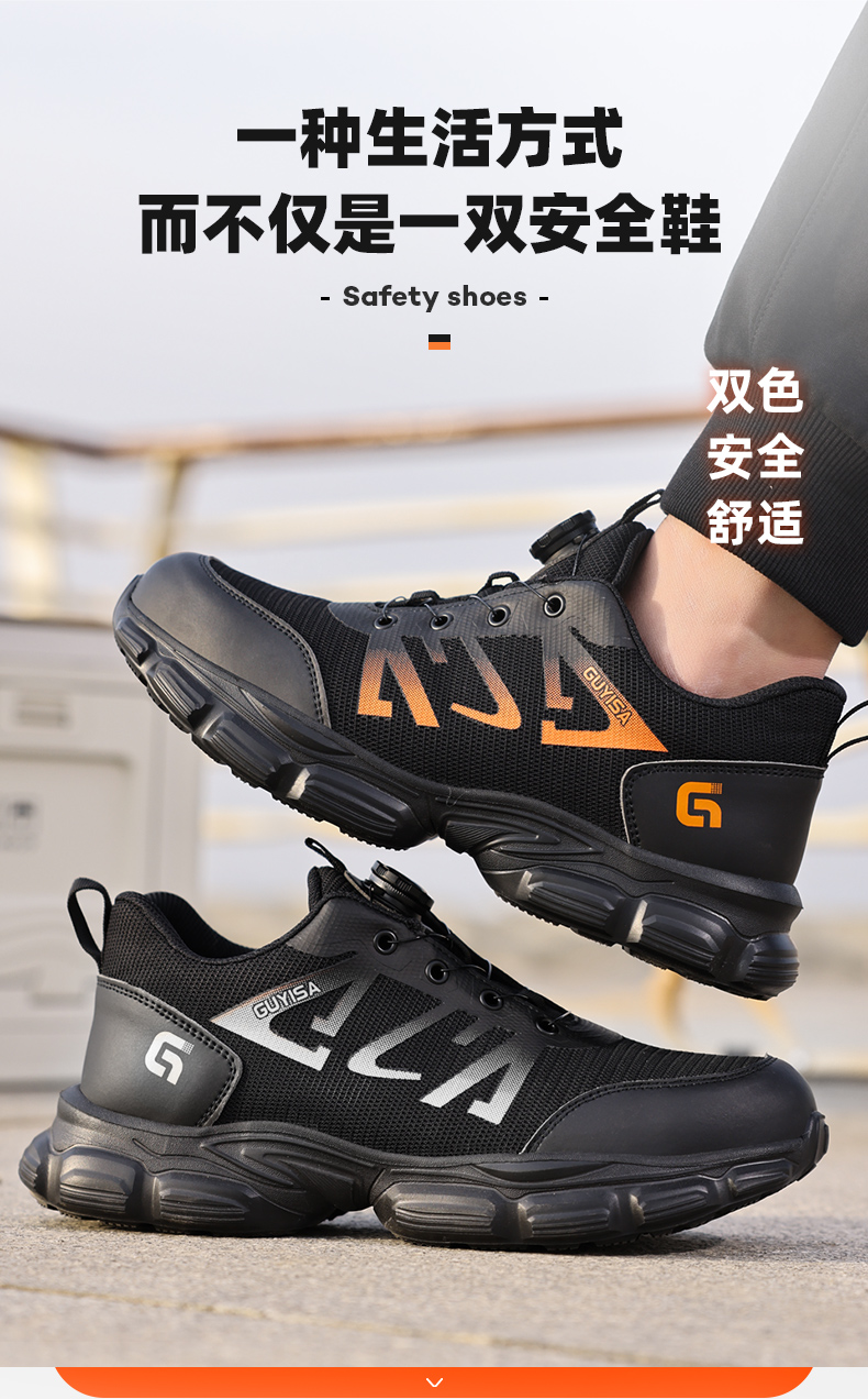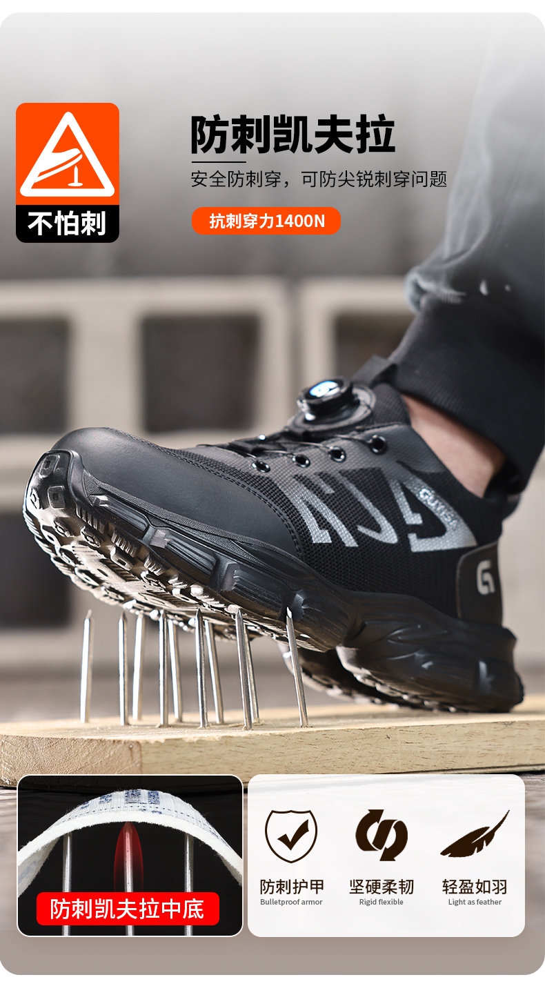 新品防砸防刺安全鞋钢包头劳保鞋工作鞋橡塑底轻便款旋转纽扣穿脱方便