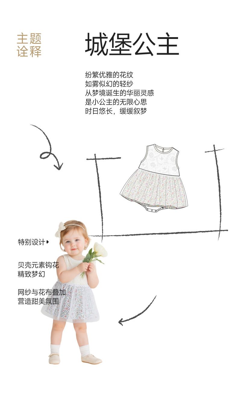 【商场同款】英氏婴儿连体衣夏新款女宝短袖裆哈衣宝宝爬服