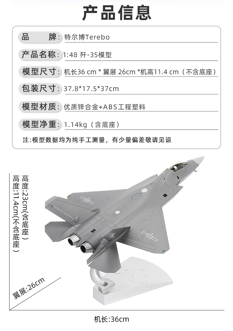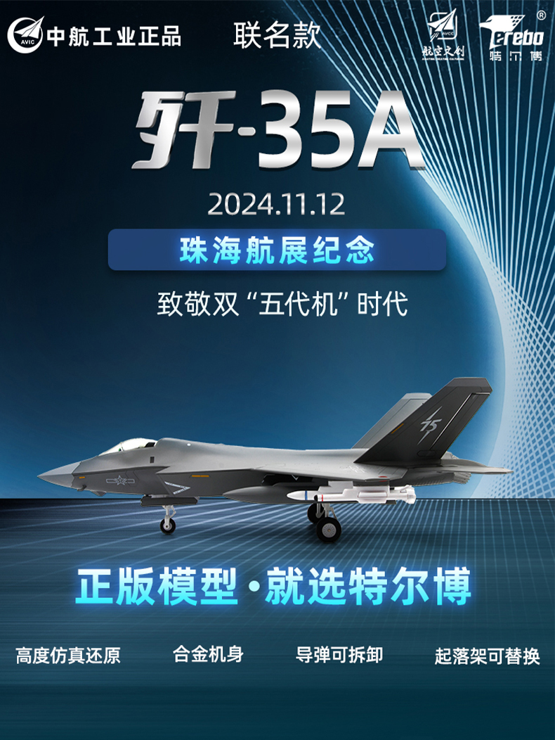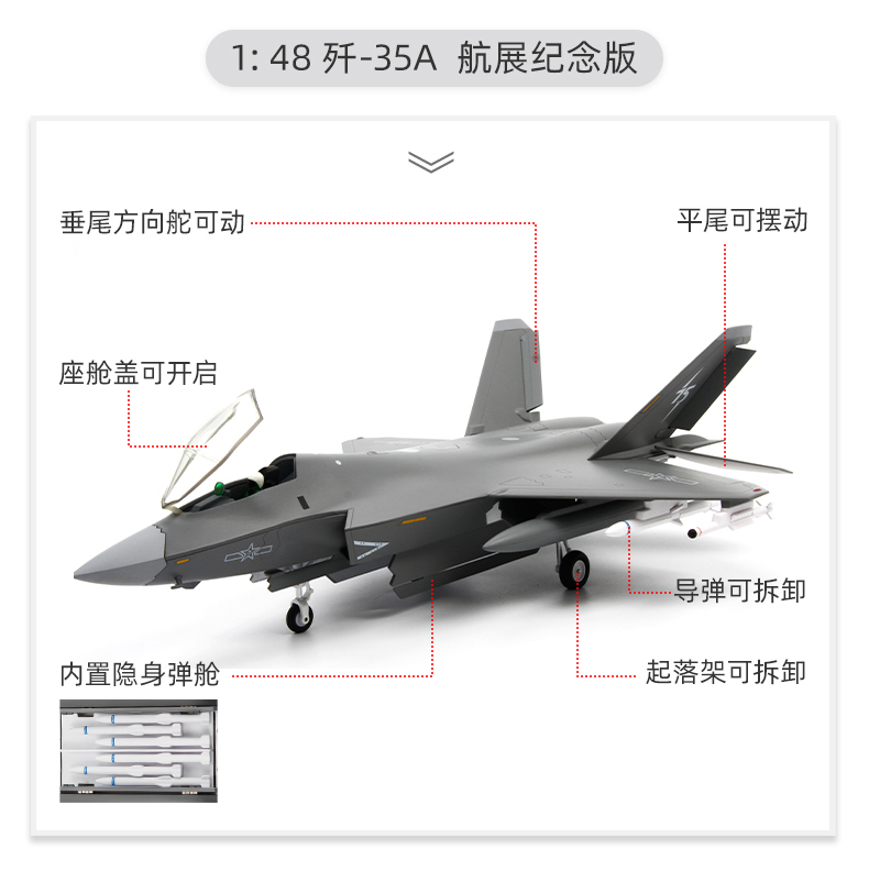 【向海图强 剑指深蓝】1:48歼35战斗机模型精品版 合金仿真航空飞机