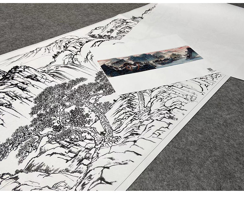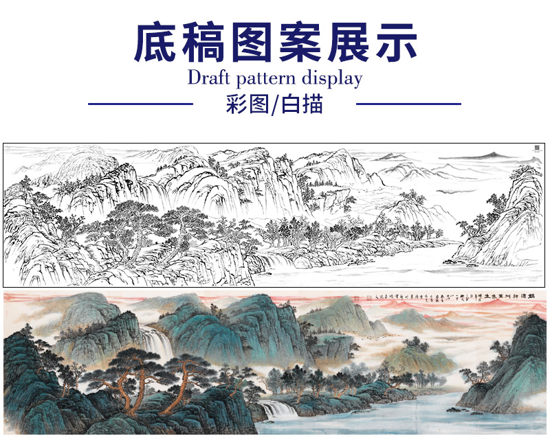 【大彩图】吴广横幅工笔画白描底稿《锦绣神州万象生》临摹勾线山水线稿FS01