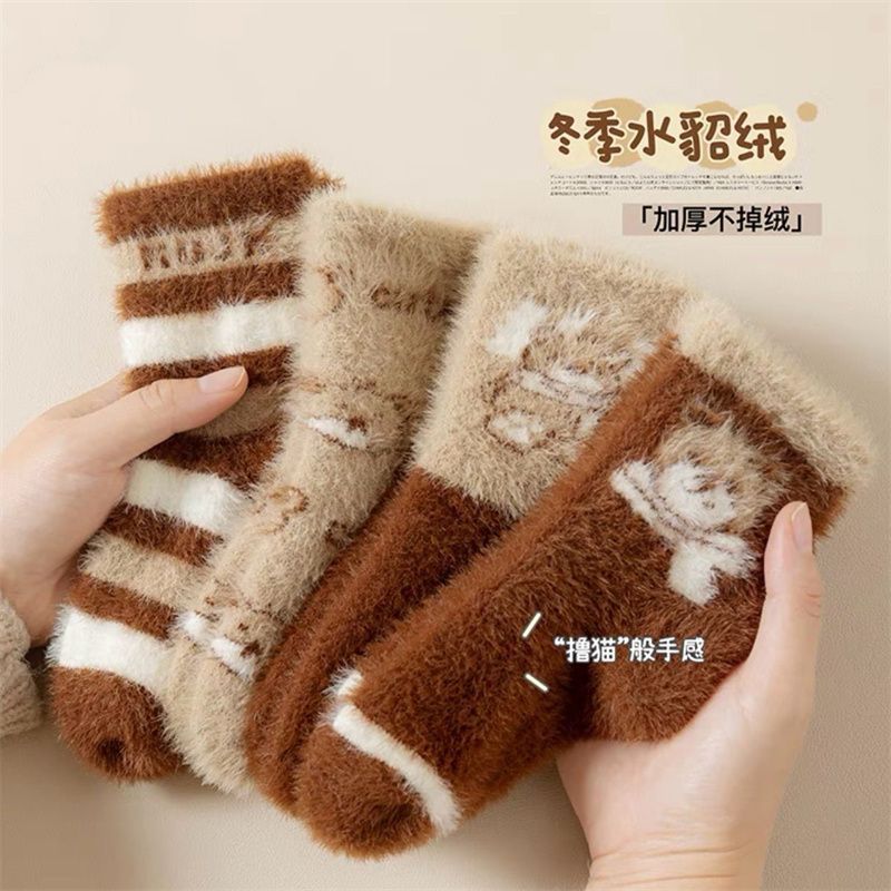 超值19.9四双!【柔软舒适❗️抗寒保暖】秋冬保暖加绒中筒防寒宝宝袜儿童水貂绒加厚袜子冬款男童女童特厚