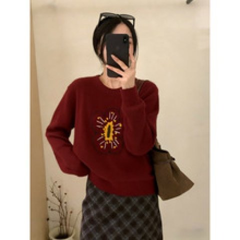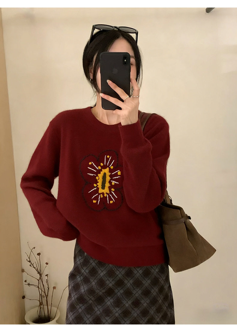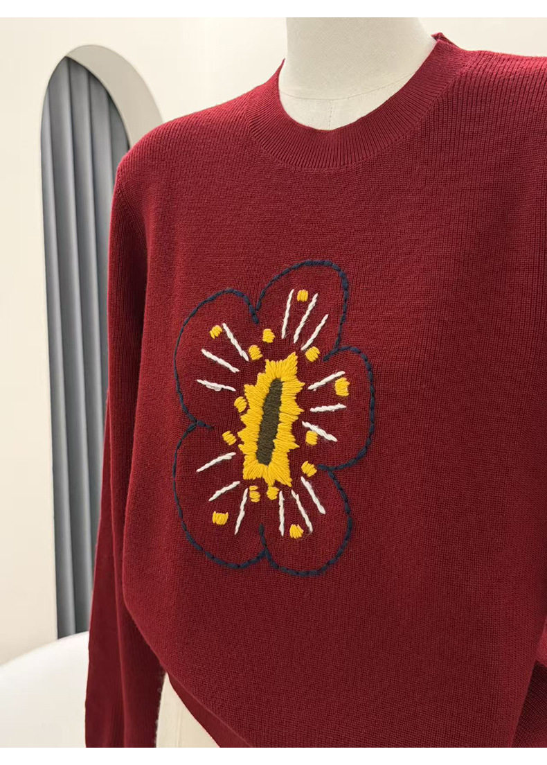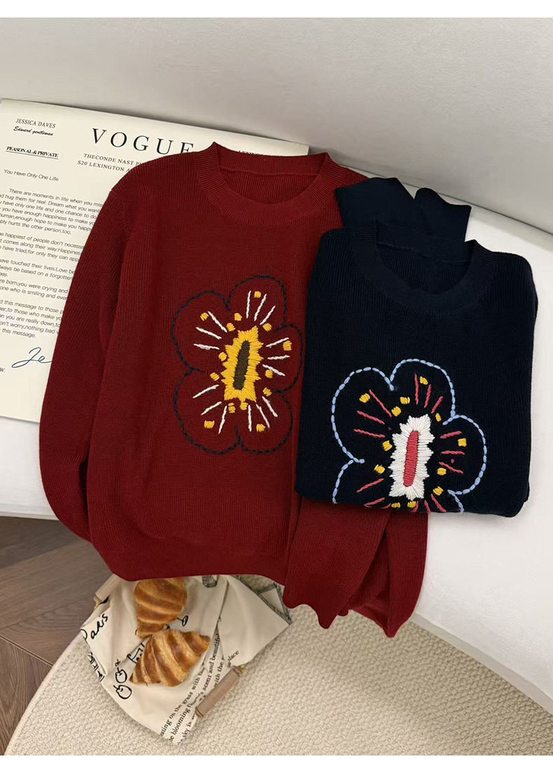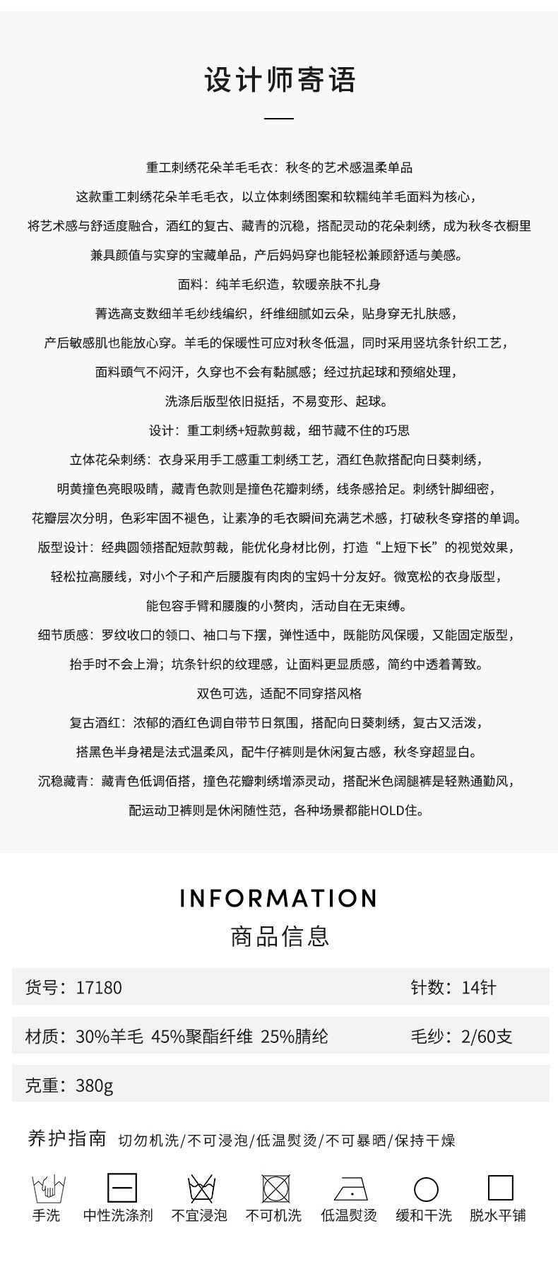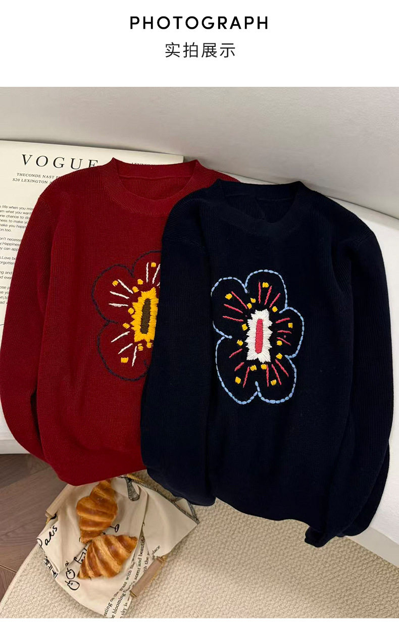 「高货rp」全新升级【铂金会员293/天猫399/差价106】(05511)洛诗琳复古手工钩花朵羊毛衫2025冬季气质新年红针织毛衣