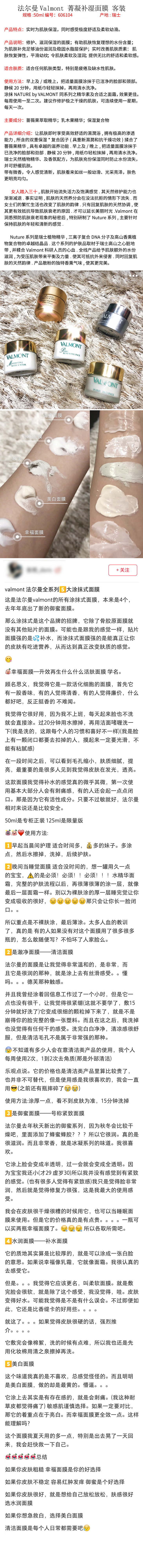 Valmont法尔曼菁凝补湿面膜50ml补水修复晒后镇静急救