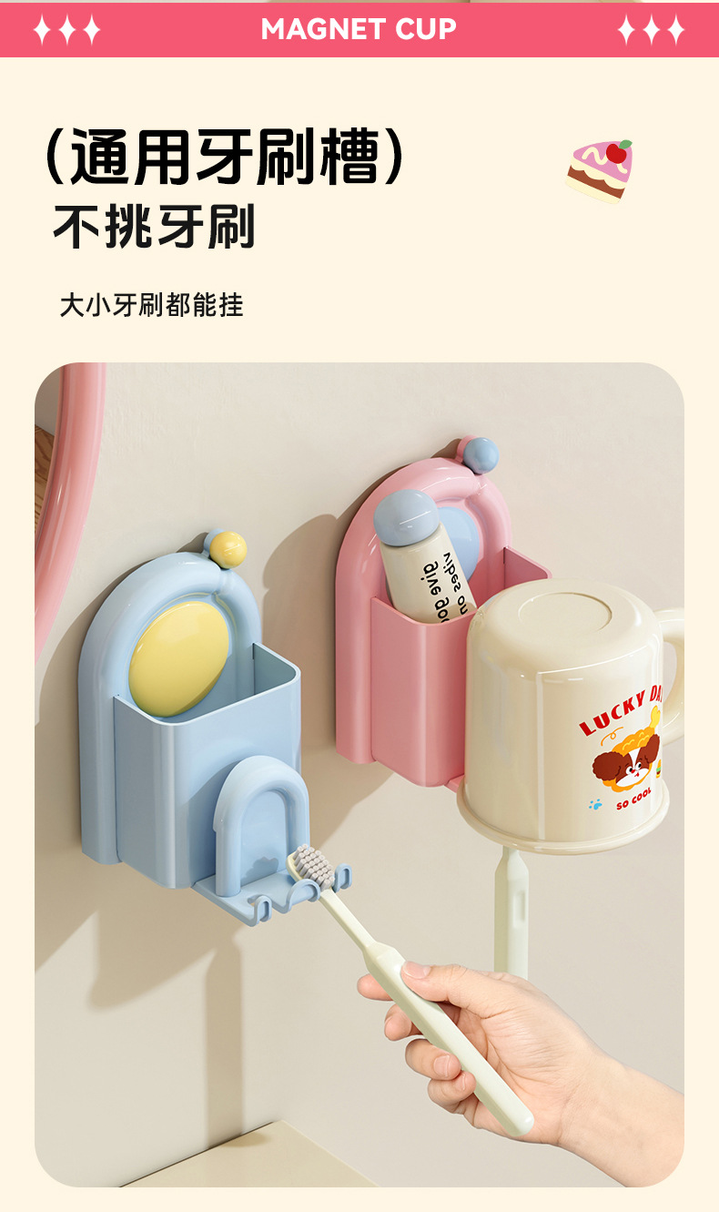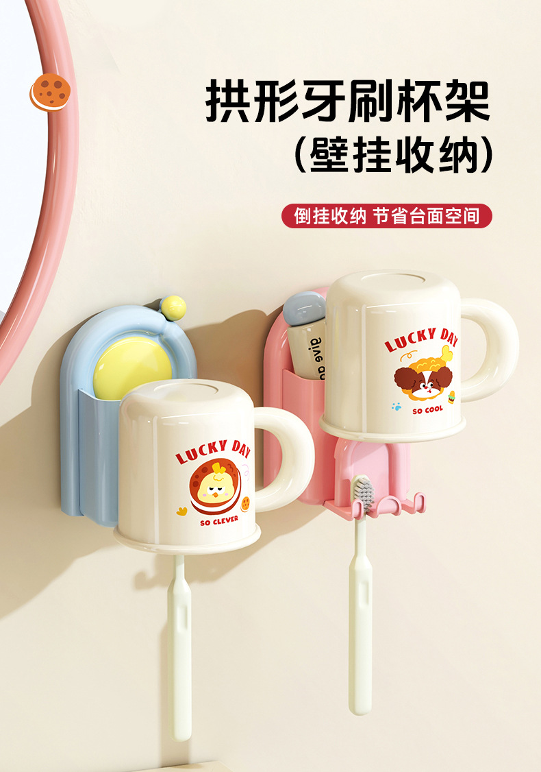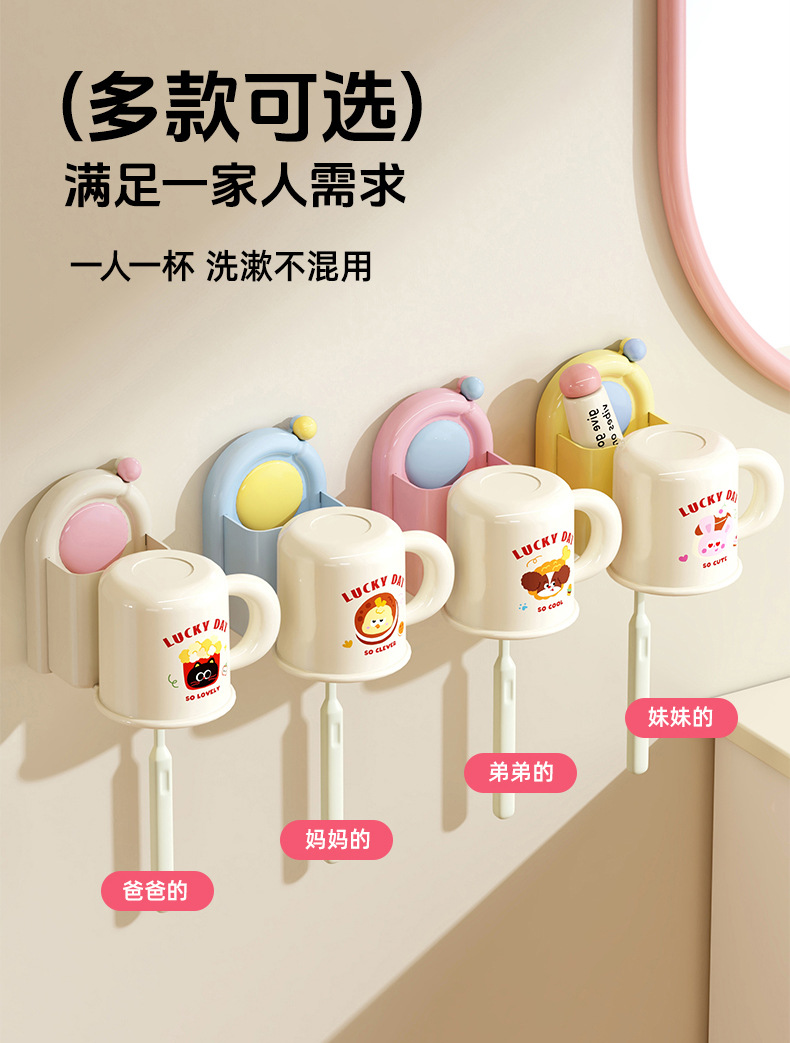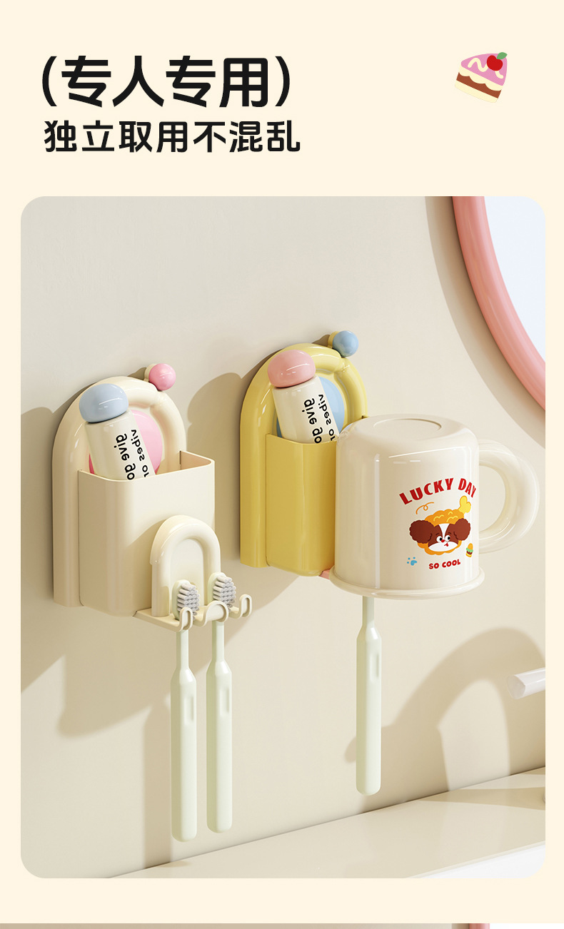 【强力吸附❗️独立取用】牙刷置物架壁挂式免打孔多巴胺粘贴漱口杯子收纳架洗漱杯。ya
