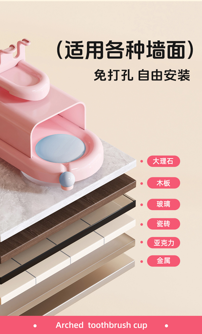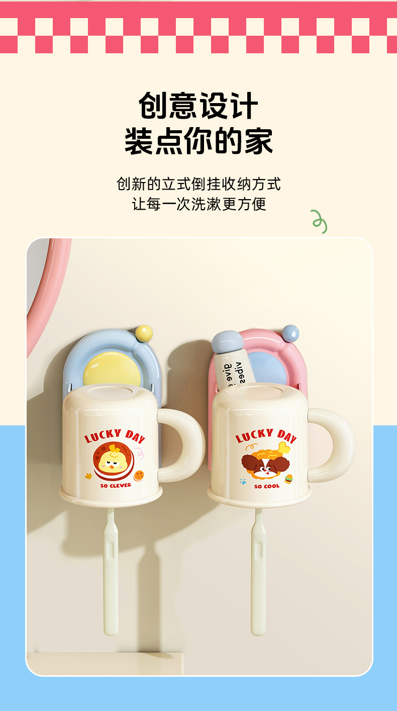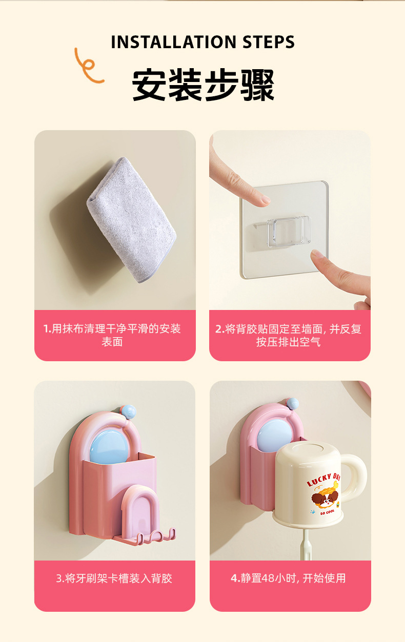 【强力吸附❗️独立取用】牙刷置物架壁挂式免打孔多巴胺粘贴漱口杯子收纳架洗漱杯。ya