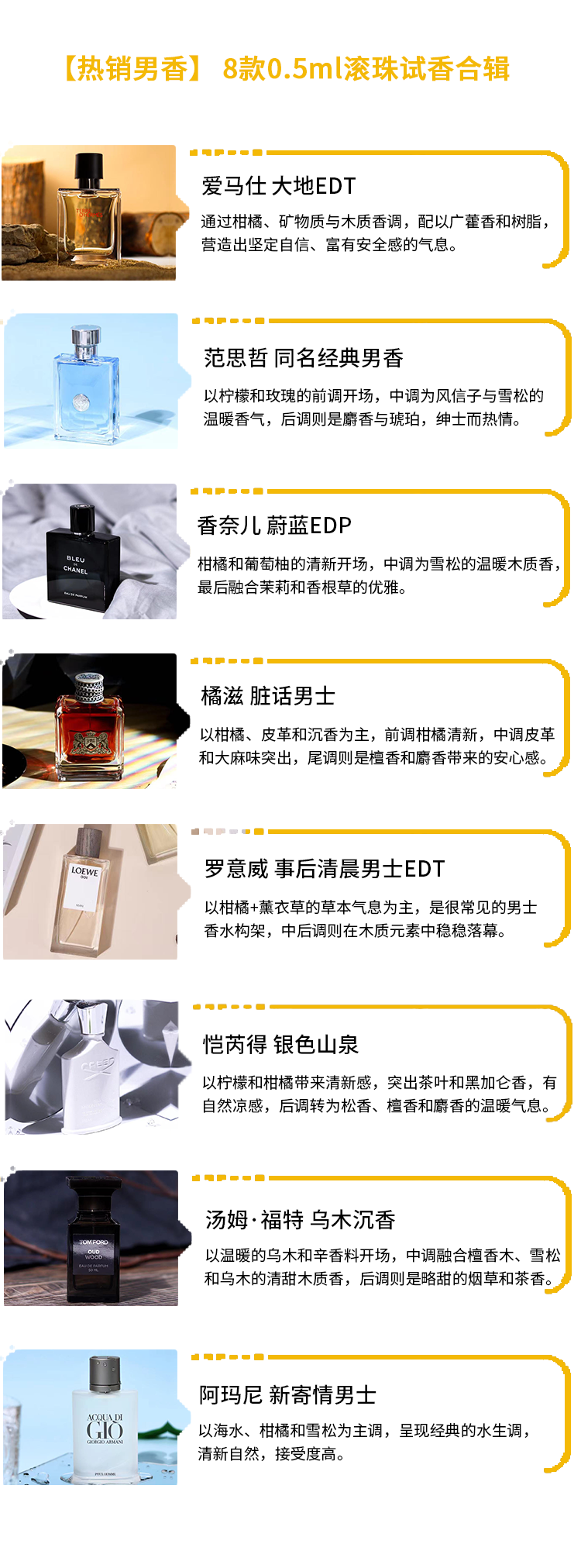 【热销男香】合辑 8款 0.5ml滚珠试香——升级魅力,男士品味之选